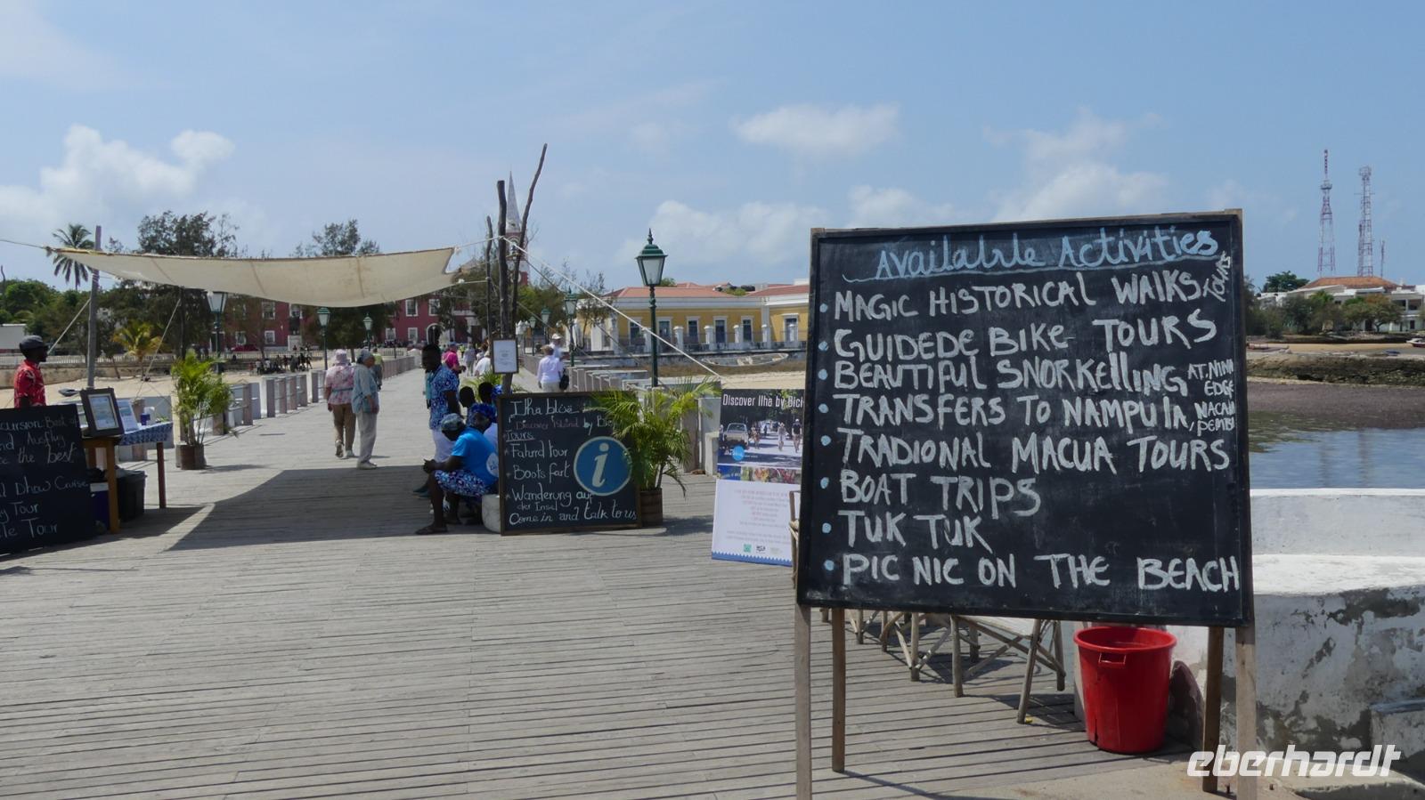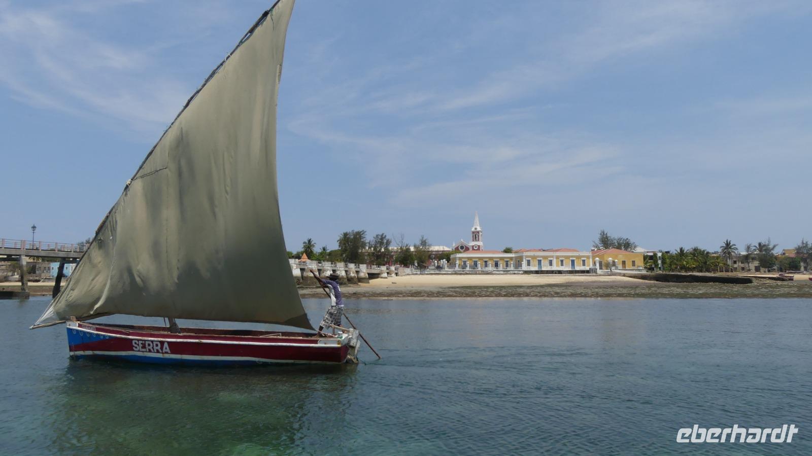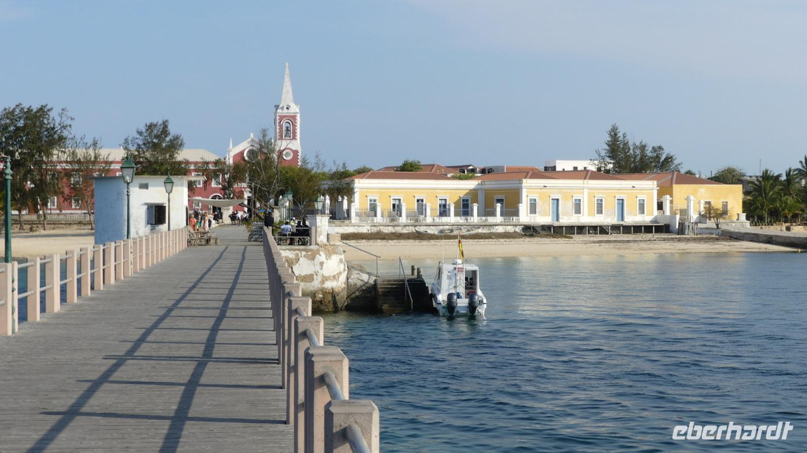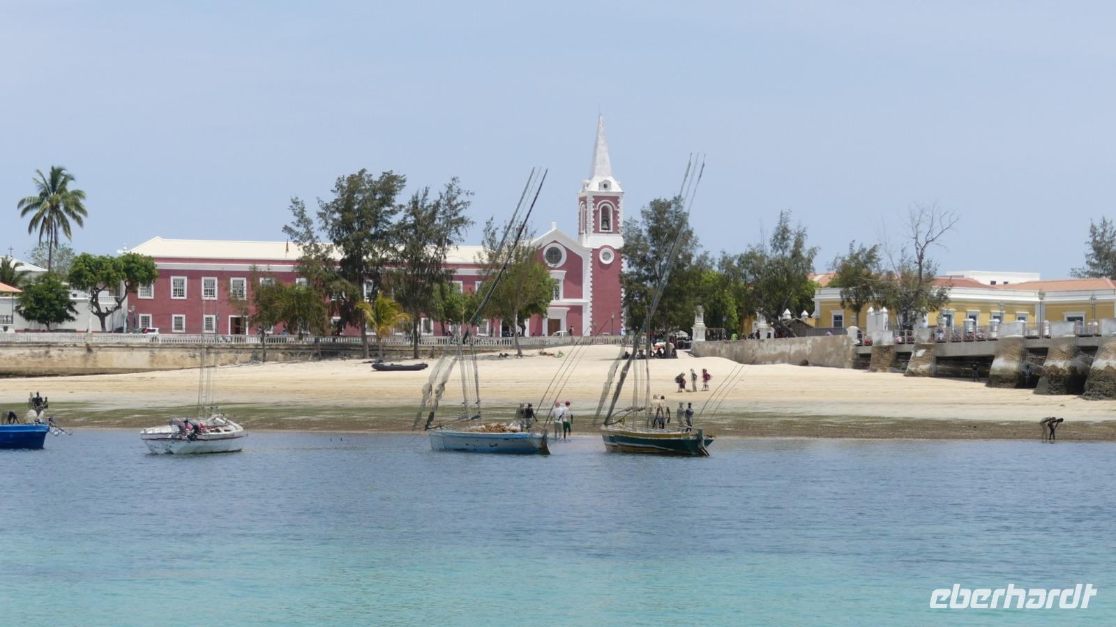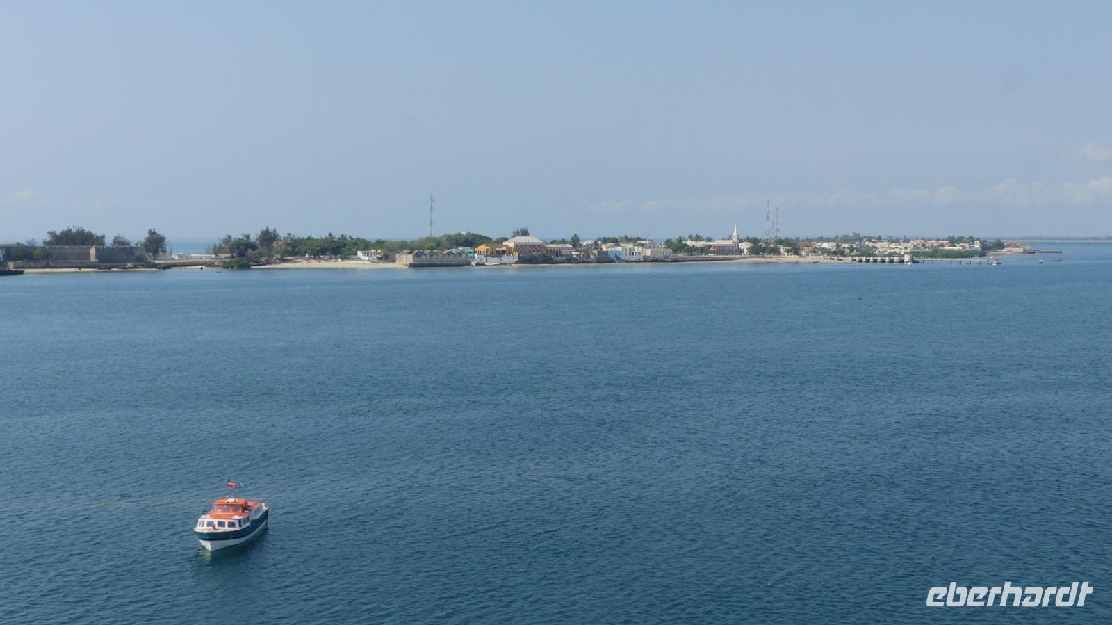 Die Mosambik-Insel liegt an der schmalsten Stelle zwischen Ostafrika und Madagaskar. Mit dem Festland ist sie über eine 3,5 Kilometer lange Brücke verbunden. Die Insel selbst ist ca. drei Kilometer lang und bis 600 Meter breit. Sie hat keinen Hafen, deshalb werden wir zur Insel tendern.