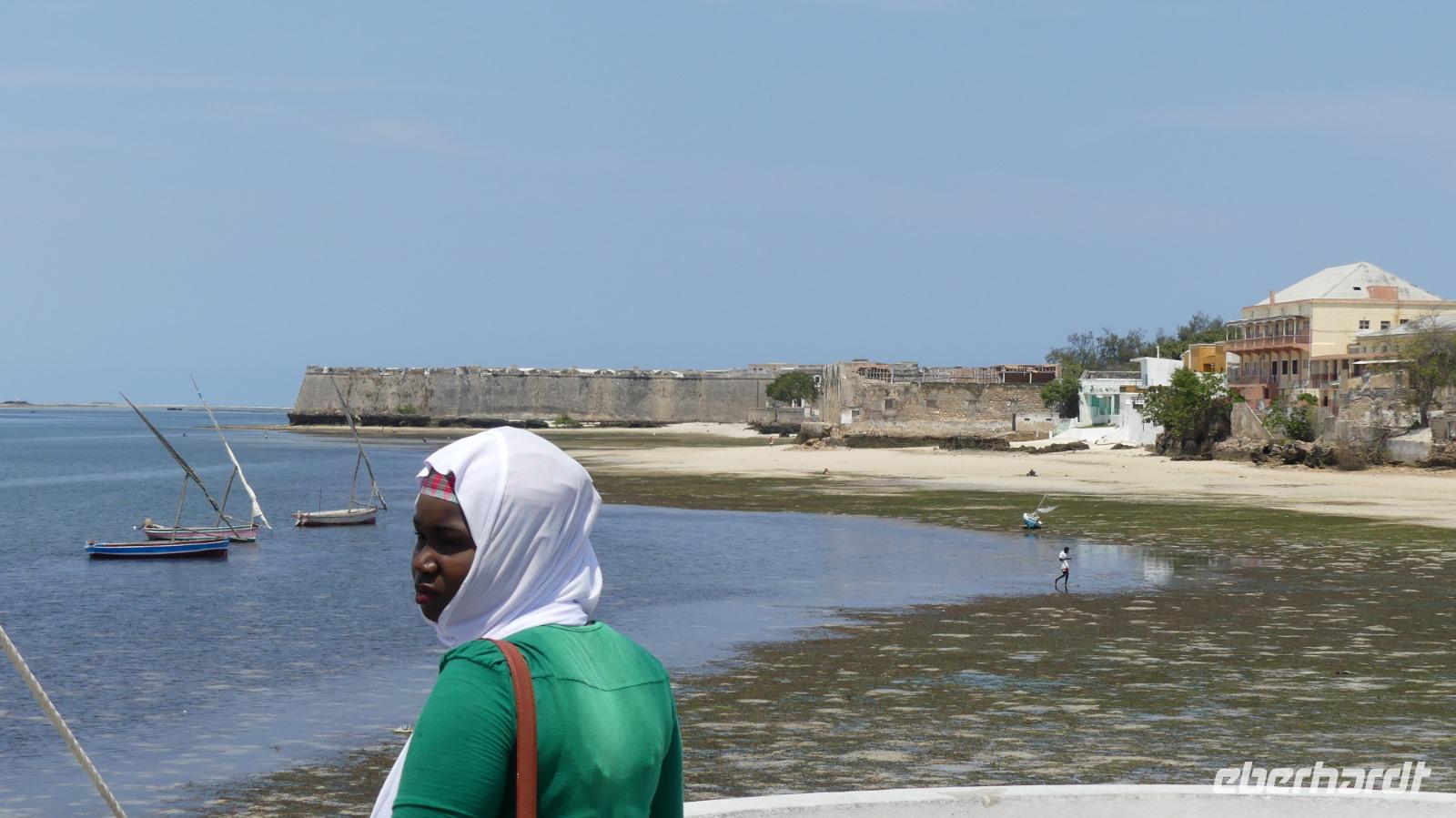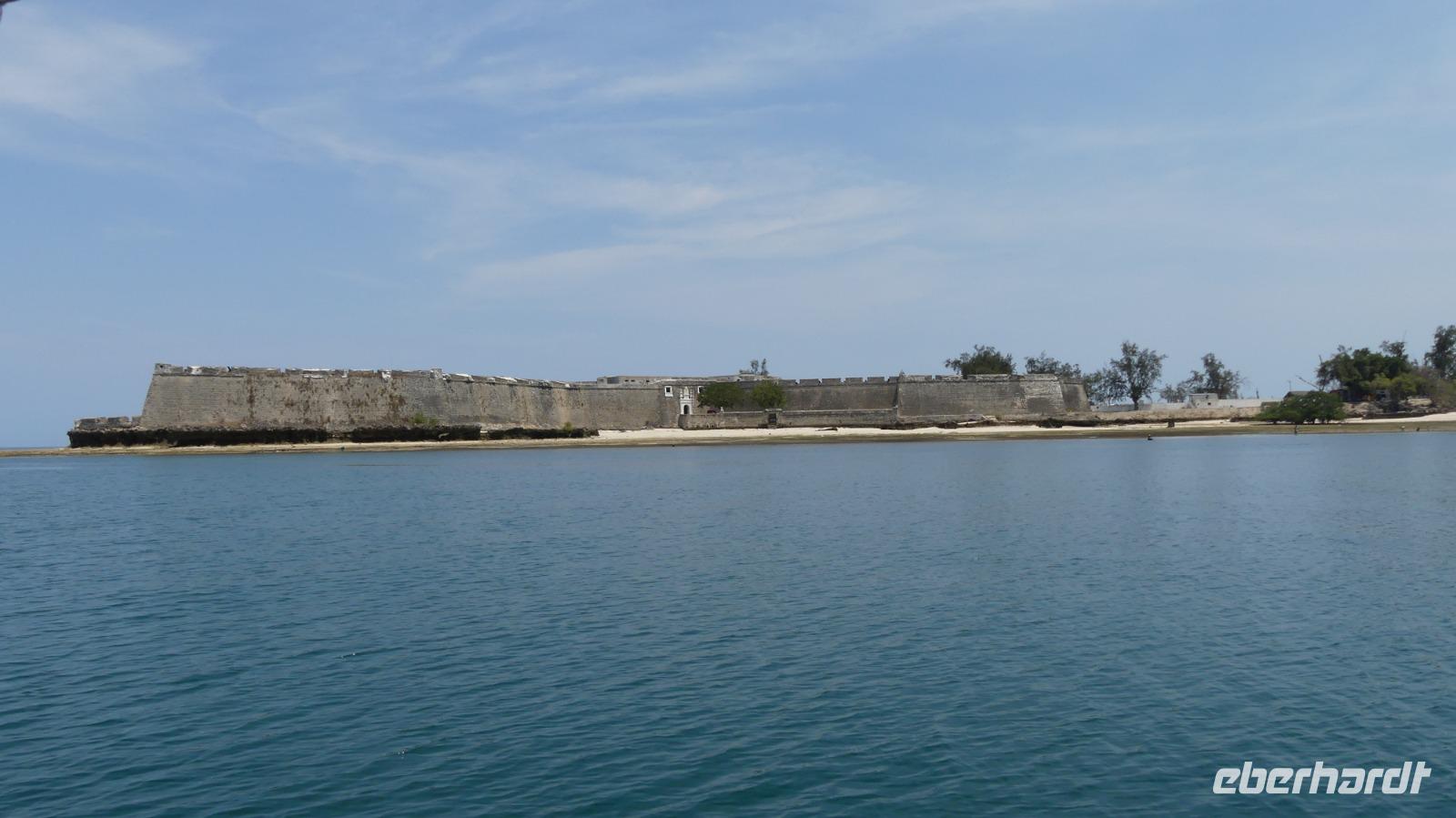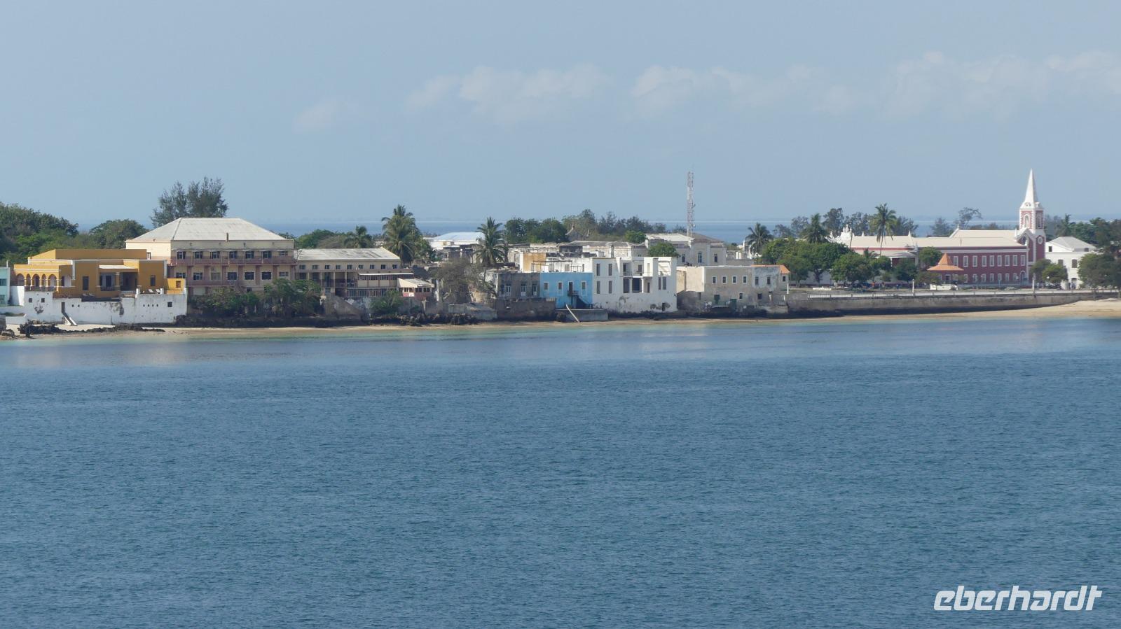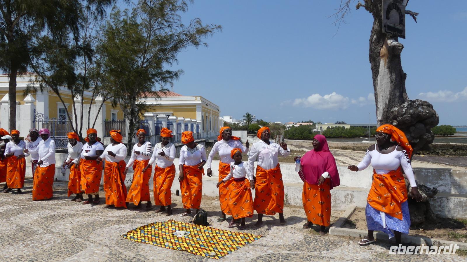 Mit einem Rettungsboot tendern wir am Morgen gemeinsam zur Insel. Die Bewohner empfangen uns freundlich mit Tänzen und Gesängen. Hinter der Pier grüßt die Statue Vasco da Gamas die Ankömmlinge und erinnert damit an den portugiesischen Einfluss. Wir unternehmen einen Spaziergang zur Festung San Sebastiao an der Nordspitze der Insel. Die Portugiesen hatten im 16. Jahrhundert jeden Stein für diese mächtige Anlage mit Schiffen von Portugal hier hergebracht.