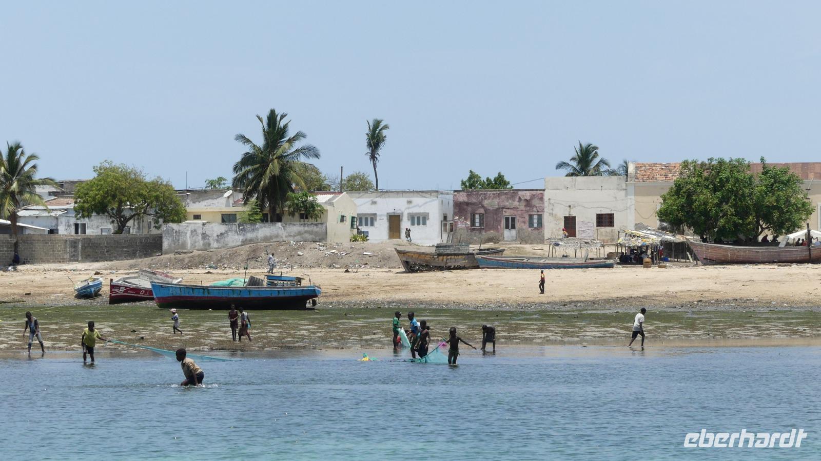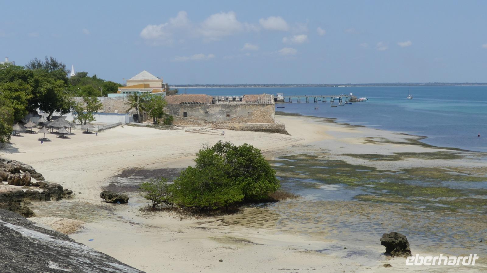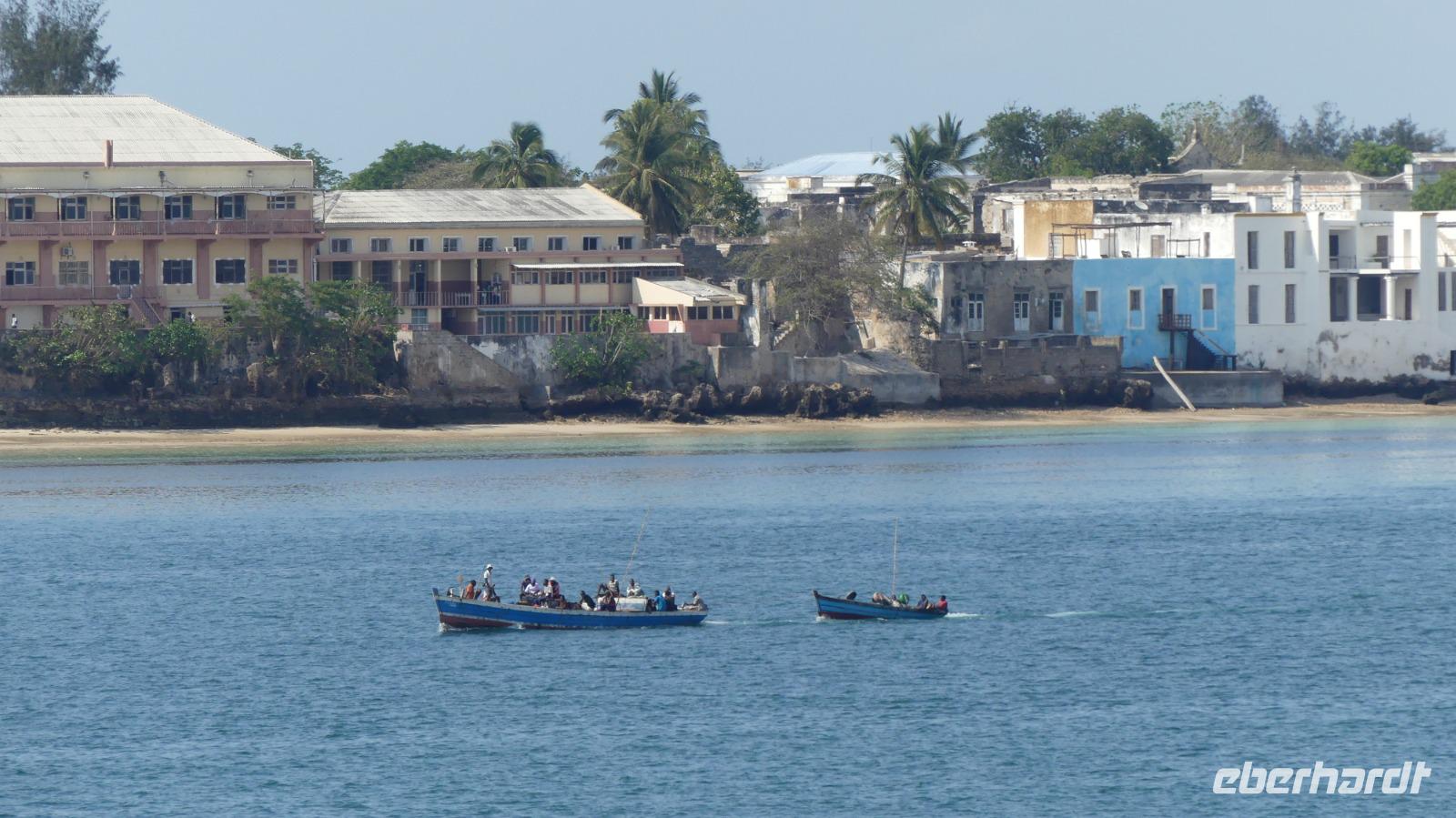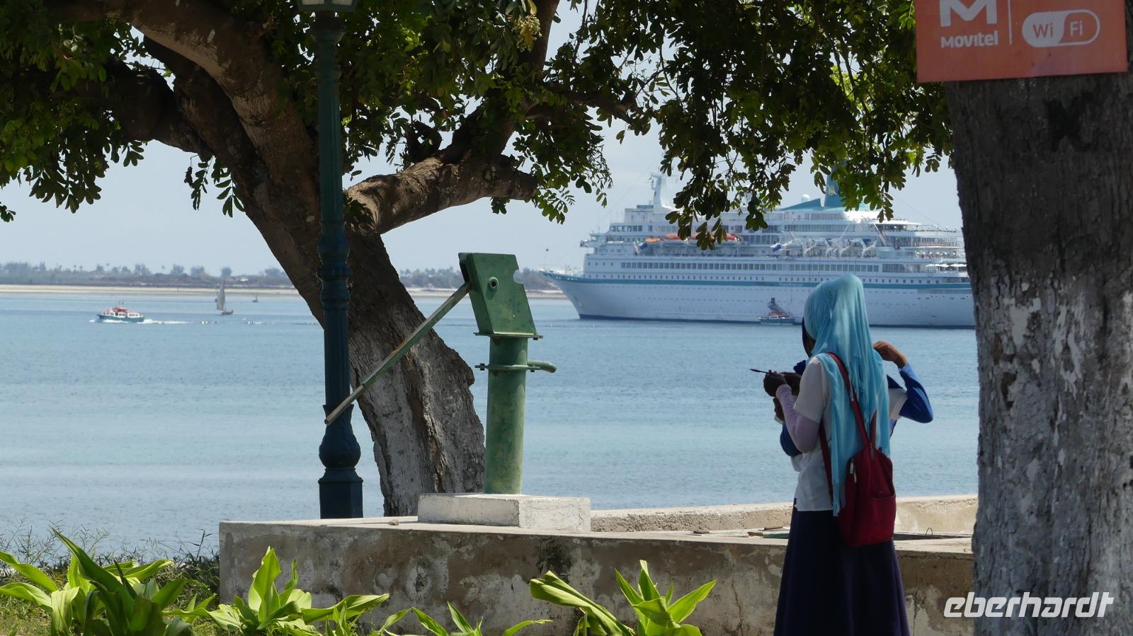 Mit einem Rettungsboot tendern wir am Morgen gemeinsam zur Insel. Die Bewohner empfangen uns freundlich mit Tänzen und Gesängen. Hinter der Pier grüßt die Statue Vasco da Gamas die Ankömmlinge und erinnert damit an den portugiesischen Einfluss. Wir unternehmen einen Spaziergang zur Festung San Sebastiao an der Nordspitze der Insel. Die Portugiesen hatten im 16. Jahrhundert jeden Stein für diese mächtige Anlage mit Schiffen von Portugal hier hergebracht.