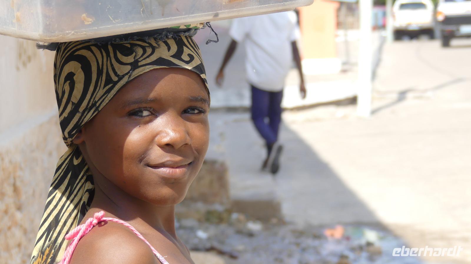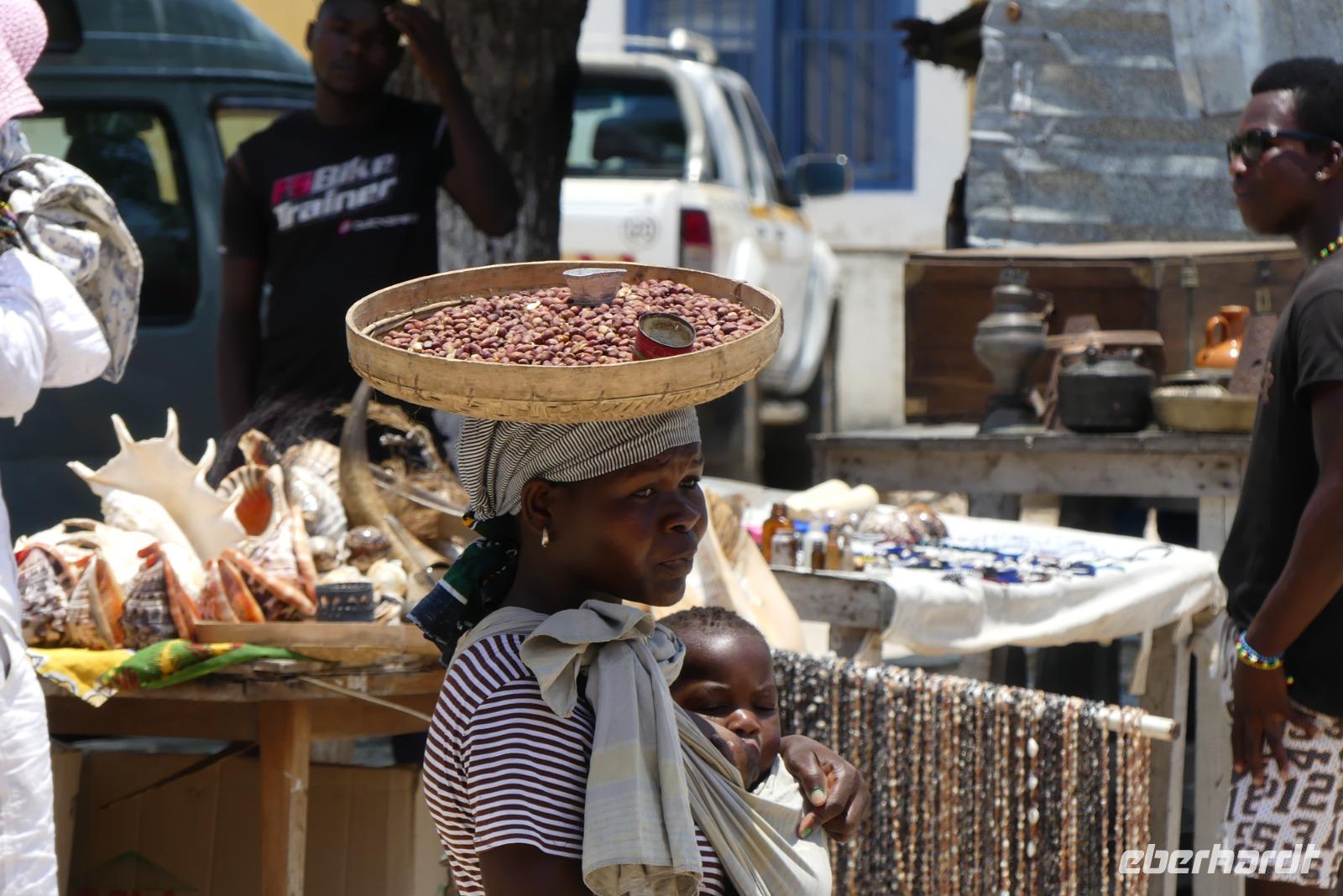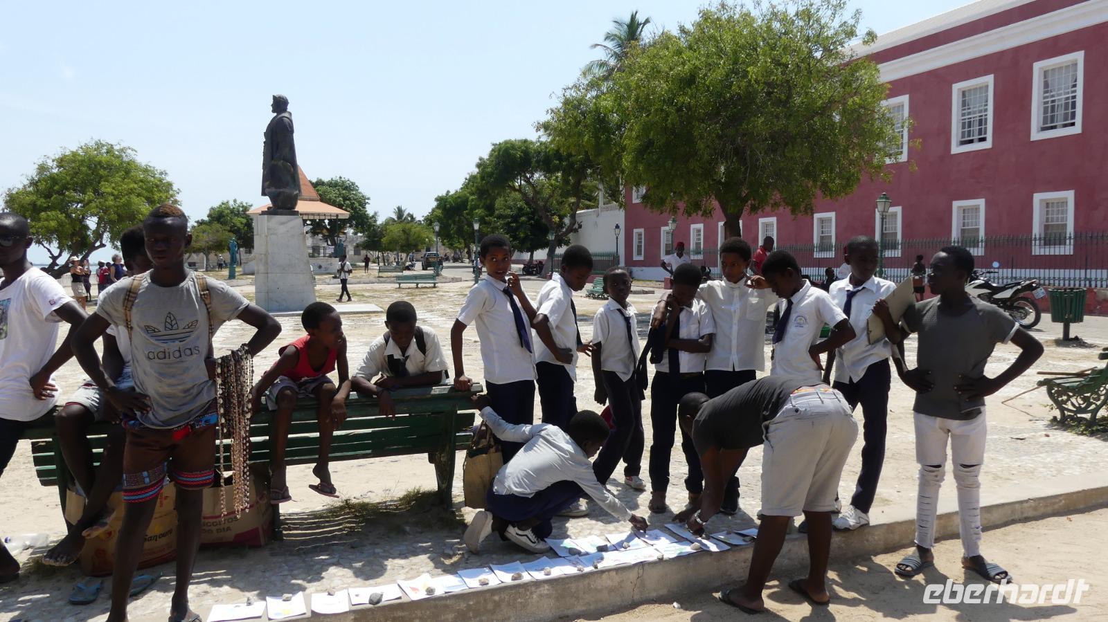 Es ist einfach ein wunderschöner Tag auf Mosambik-Island. Nach Südafrika befinden wir uns jetzt in einer exotischen Welt, mit einer Kultur, die von Arabern, Persern, Portugiesen und Indern geprägt wurde. Besonders angenehm ist, dass die Insel kaum touristisch erschlossen ist. Man sagt uns, dass im Jahr zwei bis drei, vielleicht auch mal vier Kreuzfahrtschiffe auftauchen. So sind wir heute die Attraktion auf der Insel. Die Menschen sind sehr freundlich, manchmal fragen Kinder nach einem Dollar oder sagen, dass sie Hunger haben. Einige Kinder haben Bilder gemalt, die sie verkaufen möchten. In einer Gasse werde ich von einem Mädchen gefragt, ob ich sie fotografieren möchte, sie möchte kein Geld dafür. Die entstanden Fotos sehen wir uns natürlich gemeinsam an.