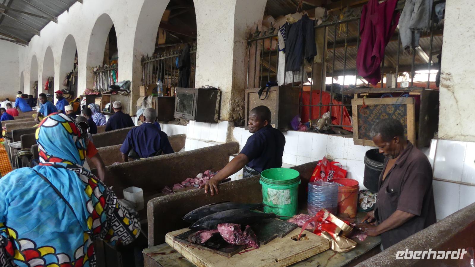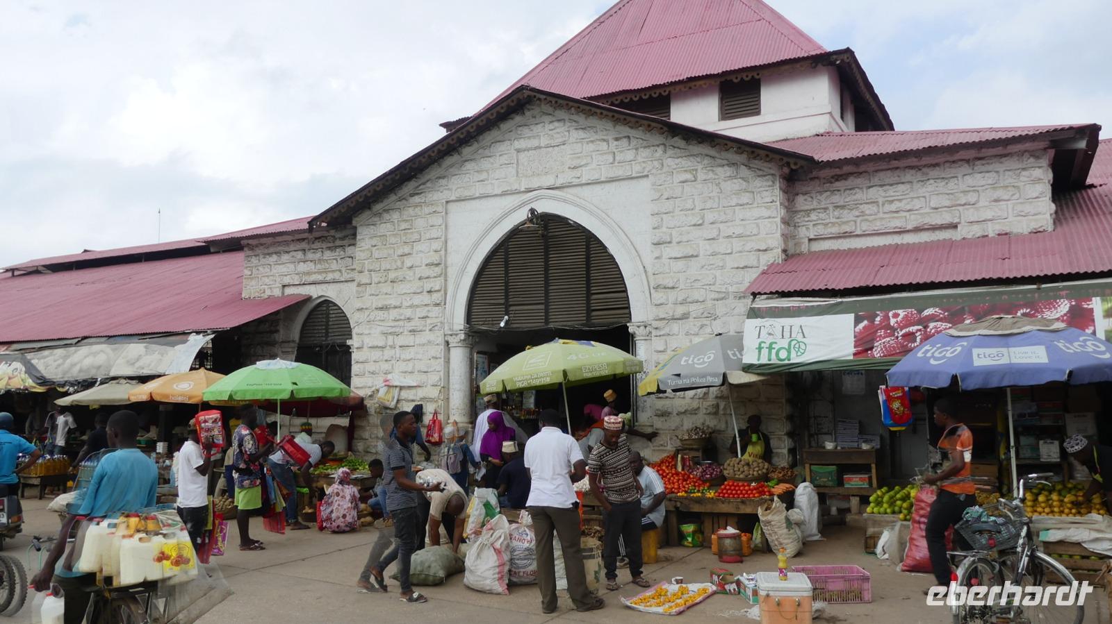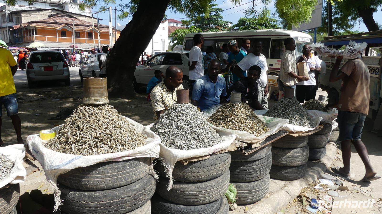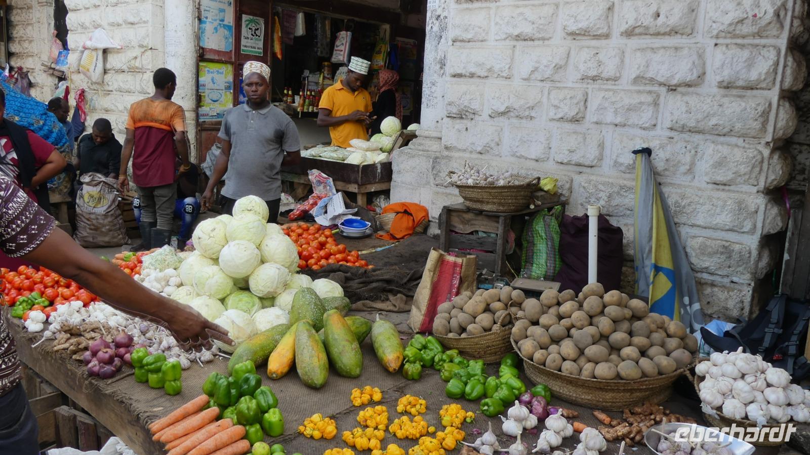 Am Darajani Markt tauchen wir in das quirlige Marktreiben ein. Die schwüle Luft mischt sich mit Gerüchen der Obst-, Gewürz-, Fleisch- und Fischstände. Durch das Gassengewirr gelangen wir zur Anglikanischen Kirche wo sich einst der Sklavenmarkt befand. Die Katakomben, wo Sklaven im 19. Jahrhundert auf engsten Raum bis zu ihrem Verkauf ausharren mussten, sind Relikte dieses dunklen Kapitels der Inselgeschichte. Bei einem Rundgang an der Strandpromenade sehen wir die schon erwähnten historischen Bauten wie den Sultanspalast und die alte Festung. Auch am ersten deutschen Konsulat und dem Geburtshaus von Freddy Mercury kommen wir vorbei. Je nach Interesse schließen sich an die Stadtbesichtigung verschiedene Ausflugsziele an. So werden außerhalb von Stone Town zum Beispiel der Norden Sansibars mit Nungwi angesteuert, andere fahren auf eine Gewürzfarm oder zur Badeinsel Prison Island. Gäste, die mit mir kommen, fahren durch den zentralen Teil der Insel. Bei Dunga schauen wir Holzschnitzern über die Schultern. Sie fertigen die berühmten, reich verzierten Sansibar Türen an. Und auf einer Gewürzfarm gibt es eine reichliche Auswahl von Nelken über Muskat bis Zimt.