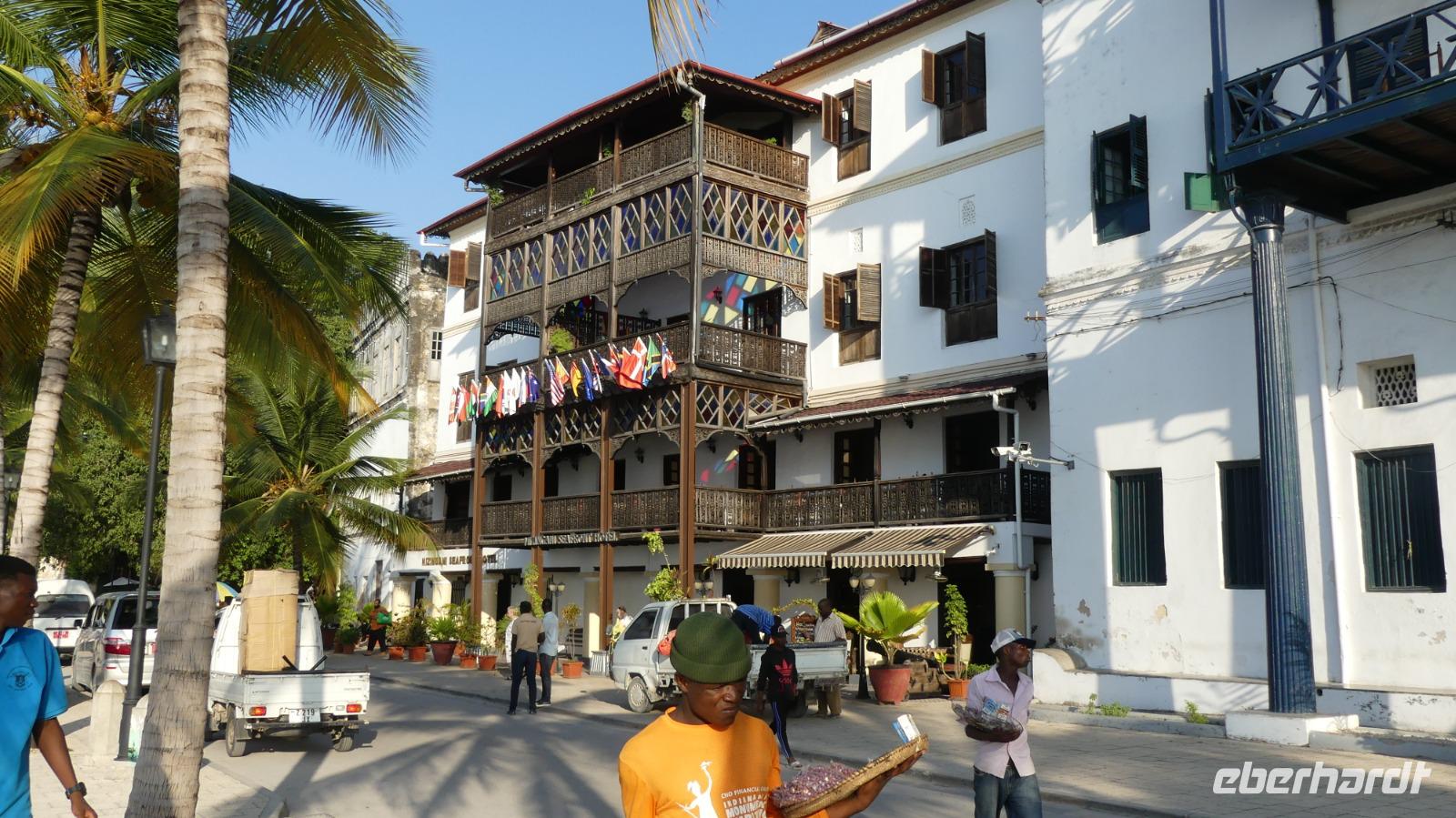 Wir besichtigen am Vormittag die Altstadt von Sansibar City, die Stone Town. Sie steht auf der UNESCO-Weltkulturerbeliste. Ihren Namen als „Steinstadt" leitet sich aus dem Baumaterial, den Korallensteinen ab. In bester Lage in Hafennähe, gut zu Fuß von der Albatros erreichbar, zeugen monumentale Bauten wie der Sultanspalast, das House of Wonders oder die Festungsanlage vom vergangenem Glanz der omanischen Sultane, dessen Reichtum vor allem auf dem Sklavenhandel beruhte.