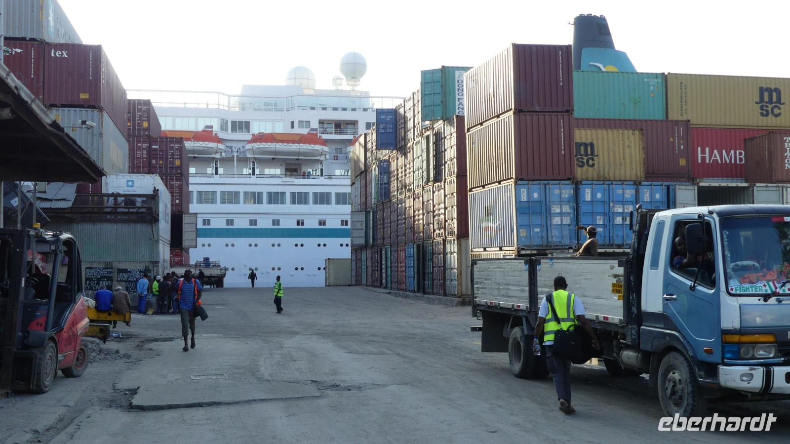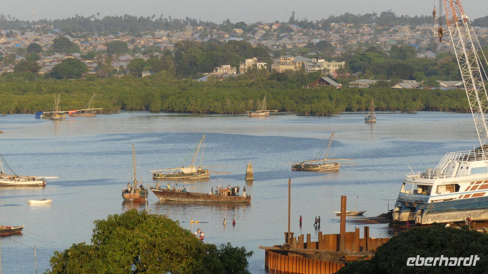 Nach einer kurzen Fahrt in der Nacht erreichen wir am frühen Morgen bereits Mombasa. Die auf einer großen Insel gelegene Millionenstadt hat den größten Hafen Ostafrikas und bietet für die angrenzenden Binnenländer Kenias den wichtigsten Zugang zum Meer.