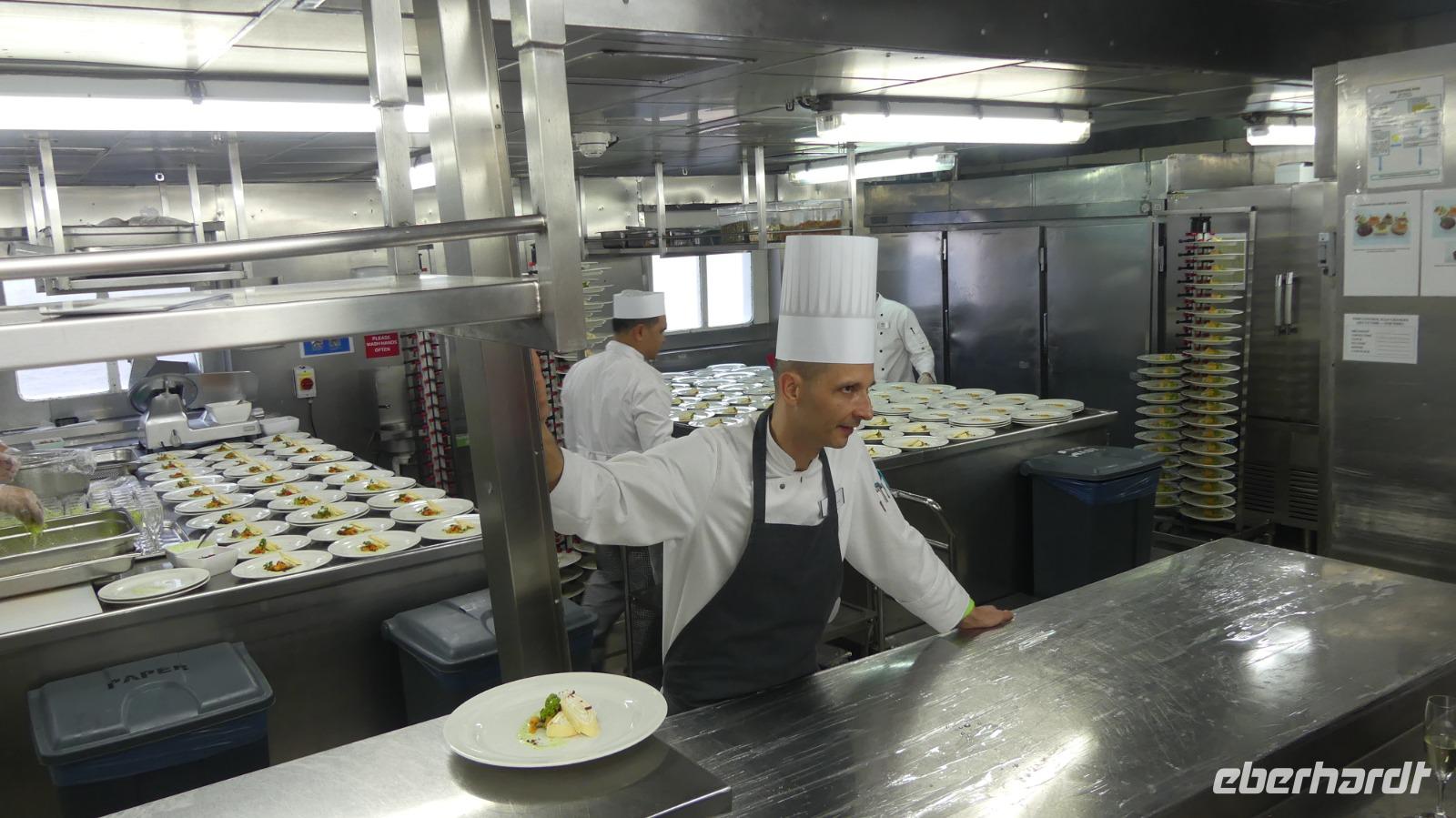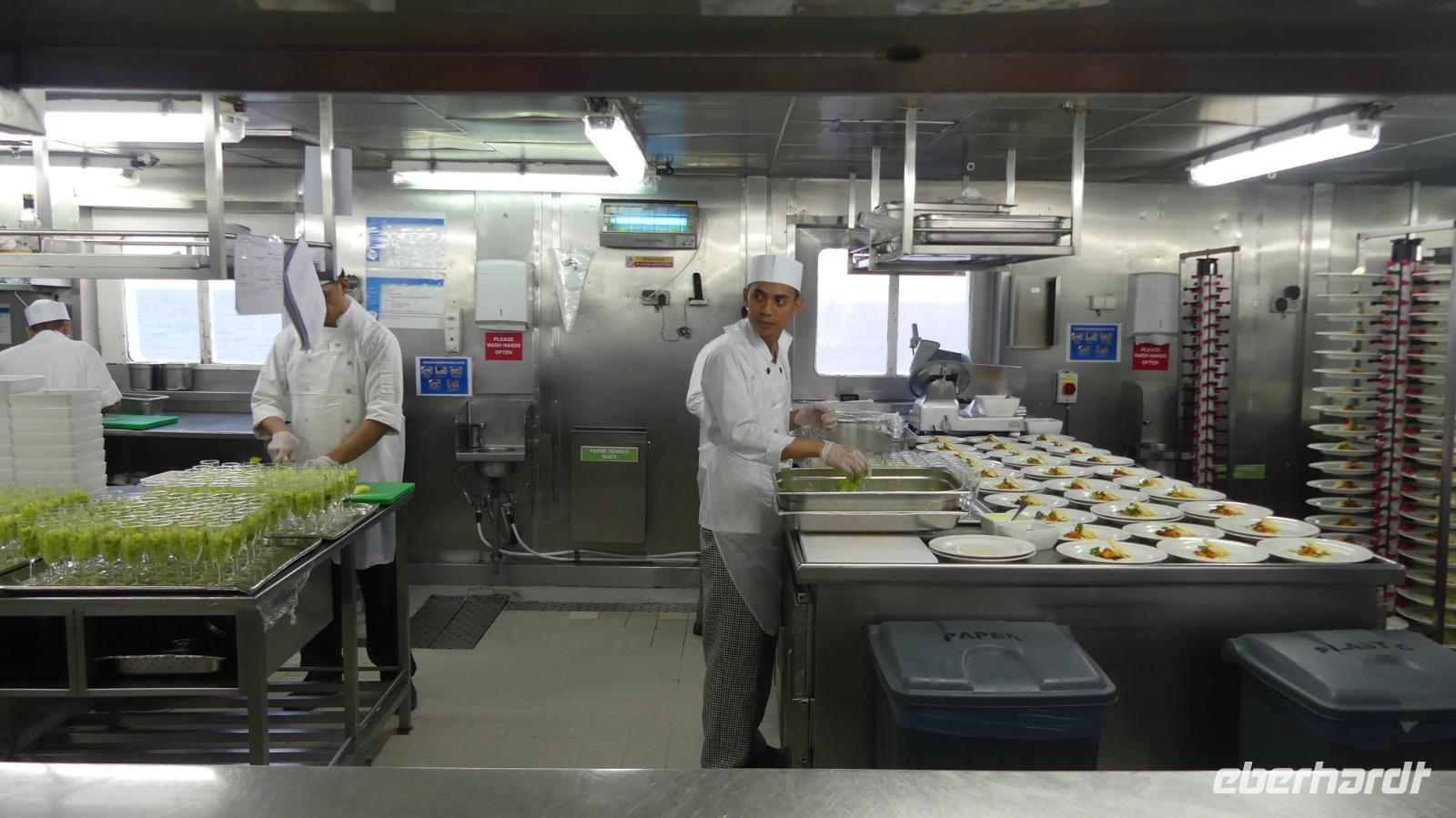 Da alle überpünktlich zurück an Bord kommen, verlassen wir Mombasa Richtung Seychellen schon etwas eher. Während des Abendessens stellen sich heute die verantwortlichen Köche vor, die uns jeden Tag all die leckeren Gerichte zubereiten. Sie stammen hauptsächlich von den Philippinen, außerdem aus Indonesien sowie Myanmar und Rußland.