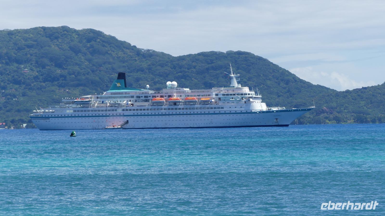 Am folgenden Seetag haben wir unverändert schönes Wetter. Nach dem Hinweis des Kapitäns am Morgen, kann ich Wale auf der Backbordseite entdecken. Inzwischen verdichten sich die Anzeichen für das unaufhaltsame Ende unserer Seereise: Ausreisekarten für die Seychellen ausfüllen, neue Kofferhänger schreiben. Dazu kommen Nachrichten aus Deutschland von einem anstehenden Streik bei der Lufthansa. Mittags werden die Uhren nochmals eine Stunde vorgestellt, sodass wir jetzt drei Stunden vor der Heimat sind. Am Nachmittag treffen wir uns im Kino, um uns auf die Seychellen einzustimmen und Fotos unserer Reise anzusehen. Am Abend wird es dann feierlich: Abschiedscocktail mit dem Kapitän und Gala Abend.