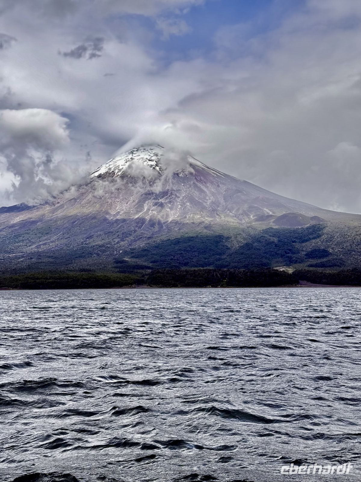 Unsere erste Station auf dem Weg nach Süden, hin zu den eisigen Gewässern, Walen und Pinguinen, war Puerto Montt. Eine wunderschöne Bucht, eingebettet in die ruhigen Wasser des Seno de Reloncaví. Von dort aus fuhren wir direkt zum Todos los Santos See, vorbei an Puerto Varas. Dort genossen wir immer wieder die herrliche Aussicht während einer angenehmen Bootsfahrt. Der Vulkan Osorno bestach durch seine Imposanz und dadurch, dass er uns seine wolkenlose Präsenz schenkte, und dort in der Ferne der Puntiagudo. Unser Weg ging weiter, und noch vor Mittag hatten wir einen weiteren Besuch geplant: die Saltos de Petrohué. Wunderschönes Wasser von einem intensiven Blau, das beim Springen und Fallen herrliche Hellblautöne erzeugte. Der Fluss wird in Kanälen aus dunklem Vulkangestein von launischen Formen geleitet, die das Wasser hierhin und dorthin führen, bevor alle zusammen ihren Weg fortsetzen. Der Hunger ließ nicht auf sich warten, ebenso wenig wie unser Mittagessen: ein schmackhafter Lachs, der von der ganzen Gruppe sehr gut aufgenommen wurde. Ein Fisch der Region par excellence von sehr hoher Qualität. Unsere Rückkehr zum Kreuzfahrtschiff wurde lediglich von einer kurzen Erkundungspause in Puerto Varas unterbrochen, wo uns ein leichter Regen überraschte, der uns verabschiedete.