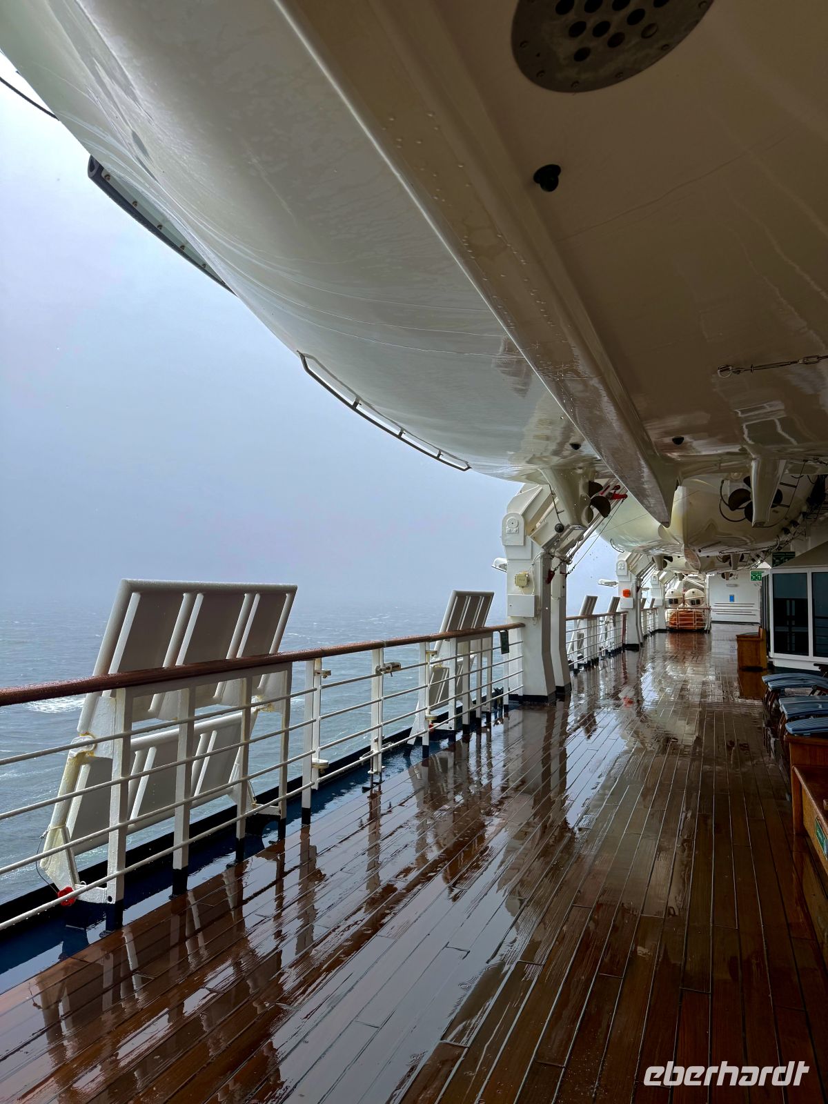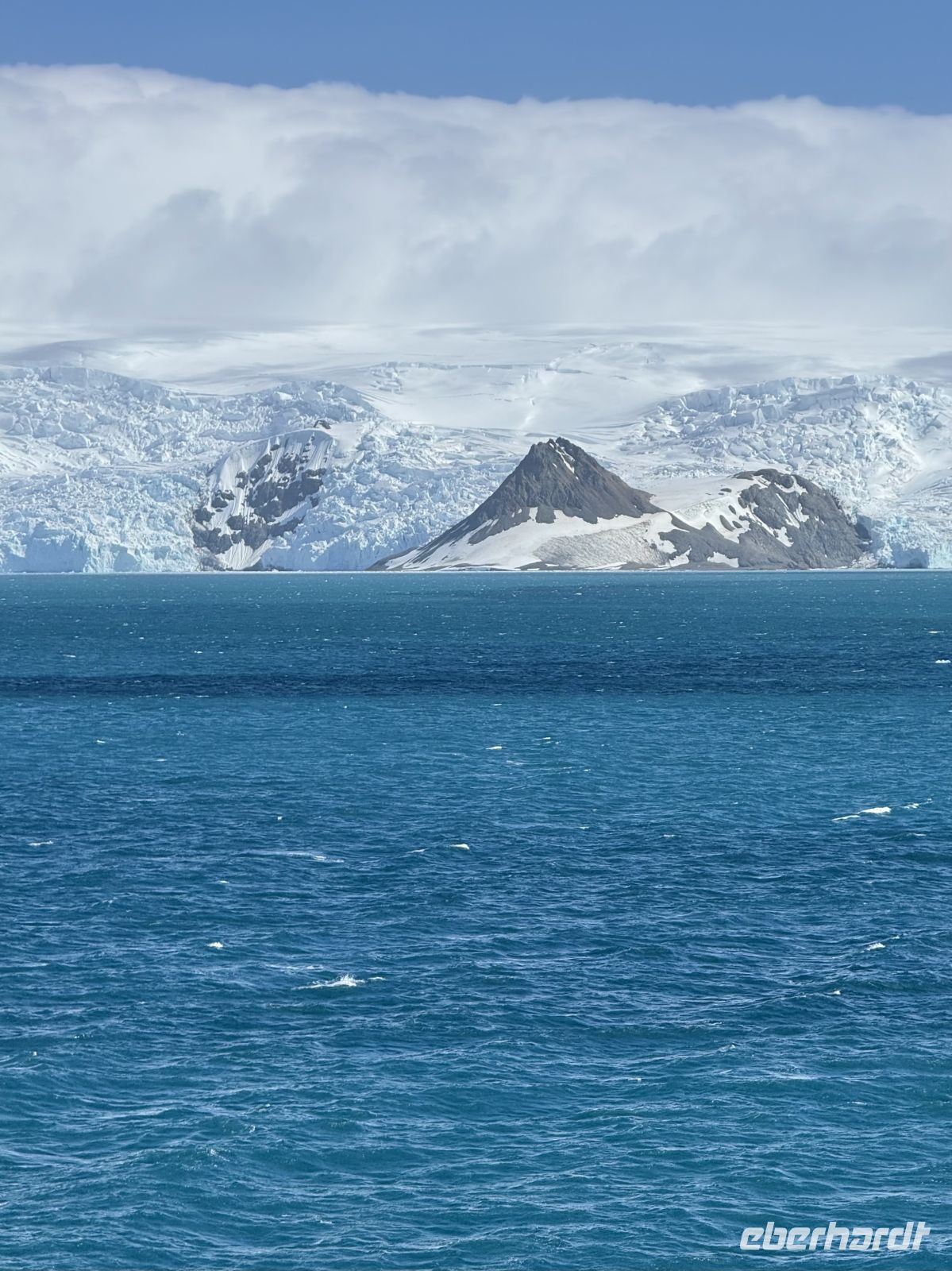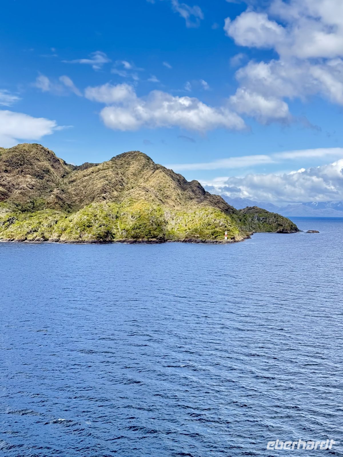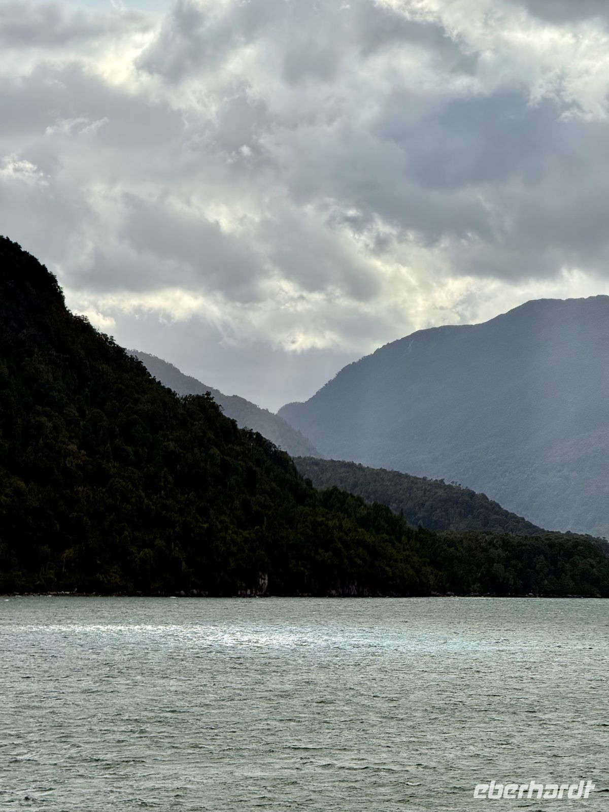 Die Schifffahrt ging weiter, und vom frühen Morgen an stiegen wir in eine Achterbahn der Wetterlagen ein, die nicht aufhörte uns zu überraschen: Nebel, Nieselregen, strahlender Sonnenschein, blaues, hellblaues und dunkles Wasser – alles am selben Tag. So ist Patagonien, diese südlichste Zone der Welt. Das Klima ist launisch, und das ist Teil seines Charmes und seiner Mystik, die es so schön machen. Die Küste mal nah, mal fern. Mit der Zeit wird sie felsiger, die Vegetation spärlicher und niedriger. Der erste Gletscher in Sicht! Was für ein unglaublicher Eindruck! Weiß, Hellblau und Tiefblau, alles in einem einzigen riesigen Eisblock, der sich geduldig, ohne jede Eile, in Richtung Meer bewegt. Die Felsen überraschen uns immer wieder mit ihren kapriziösen Formen, die direkt aus dem Meer auftauchen. Es war eine Zeit, um auf der Promenade spazieren zu gehen, den frischen Wind und die Sonnenstrahlen oder den kalten Nieselregen zu genießen, je nach Moment. Etwas trinken, ein wenig plaudern oder einfach nur dasitzen und den Moment genießen, diesen präzisen, flüchtigen Augenblick, von dem wir im Grunde hoffen, dass er ewig währt.