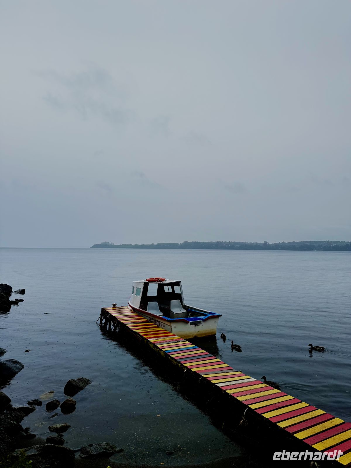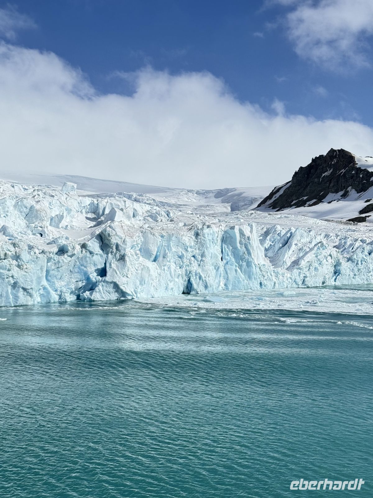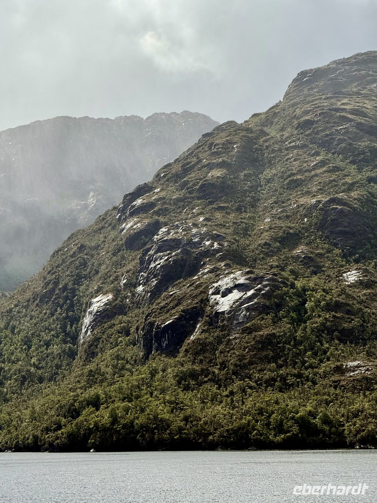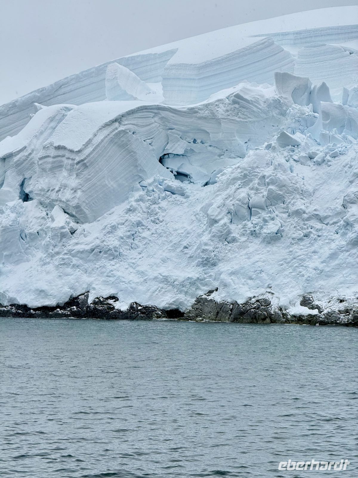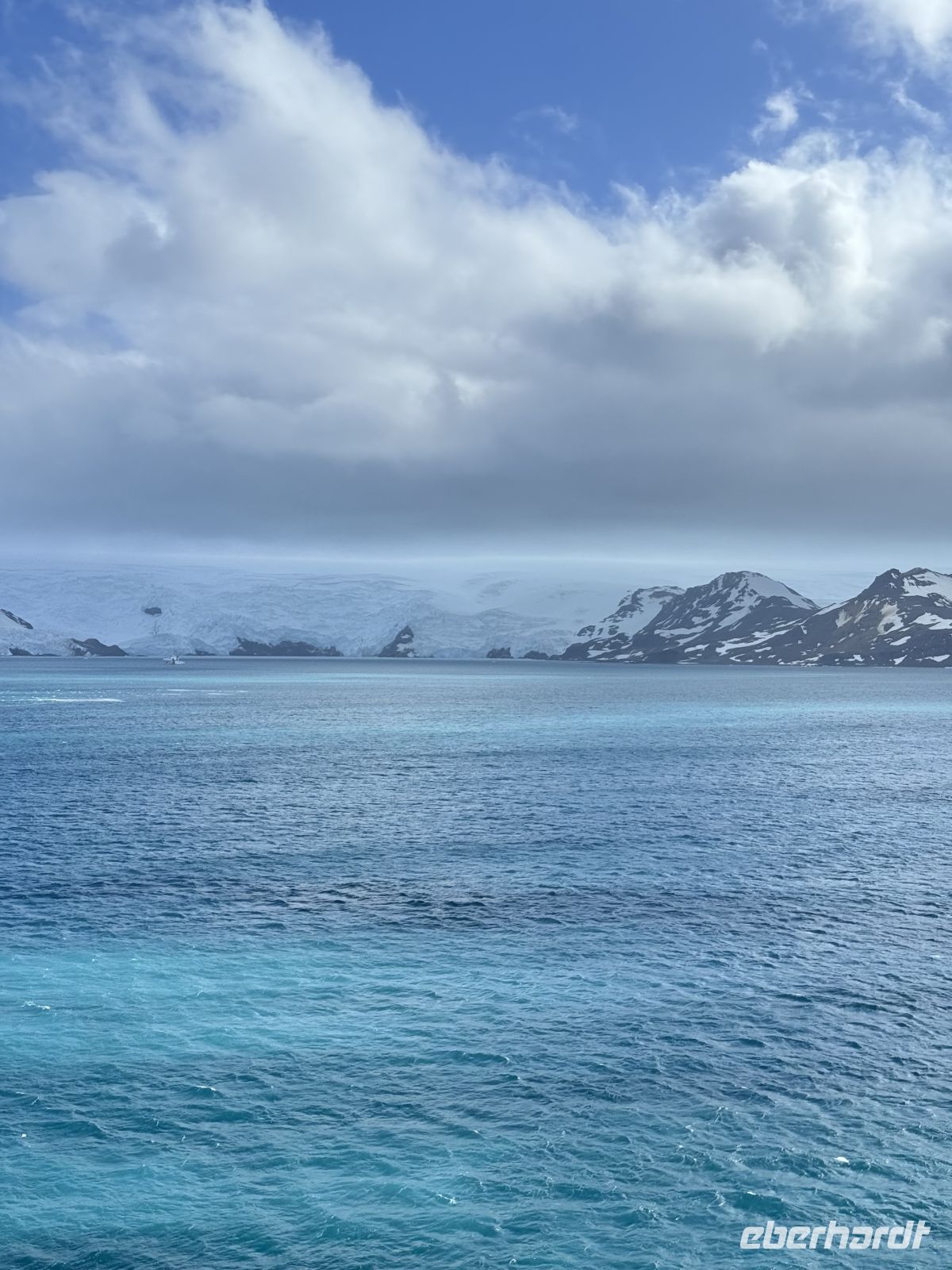 Die Schifffahrt ging weiter, und vom frühen Morgen an stiegen wir in eine Achterbahn der Wetterlagen ein, die nicht aufhörte uns zu überraschen: Nebel, Nieselregen, strahlender Sonnenschein, blaues, hellblaues und dunkles Wasser – alles am selben Tag. So ist Patagonien, diese südlichste Zone der Welt. Das Klima ist launisch, und das ist Teil seines Charmes und seiner Mystik, die es so schön machen. Die Küste mal nah, mal fern. Mit der Zeit wird sie felsiger, die Vegetation spärlicher und niedriger. Der erste Gletscher in Sicht! Was für ein unglaublicher Eindruck! Weiß, Hellblau und Tiefblau, alles in einem einzigen riesigen Eisblock, der sich geduldig, ohne jede Eile, in Richtung Meer bewegt. Die Felsen überraschen uns immer wieder mit ihren kapriziösen Formen, die direkt aus dem Meer auftauchen. Es war eine Zeit, um auf der Promenade spazieren zu gehen, den frischen Wind und die Sonnenstrahlen oder den kalten Nieselregen zu genießen, je nach Moment. Etwas trinken, ein wenig plaudern oder einfach nur dasitzen und den Moment genießen, diesen präzisen, flüchtigen Augenblick, von dem wir im Grunde hoffen, dass er ewig währt.