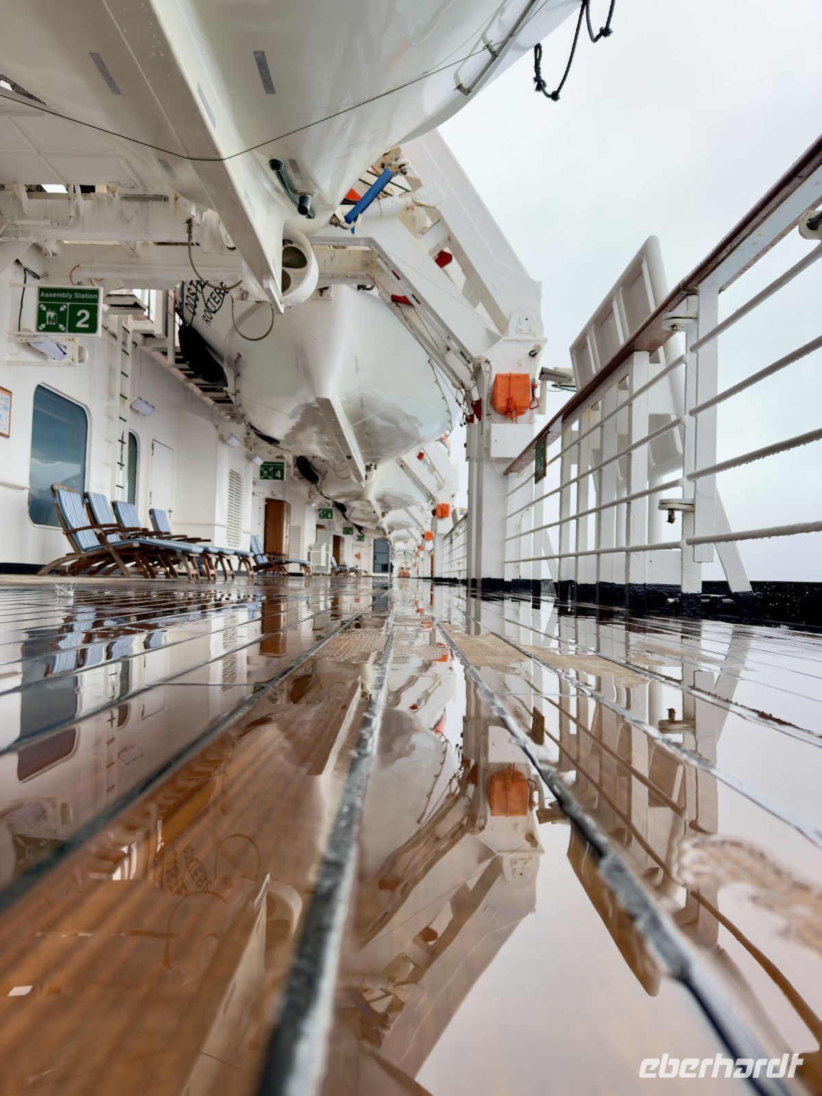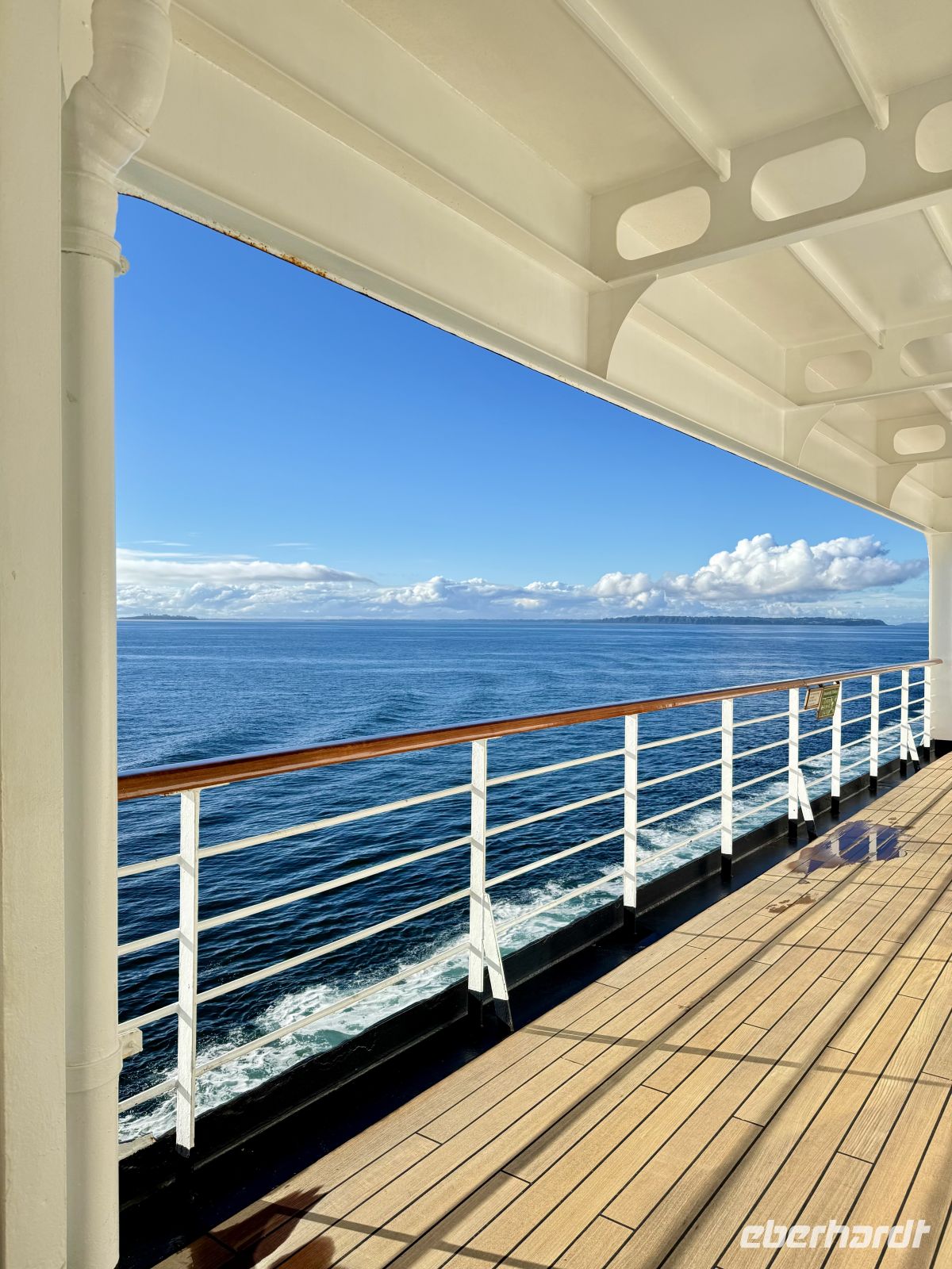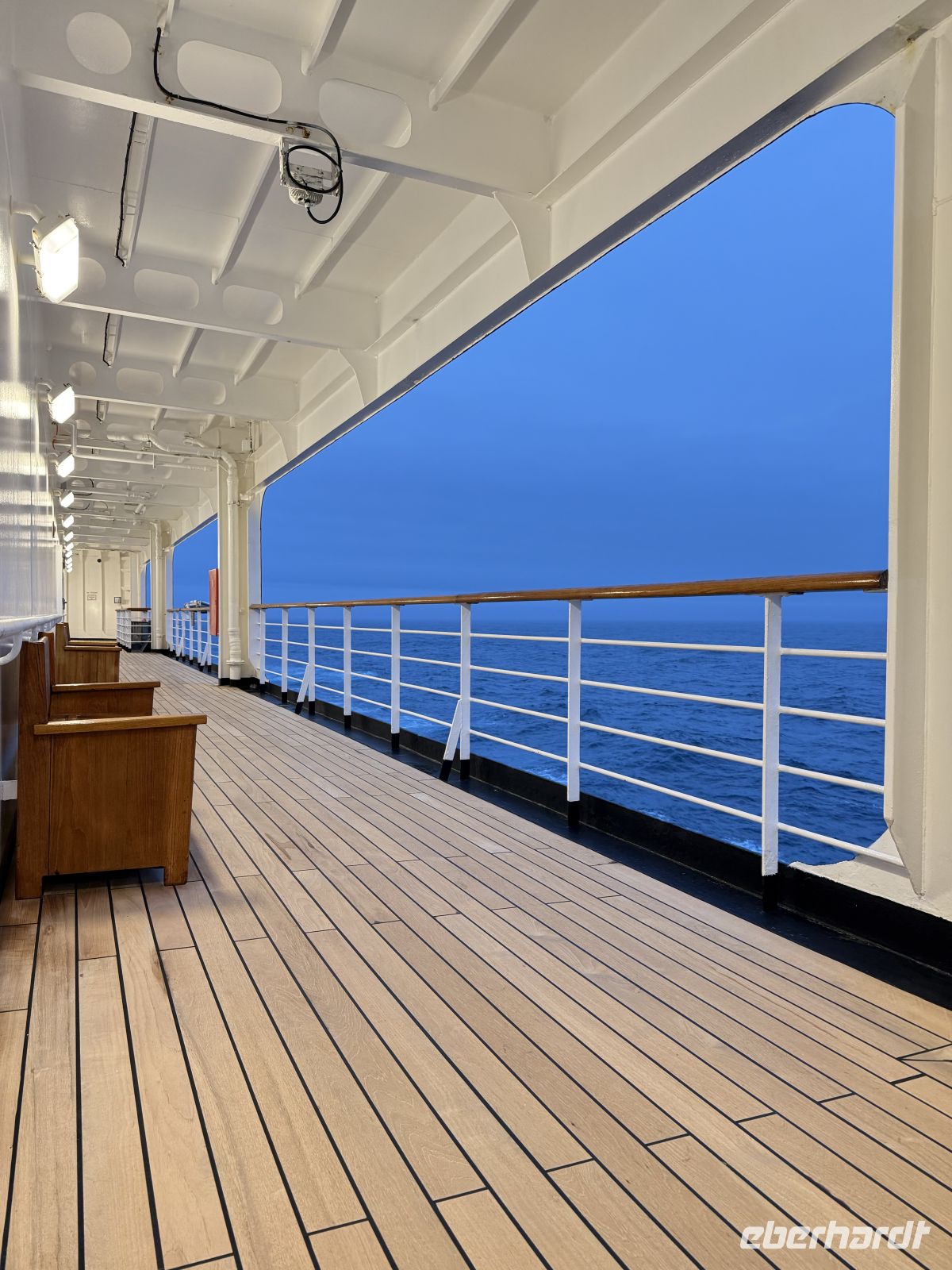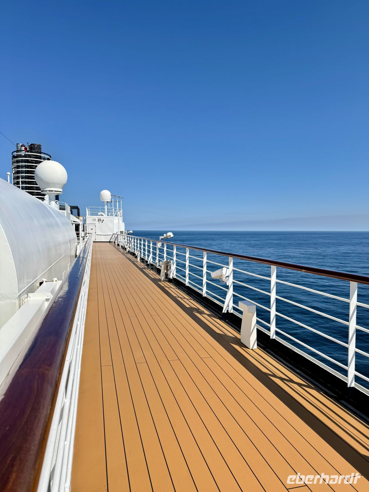 Dies war unser erster Tag auf hoher See. Wir ließen uns ein wenig treiben, entspannten uns und schöpften Kraft von den vorangegangenen Tagen, die wir mit solcher Intensität gelebt hatten. Wir nahmen uns Zeit, um diese schöne und große Dame zu erkunden, die unser Schiff ist und uns sicher in den Hafen bringen wird. So viele Optionen, so viele Wege; man muss sich nach und nach vertraut machen in diesem neuen Zuhause, das so hübsch ist. Am Abend feierten wir unsere Reise mit Champagner und einem Abendessen in festlicher Gala-Garderobe; erneut verwöhnten wir den Gaumen mit einem exzellenten Mahl.