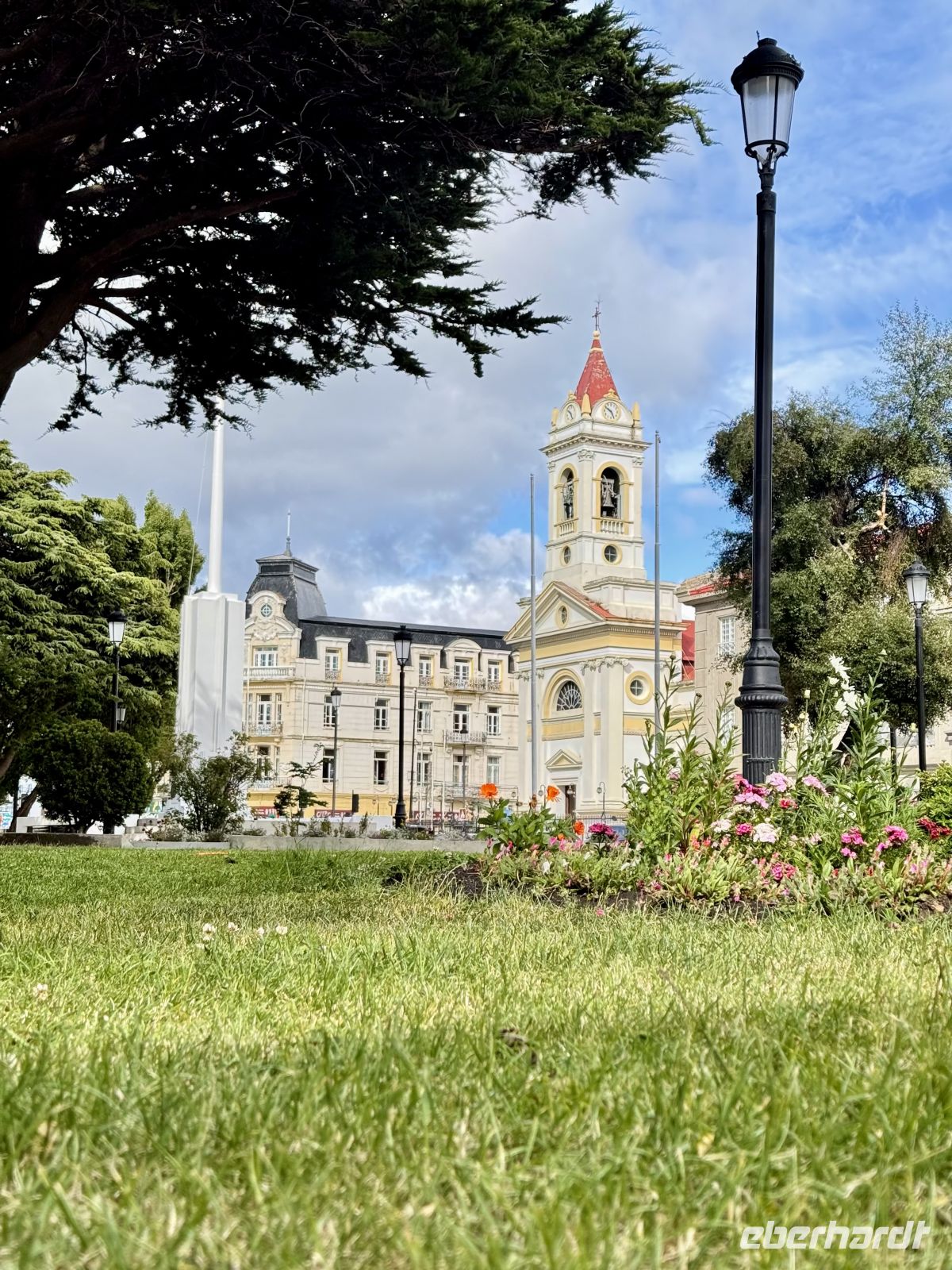 Wir erreichten Punta Arenas zusammen mit dem Tag, und wenn ich mich darauf beziehe, meine ich, dass es zwar schon hell geworden war, aber im Moment des Abschlusses des Anlegemanövers die Sonne in unserem Rücken aufging, am Horizont auftauchte und mit ihren Strahlen die kleine Stadt Punta Arenas voll erleuchtete. Wunderschöne Strahlen spiegelten sich in den zahllosen Scheiben der Fenster der Häuser und der wenigen Gebäude wider. Ihre Vertikalität in Bezug auf die Küste erlaubt es, der Stadt direkt in die Augen zu schauen. Während die soeben aus dem Wasser aufgetauchte Sonne nun in den Wolken versank, nahmen wir uns die Zeit, uns fertig zu machen und nebenbei einen Happen zu essen, bevor wir in den Hafen gingen. Wenig später, als wir unsere warme, neue und komfortable Residenz verließen, waren wir überrascht von der Frische des Klimas. Aber stets vorbereitet, hatten wir genügend warme Kleidung dabei, um den Tag zu verbringen. Unser erstes Ziel war die Plaza de Armas, ein wunderschöner Park mit akribisch gepflegten Grünflächen und schönen, riesigen Zypressen, die bereits seit 120 Jahren den Park betrachten und schmücken. Nur wenige Minuten entfernt, immer in der dem Meer entgegengesetzten Richtung, also in Richtung Berg, kamen wir an, um die Stadt mit dem Meer und unserem Kreuzfahrtschiff im Hintergrund vom bekannten Aussichtspunkt Cerro de la Cruz zu betrachten. Von dort aus widmeten wir uns dem Umherschlendern, immer in Richtung des städtischen Friedhofs, wobei wir das gute Wetter und unsere fröhliche Gruppe genossen. Nach einem kurzen Besuch säumten wir die Küste, bis wir uns wieder zu Hause fanden. Der Nachmittag verlief für jeden anders, einige noch an Land, andere bei einem Nickerchen, Kaffee oder Snack an Bord. Der Himmel verdunkelte sich allmählich und ein Nieselregen kam mit den Wolken. Die Zeit verging und unser Ablegen rückte näher, ebenso wie unser Abendessen, das nie auf sich warten ließ.