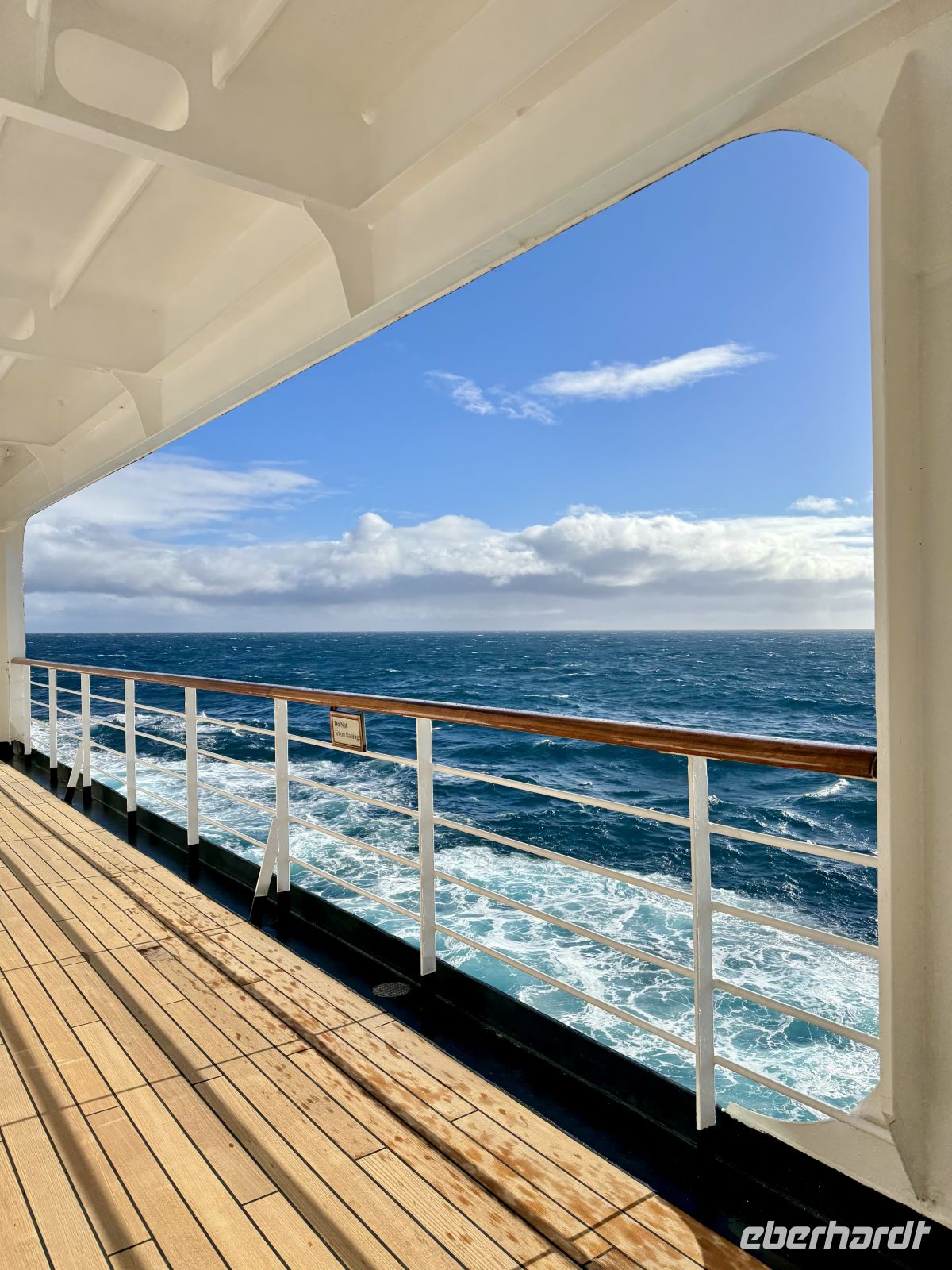 Es ist Blau, tief, gewaltig, unermesslich das Meer. Reine Luft, mehr von all dem, was du einatmen kannst. Ein Schritt nach dem anderen und so fortlaufend, in die eine und andere Richtung gehend, aber schließlich steuert der Bug auf die Eise des Südens zu. So weit weg waren wir momentan noch nie von irgendeiner Küste. Du spähtest zum Horizont und er erwidert dir den Blick. Wir sind hier, nur mit dem, was wir auf dem Rücken mitbrachten, und wir werden zurückkehren, wenn wir es so wünschen, mit erleichterter Last. Wenn du deine Dämonen hierher mitten aufs Meer gebracht hast, kannst du sie in den Tiefen des eisigen Wassers versinken lassen, die Ruhe umarmen, den Körper trainieren, die Züge frischer Luft dein Gehirn mit Sauerstoff versorgen lassen. Wenn die Ruhe dich aufregt, lerne mit ihr zu segeln, denn in den ruhigen Wassern findest du dich selbst.