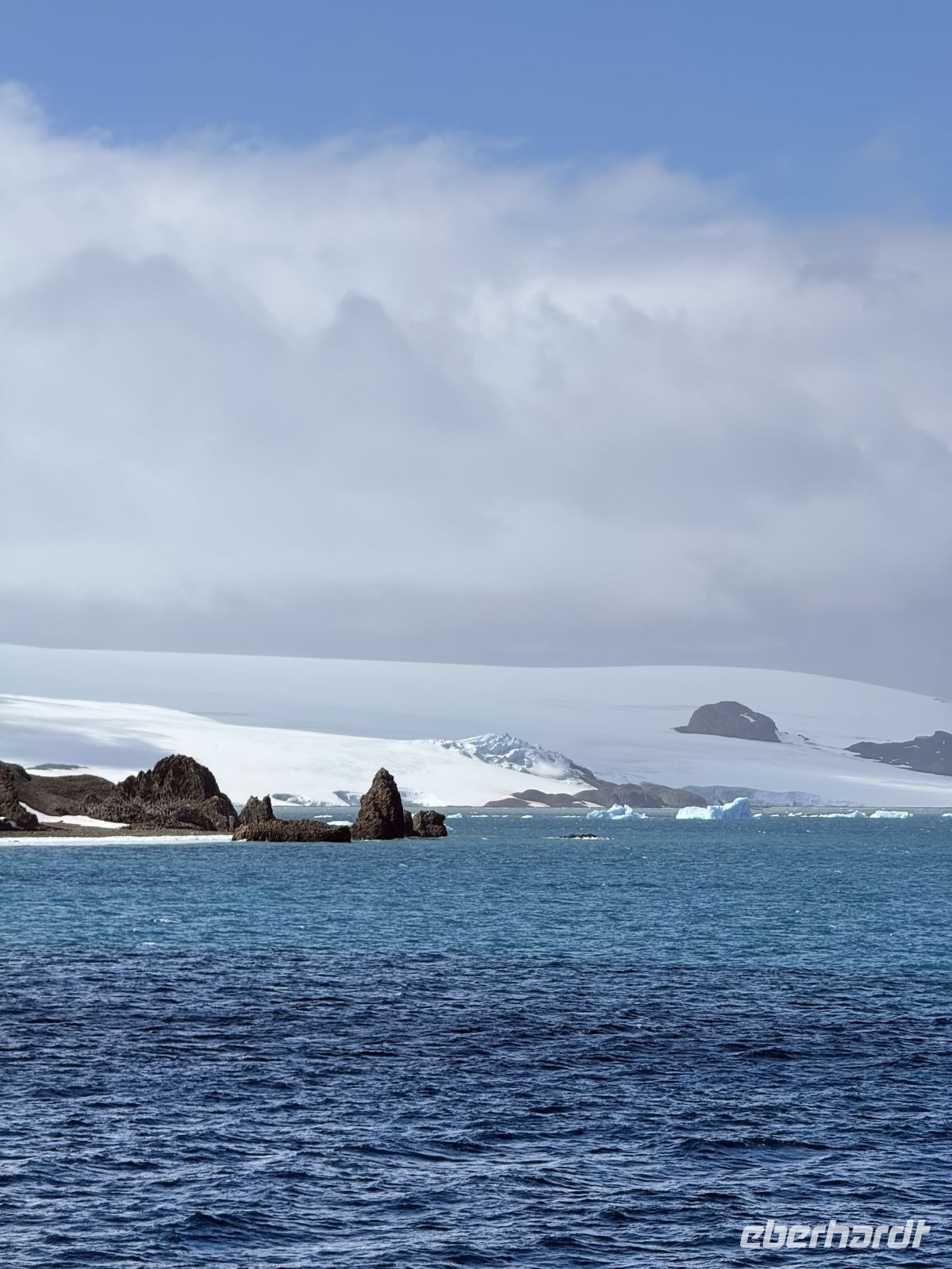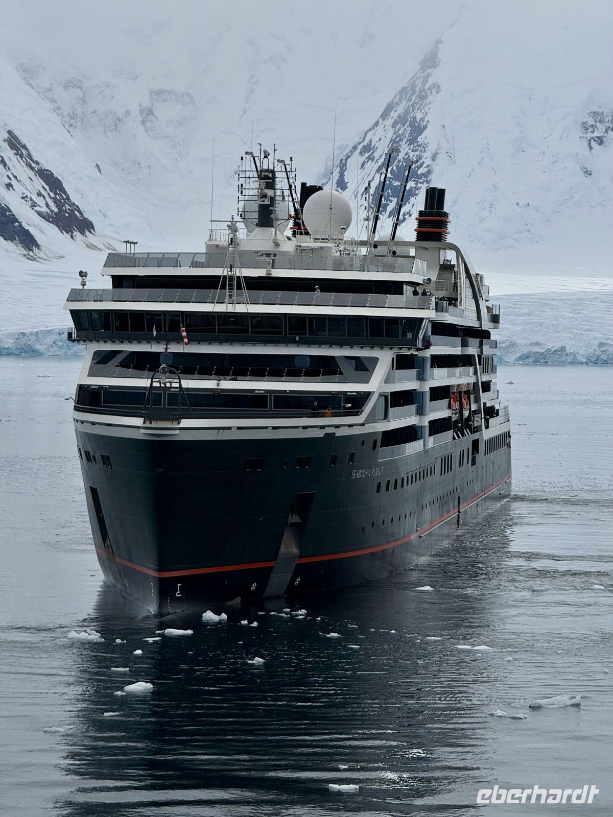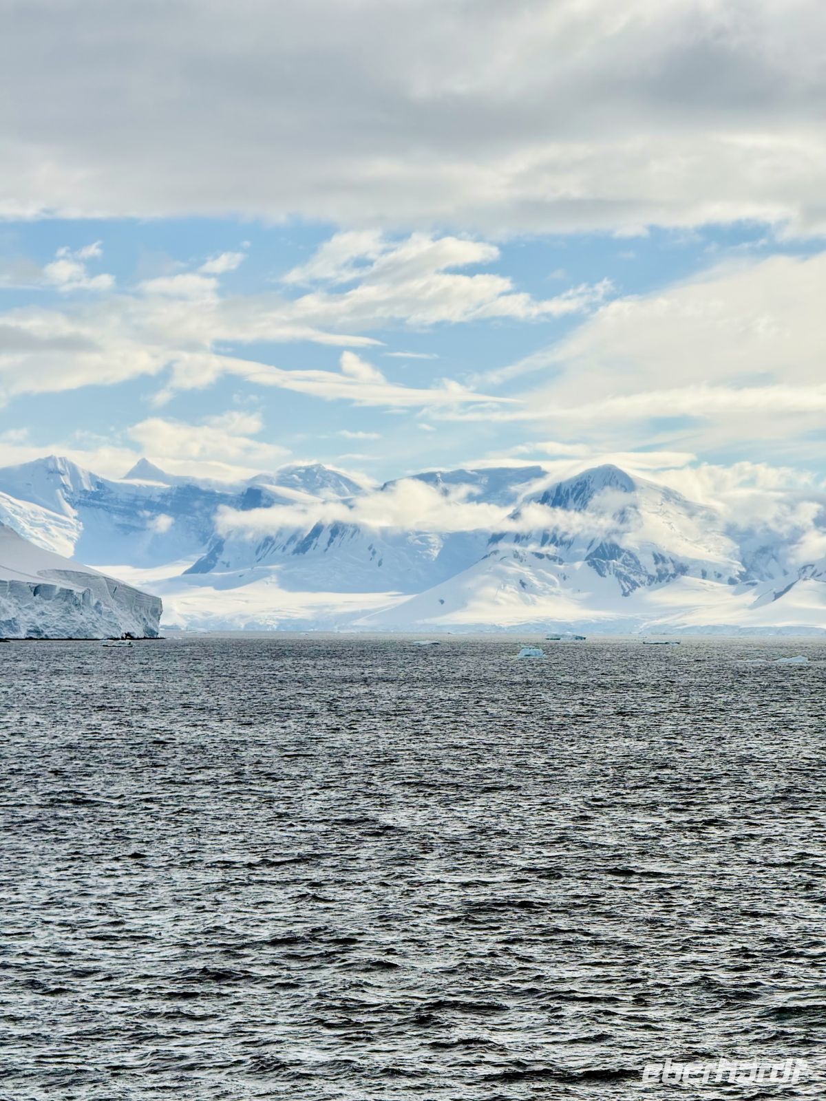 Die Tage auf dem Meer sind nicht frei von Emotionen, aber irgendwann könnte man den einen mit dem anderen verwechseln, oder man könnte in der Truhe der Erinnerungen nicht so leicht die Erinnerungen Tag für Tag nehmen und nummerieren. Jedoch, den Montag, den 19. Januar, werden wir vielleicht das Datum vergessen können, aber nicht die Erinnerung an den Tag, an dem wir in der majestätischen Antarktis ankamen. Von sehr früh an wappneten sich einige von uns mit Kraft und verließen das Bett auf der Suche nach dem perfekten Foto des Sonnenaufgangs. Man muss dabei berücksichtigen, dass, obwohl hier der Sommer in der Antarktis ein Paradoxon an sich ist, wir in wenigen Tagen von kurzen und warmen Tagen in Valparaíso zu langen und eisigen Tagen hier im Süden übergingen. Mit lang meine ich, dass im Grunde ein Dämmerlicht selbst im kurzen und dunkelsten Moment der Nacht bleibt. Die Sonne bricht gegen 3:30 Uhr morgens am Horizont an. Und so war es, und dort waren wir, eine Gruppe von Enthusiasten auf der Suche nach diesem magischen Moment… der nicht kam. Ein dichter Nebel, begleitet von einem starken Sturm, der fähig war, den Robustesten zum Beugen zu zwingen, um nicht das Gleichgewicht zu verlieren. Dies überraschte uns ein wenig, jedoch erlitt die Begeisterung nicht den geringsten Abbruch. Und so warteten wir mit übermüdeten Augen auf den Moment, in dem der Tag hell wurde und sich in der Ferne das Gestein und das Eis abzeichneten, die die Antarktis bilden. Von diesem Moment an nahmen wir die Seele in die Hände und zwangen sie, immer wieder in unseren Körper zurückzukehren angesichts so vieler und so schöner Emotionen als Ergebnis dieses Spiels von Licht und Schatten, das wir Landschaft nennen. Die Sonne ließ nicht auf sich warten, sie entzückte uns mit ihren Strahlen auf dem Eis und im Meer. Auch der Schnee blieb nicht fern, wir sahen ihn in Form von riesigen Schneeflocken vor unseren Augen völlig horizontal vorbeiziehen. Sein Einbruch in unsere Geschichte war kurz, ebenso wie eine Regenepisode, gefolgt von kaltem Wetter, nicht mehr so sehr wie im Morgengrauen, aber wenn das Boot anhält, hält auch der Wind an, der der Dieb ist, der uns die Körperwärme raubt. Wir sahen unzählige Eisblöcke aller Größen, die ohne jede Eile die Wasser durchkreuzten, mit der Gewissheit, dass sie irgendwann Teil des Meeres sein werden. Die Pinguine trieben ihr Unwesen, da und dort eine Robbe auf einem Eisblock. Aber was die Blicke stahl und mehr als einen Schrei aus der Brust lockte, war eine große Gruppe von Orcas, die lange vor unserem Schiff spielten. Der Tag ist lang, fast ewig, doch die Stunden vergehen vor unseren vom Licht getäuschten Augen. Mit einem Getränk in der Hand, nach einem guten Snack, blicken wir nach vorn, lassen den Tag Revue passieren und denken an das, was noch kommen wird.