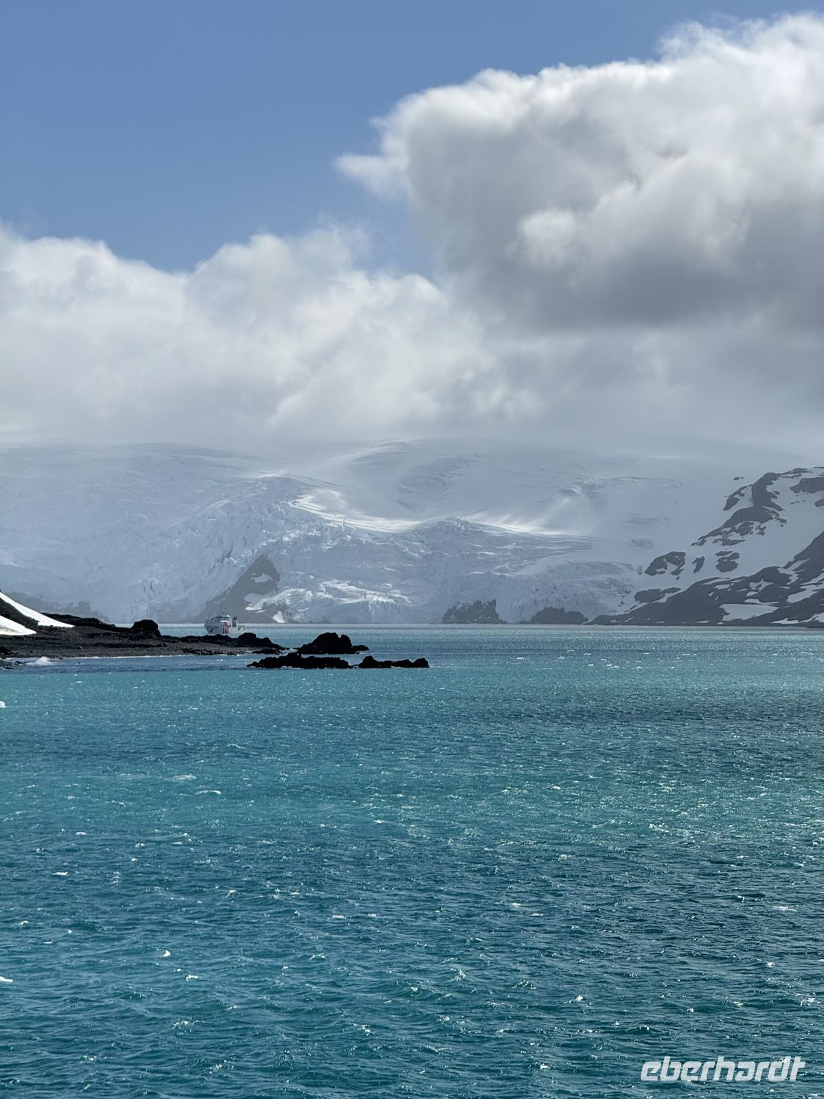Unser Navigieren in der Antarktis glich einem ständigen Crescendo wie eine schöne Melodie, immer in der Steigerung von Emotionen und schönen Eindrücken. Und wie bei einer musikalischen Komposition schlossen wir im Höhepunkt ab, atemlos vor dem Gletscher der Admiralty Bay. Das Präludium zu unserer Ankunft war wunderschön, aber das Privileg, den Gletscher auf Augenhöhe zu sehen, mit einer Sonne, die die Farben Weiß, Blau und Türkis hervorhebt, ist einfach wunderbar. Und als wir glaubten, schon alles gesehen zu haben, hört das Leben nicht auf uns zu überraschen, und dieses Mal war es mit dem Geschenk eines Prozesses, der vor 400 Jahren begann. Vor uns löste sich ein großes Stück Eis vom Gletscher und wurde Teil des Meeres. Wir setzten unsere Fahrt mit dem Wetter auf unserer Seite und unbeschreiblichen Landschaften zu beiden Seiten fort. Alles lief wie am Schnürchen, jedoch ist das Wetter das Wetter und die Natur ist unvorhersehbar. Und als wäre das nicht genug, prophezeite die Drake-Passage vor uns einen aufgepeitschten Wellengang, der uns am Nachmittag tatsächlich überraschte. So ging die Fahrt weiter und wiegte unser neues und riesiges Zuhause. Aber wir, bereits als geweihte Seeleute, ließen uns davon einfach nur einlullen.