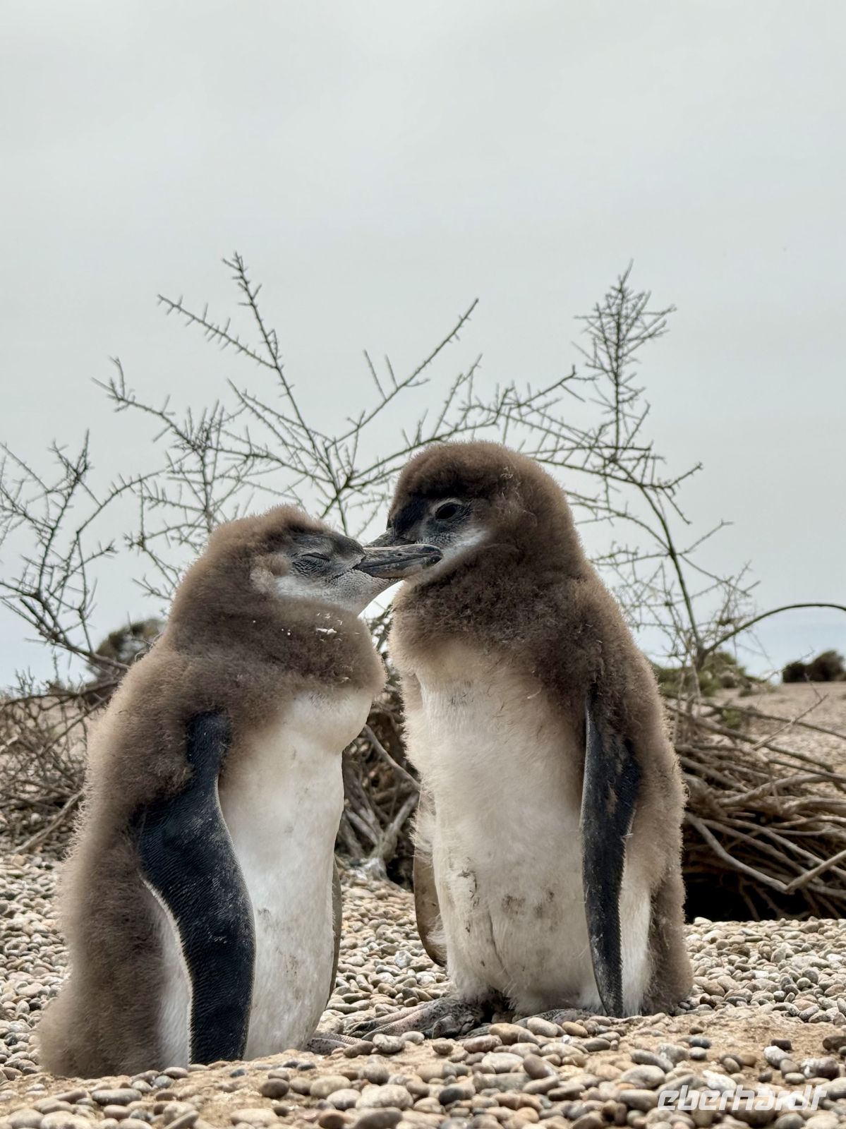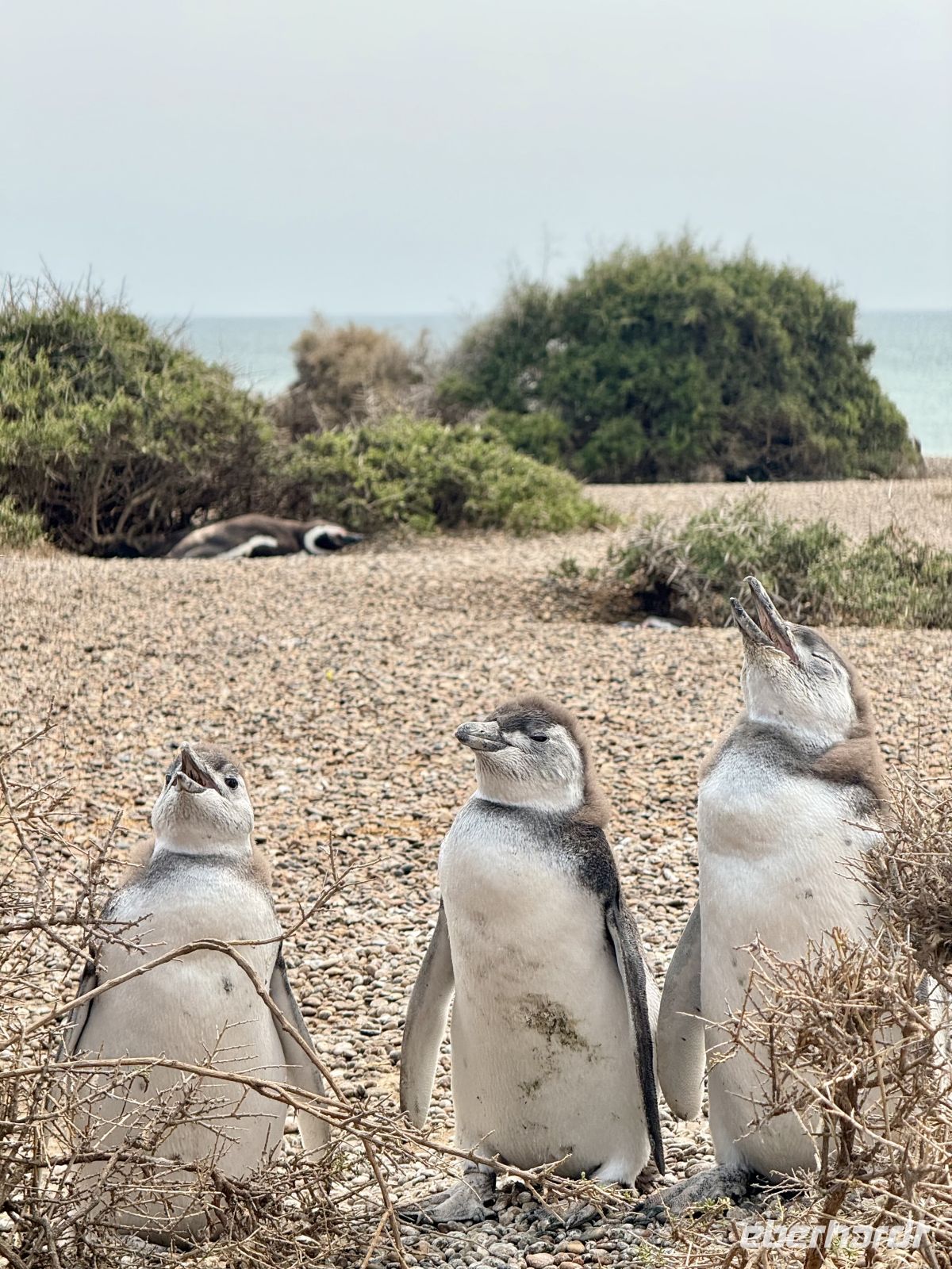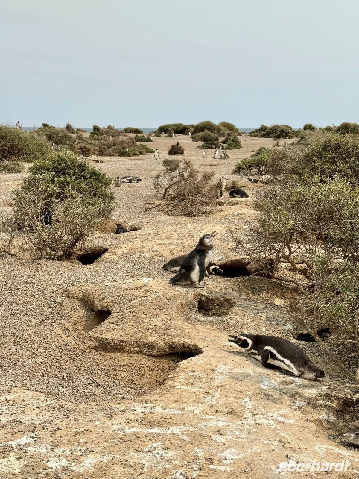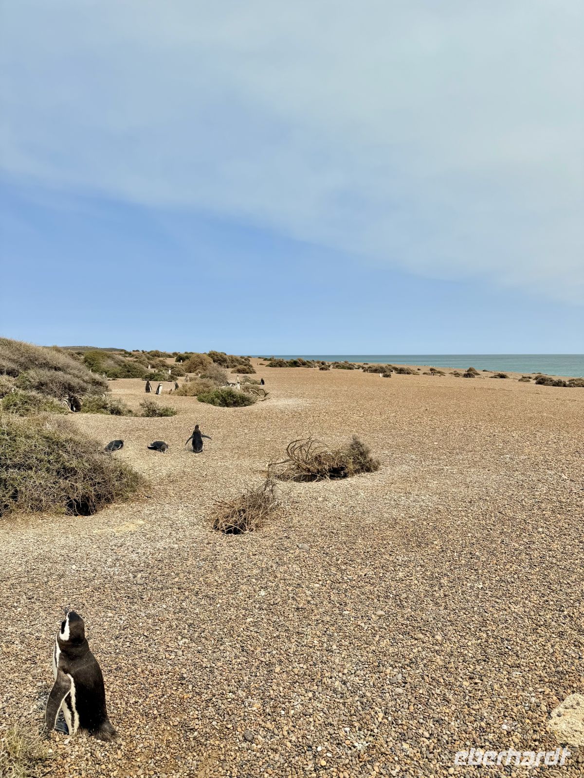 Die Nächte wurden wieder zu Nächten, damit meine ich, dass sie wieder dunkel wurden und die Tage warm. Und dies war der erste wirklich warme Tag seit geraumer Zeit. Gleich in der ersten Stunde, bereits gefrühstückt, traten wir unser kleines Abenteuer des Tages an, das uns inmitten von wüsten Ebenen zur größten Magellan-Pinguin-Kolonie Amerikas führte. Es ist eine kuriose und lustige Erfahrung, denn diese kleinen Charaktere haben eine große Persönlichkeit und bringen uns ununterbrochen zum Lächeln mit ihren Verrichtungen und Einfällen. Schon aus mehr als 200 Metern Entfernung vom Strand sah man sie in guter Anzahl ohne jegliche Scheu vor uns; je mehr wir uns dem Strand näherten, desto größer wurde die Zahl, und es wäre vergeblich, sie zählen zu wollen, denn soweit das Auge reicht, gibt es Pinguine in der Ferne. Wir kamen zur Zeit der Aufzucht, und es gab unzählige Küken von guter Größe, aber noch zu jung, um für sich selbst zu sorgen, und daher das große Geschrei, das man hörte, von den Kleinen, die sich die Kehle aus dem Leib schrien und um Futter baten. Da wir uns im Land der Gauchos befanden, war ein Asado am Kreuz eine Pflicht, und warum nicht begleitet von einigen Empanadas und zum Nachtisch das typische Dulce de Leche! Und da wir schon dabei sind, teilten wir uns, der Gepflogenheit folgend, einen Mate, im besten Gaucho-Stil, stark und ohne Zucker, auf unserem Rückweg zum Hafen. Auf hoher See enden oder beginnen alle Sonnenauf- und -untergänge im Wasser. Zum zweiten Mal in Folge erlebten wir einen besonders schönen genau während des Abendessens, als Abschluss unseres Tages und eines weiteren Kapitels dieser Reise, die uns unaufhörlich angenehme Überraschungen bringt.