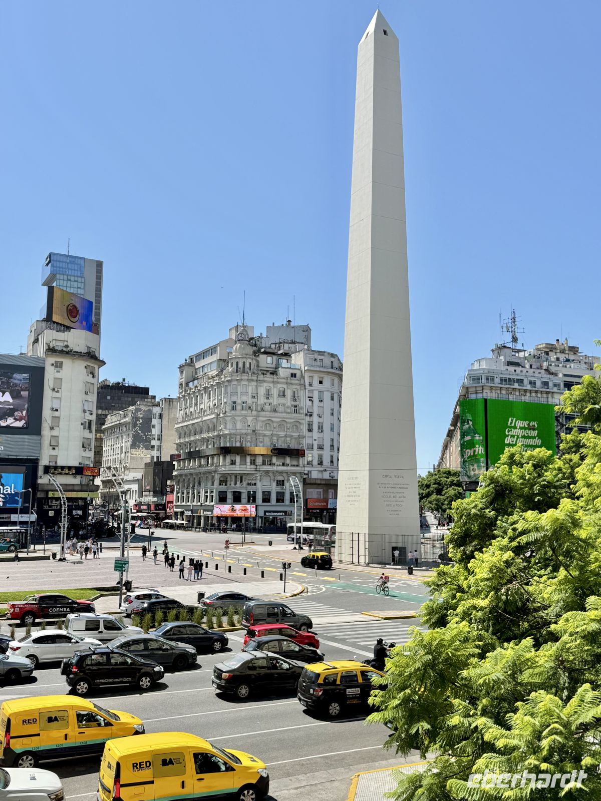 Ein Tag überladen mit Emotionen, beginnend mit dem Verlassen dessen, was unser schönes Zuhause war, wobei wir nicht genau sagen könnten, ob es für kurze oder lange Zeit war, denn das hat viel damit zu tun, welche Erinnerung oder welches Gefühl damit verbunden ist. Schnell sahen wir uns in der einen und anderen Richtung durch Buenos Aires kreuzen, sei es zu Fuß oder im Bus, wobei wir die Stadt aus verschiedenen Blickwinkeln bewunderten, was uns geniale Perspektiven verschaffte, die helfen, einen sehr angenehmen Eindruck mitzunehmen, immer begleitet von Gelächter, hervorgerufen durch unseren lokalen Führer und seine immer lustigen Einfälle. Die klassischen Besuche durften nicht fehlen: der Obelisk, der Caminito, das Teatro Colón, Puerto Madero, die Frauenbrücke (Puente de las Mujeres) usw., aber immer alles aus einer Sichtweise gesehen, wie sie die meisten Touristen niemals zu sehen bekommen. Nun, klarer Weise machte uns das durstig und weckte den Appetit; nichts, was ein historisches lokales Restaurant nicht lösen könnte, und kurz vor dem Flug sahen wir uns gut gesättigt und zufrieden, sodass wir danach in aller Ruhe den Check-in-Prozess am Flughafen erledigen konnten. Der sonnige Nachmittag hielt an, so flogen wir ab und so kamen wir an unserem neuen Ziel an: Iguazú!