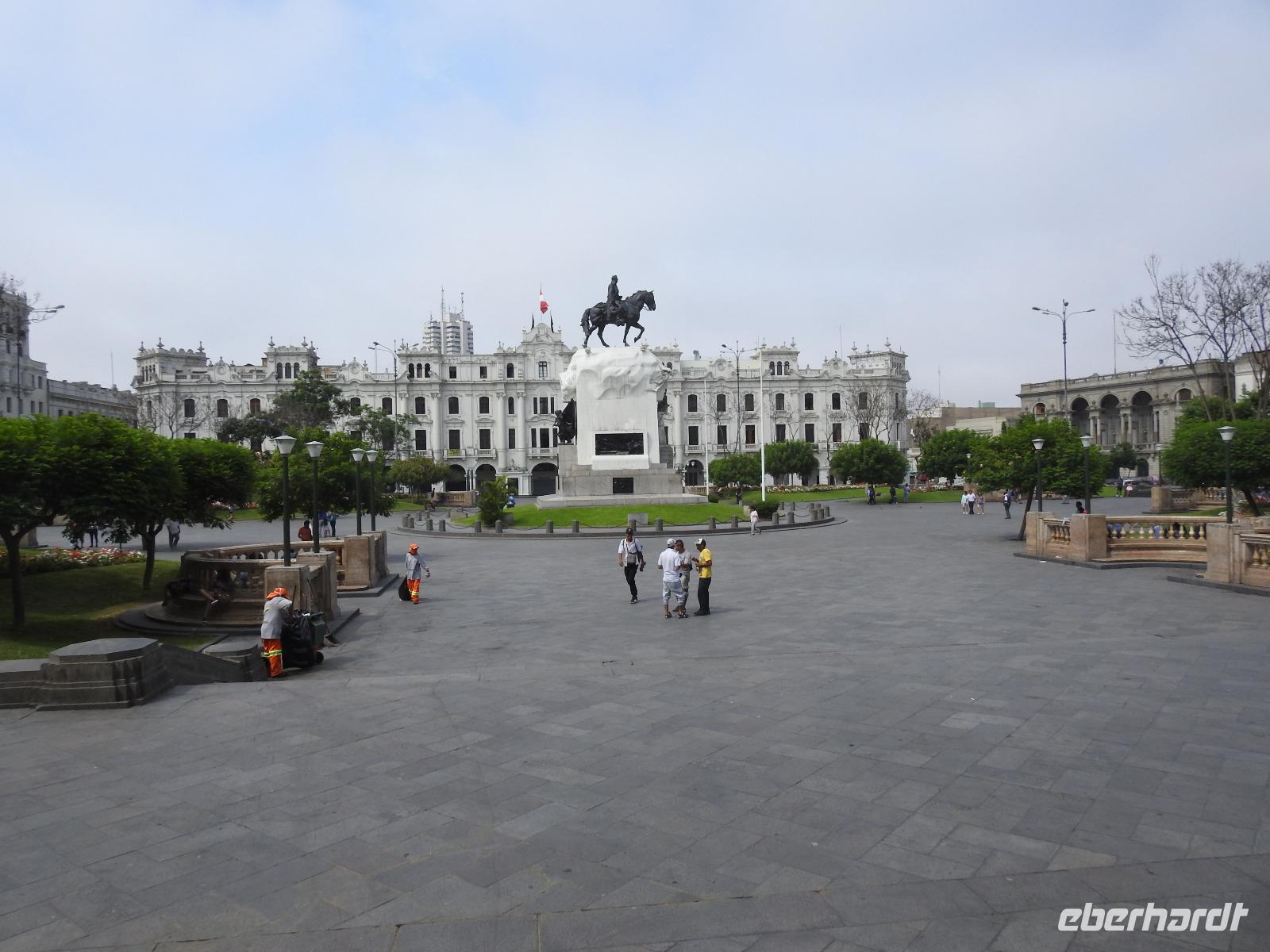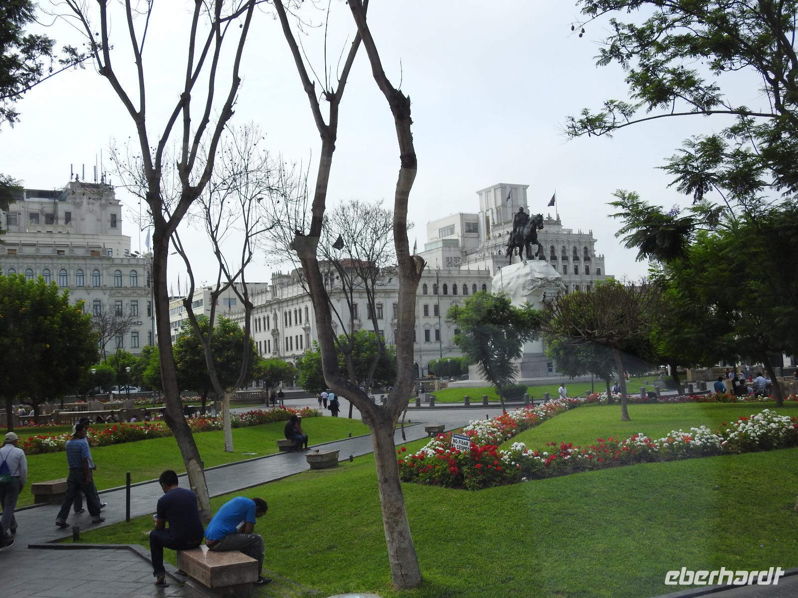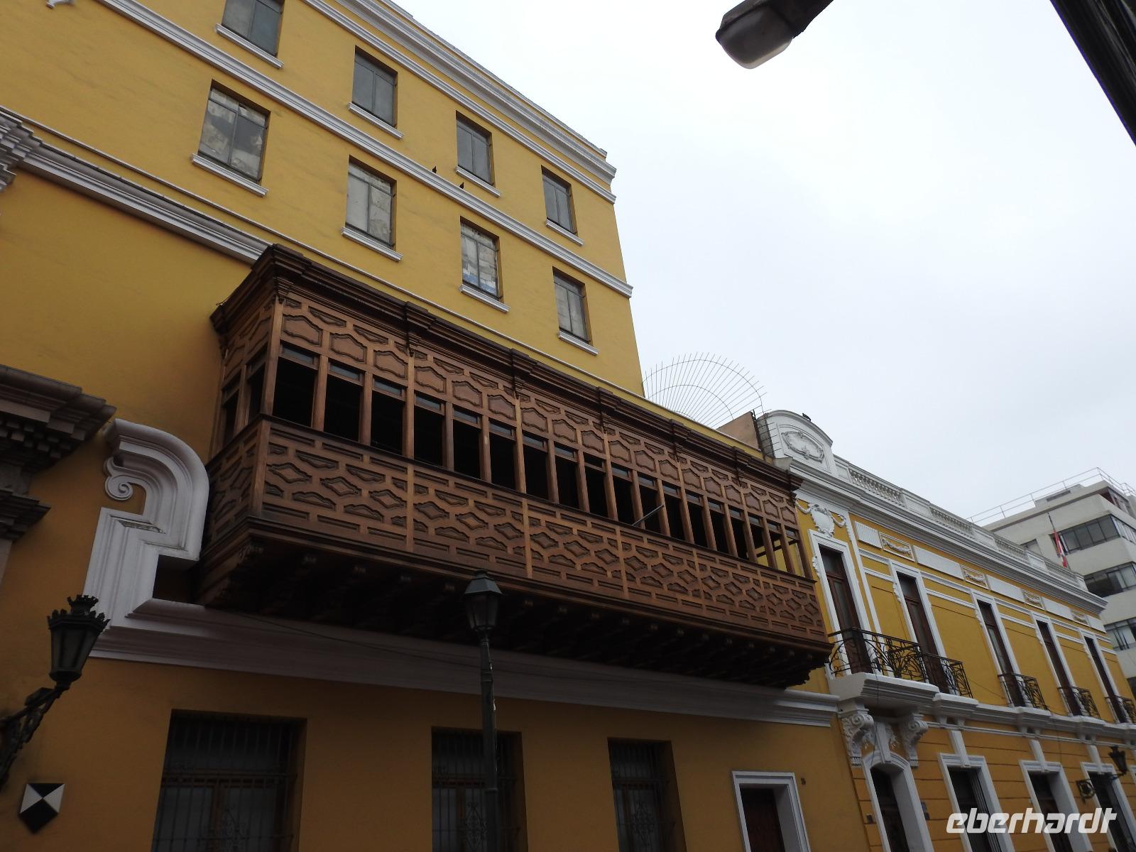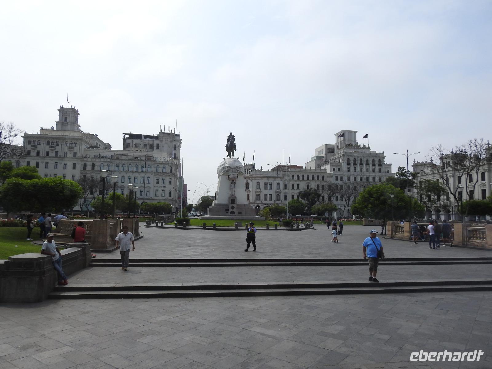 Frühstück gibt es ab 6.30 Uhr. Der Frühstücksraum befindet sich direkt gegenüber der Rezeption. Man gibt seine Zimmernummer an und kann sich am reichhaltigen Buffet bedienen. Auf den Tischen liegen kleine Speisekarten, von denen man sich zusätzlich etwas bestellen kann. So zum Beispiel Spiegelei, Omelett oder Joghurt mit Früchten. Aber auch so ist das Angebot üppig. Um neun starten wir unsere Rundfahrt durch Lima. Unser erstes Ziel ist die Huaca Pucllana - das einzige prähistorische Gebäude in Miraflores. Huaca bedeutet so viel wie Heiliger Ort, die Bezeichnung stammt aus der Inkasprache Quechua. Im Stadtgebiet von Lima befinden sich 54 Huacas, in ganz Peru noch viel mehr. Bis vor Kurzem war dieser Ort noch eine unbeachtete Müllhalde, erst in den letzten Jahren entdeckten die Peruaner, welchen Kulturschatz sie hier haben. Wir sehen die vielen aufgestapelten Lehmziegel, wie ein riesiges Bücherregal sieht das aus. Der Hintergrund dieser Bauweise war aber, das Gebäude erdbebensicher zu bauen. Weiter geht es für uns durch die Stadt bis zum Plaza San Martin. Dieser gilt als einer der schönsten Plätze der Stadt. In der Mitte erhebt sich, unübersehbar, eine Statue für den Mann, nach dem der Platz benannt wurde - José San Martin. Er trägt auch den Namen LIBERTADOR, was soviel wie BEFREIER heißt, denn er war einer der Anführer der Rebellion, die zur Unabhängigkeit von Peru, Chile und Argentinien von Spanien führte. Wir kommen nun zum Plaza Mayor oder auch Plaza de Armas, der wichtigsten Sehenswürdigkeit in Lima. Dieser Platz entstand 1535 und atmet förmlich die Geschichte der Stadt. Über die Jahrhunderte hinweg hatte der Platz vielfältige Funktionen, mal war hier ein Markt, mal eine Hinrichtungsstätte, ein Verkündungsort oder eine Stierkampfarena. Hier erklärte 1821 General José San Martin die Unabhängigkeit Perus. Bei unserer weiteren Besichtigung erfahren wir viel über die Geschichte von Peru, besichtigen schöne Bürgerhäuser mit Holzbalkonen und gelangen schließlich zu einem Markt. Hier erklärt uns Ursula die verschiedenen einheimischen Früchte und wir bekommen einiges zu kosten. Anschließend probieren wir die peruanische Spezialität Pan Con Chiccarron - ein Brötchen mit Schweinefleisch, Süßkartoffelchips und Zwiebeln. Dazu gibt es Lucuma-, Chirimoya- oder Mangosaft. Alles in allem äußerst lecker und sättigend. Zum Nachtisch sind noch Picarones geplant, aber die sind heute aus und Ursula besorgt uns andere süße Köstlichkeiten. Diese verspeisen wir dann im Hotel bei einer gemütlichen Kennenlernrunde. Vom Reiseveranstalter Eberhardt-TRAVEL gibt es dazu noch ein Pisco Sour als Begrüßungsgetränk und so mancher kann sich jetzt kaum noch bewegen. Der Rest des Tages steht zur freien Verfügung. So zum Beispiel spazieren einige Unermüdliche noch zum Park der Liebe, der sehr stark an den Park Güell in Barcelona erinnert, denn die Bänke und Wände haben hier das gleiche Design. Darüber hinaus hat man eine großartige Sicht auf den Pazifik, in dessen Wellen sich viele Surfer tummeln.