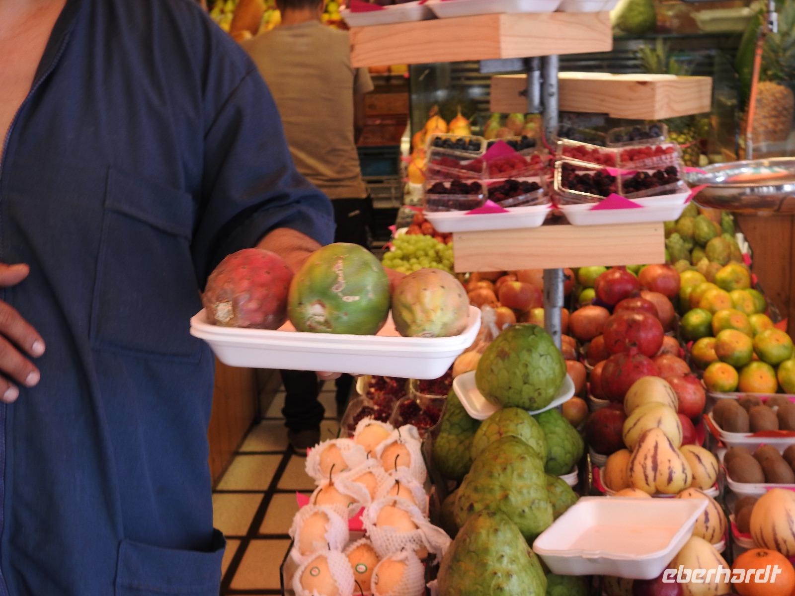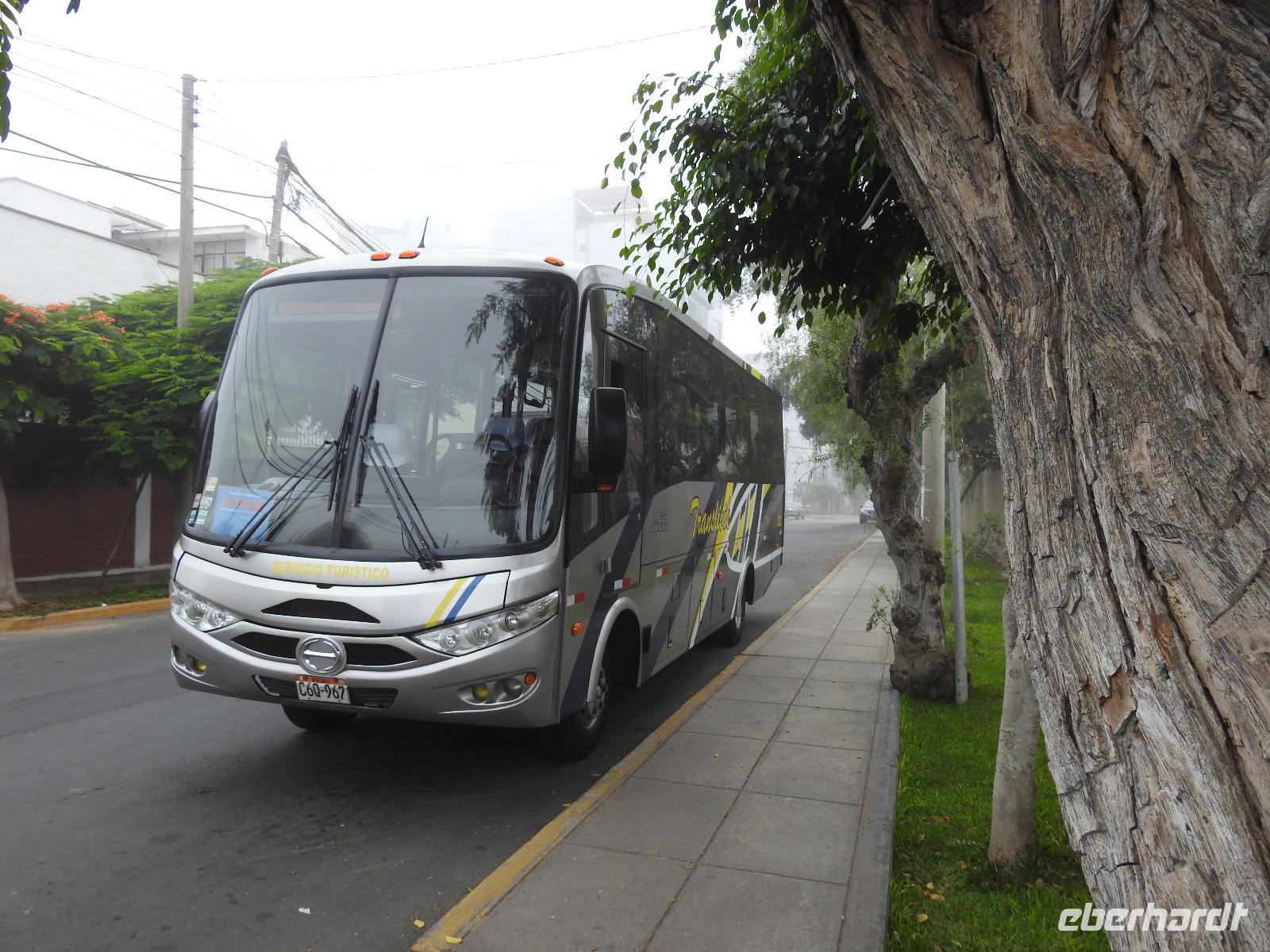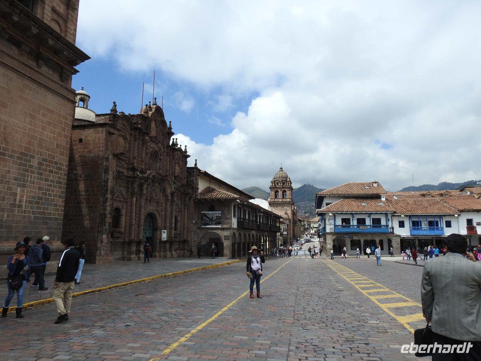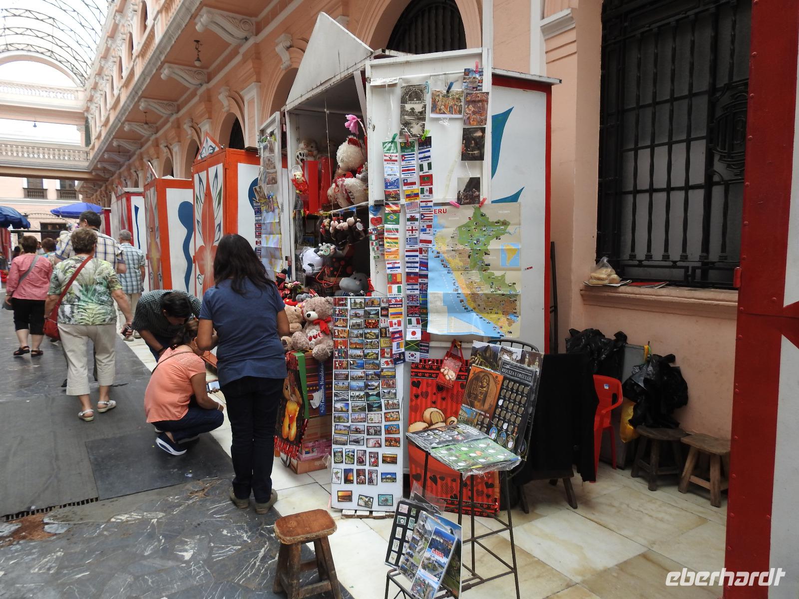 Frühstück gibt es ab 6.30 Uhr. Der Frühstücksraum befindet sich direkt gegenüber der Rezeption. Man gibt seine Zimmernummer an und kann sich am reichhaltigen Buffet bedienen. Auf den Tischen liegen kleine Speisekarten, von denen man sich zusätzlich etwas bestellen kann. So zum Beispiel Spiegelei, Omelett oder Joghurt mit Früchten. Aber auch so ist das Angebot üppig. Um neun starten wir unsere Rundfahrt durch Lima. Unser erstes Ziel ist die Huaca Pucllana - das einzige prähistorische Gebäude in Miraflores. Huaca bedeutet so viel wie Heiliger Ort, die Bezeichnung stammt aus der Inkasprache Quechua. Im Stadtgebiet von Lima befinden sich 54 Huacas, in ganz Peru noch viel mehr. Bis vor Kurzem war dieser Ort noch eine unbeachtete Müllhalde, erst in den letzten Jahren entdeckten die Peruaner, welchen Kulturschatz sie hier haben. Wir sehen die vielen aufgestapelten Lehmziegel, wie ein riesiges Bücherregal sieht das aus. Der Hintergrund dieser Bauweise war aber, das Gebäude erdbebensicher zu bauen. Weiter geht es für uns durch die Stadt bis zum Plaza San Martin. Dieser gilt als einer der schönsten Plätze der Stadt. In der Mitte erhebt sich, unübersehbar, eine Statue für den Mann, nach dem der Platz benannt wurde - José San Martin. Er trägt auch den Namen LIBERTADOR, was soviel wie BEFREIER heißt, denn er war einer der Anführer der Rebellion, die zur Unabhängigkeit von Peru, Chile und Argentinien von Spanien führte. Wir kommen nun zum Plaza Mayor oder auch Plaza de Armas, der wichtigsten Sehenswürdigkeit in Lima. Dieser Platz entstand 1535 und atmet förmlich die Geschichte der Stadt. Über die Jahrhunderte hinweg hatte der Platz vielfältige Funktionen, mal war hier ein Markt, mal eine Hinrichtungsstätte, ein Verkündungsort oder eine Stierkampfarena. Hier erklärte 1821 General José San Martin die Unabhängigkeit Perus. Bei unserer weiteren Besichtigung erfahren wir viel über die Geschichte von Peru, besichtigen schöne Bürgerhäuser mit Holzbalkonen und gelangen schließlich zu einem Markt. Hier erklärt uns Ursula die verschiedenen einheimischen Früchte und wir bekommen einiges zu kosten. Anschließend probieren wir die peruanische Spezialität Pan Con Chiccarron - ein Brötchen mit Schweinefleisch, Süßkartoffelchips und Zwiebeln. Dazu gibt es Lucuma-, Chirimoya- oder Mangosaft. Alles in allem äußerst lecker und sättigend. Zum Nachtisch sind noch Picarones geplant, aber die sind heute aus und Ursula besorgt uns andere süße Köstlichkeiten. Diese verspeisen wir dann im Hotel bei einer gemütlichen Kennenlernrunde. Vom Reiseveranstalter Eberhardt-TRAVEL gibt es dazu noch ein Pisco Sour als Begrüßungsgetränk und so mancher kann sich jetzt kaum noch bewegen. Der Rest des Tages steht zur freien Verfügung. So zum Beispiel spazieren einige Unermüdliche noch zum Park der Liebe, der sehr stark an den Park Güell in Barcelona erinnert, denn die Bänke und Wände haben hier das gleiche Design. Darüber hinaus hat man eine großartige Sicht auf den Pazifik, in dessen Wellen sich viele Surfer tummeln.