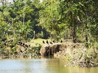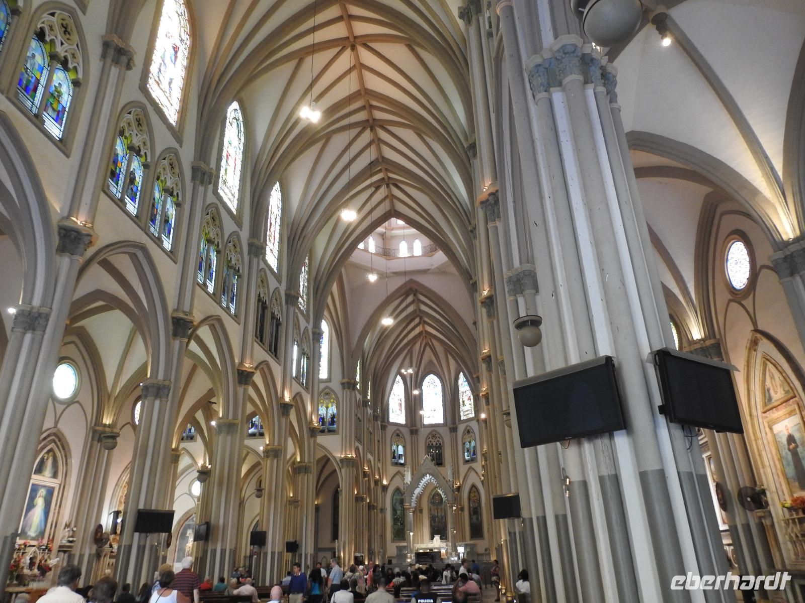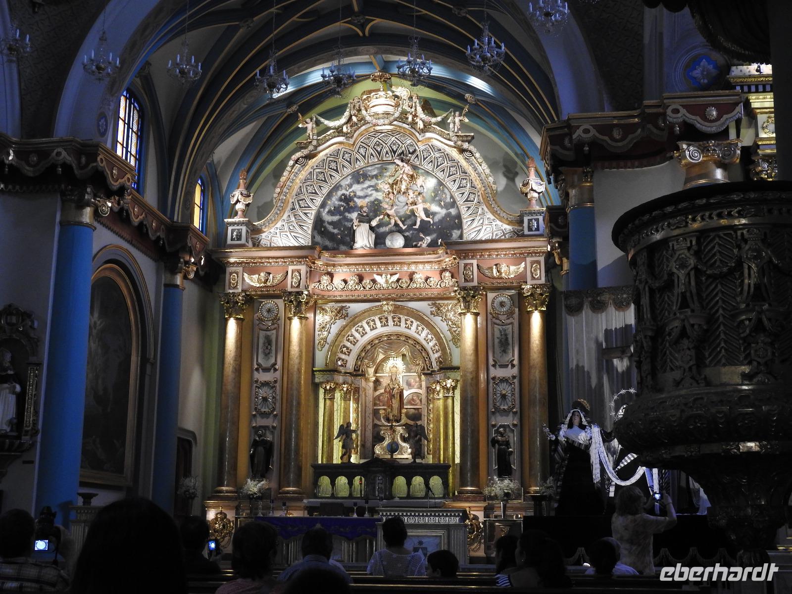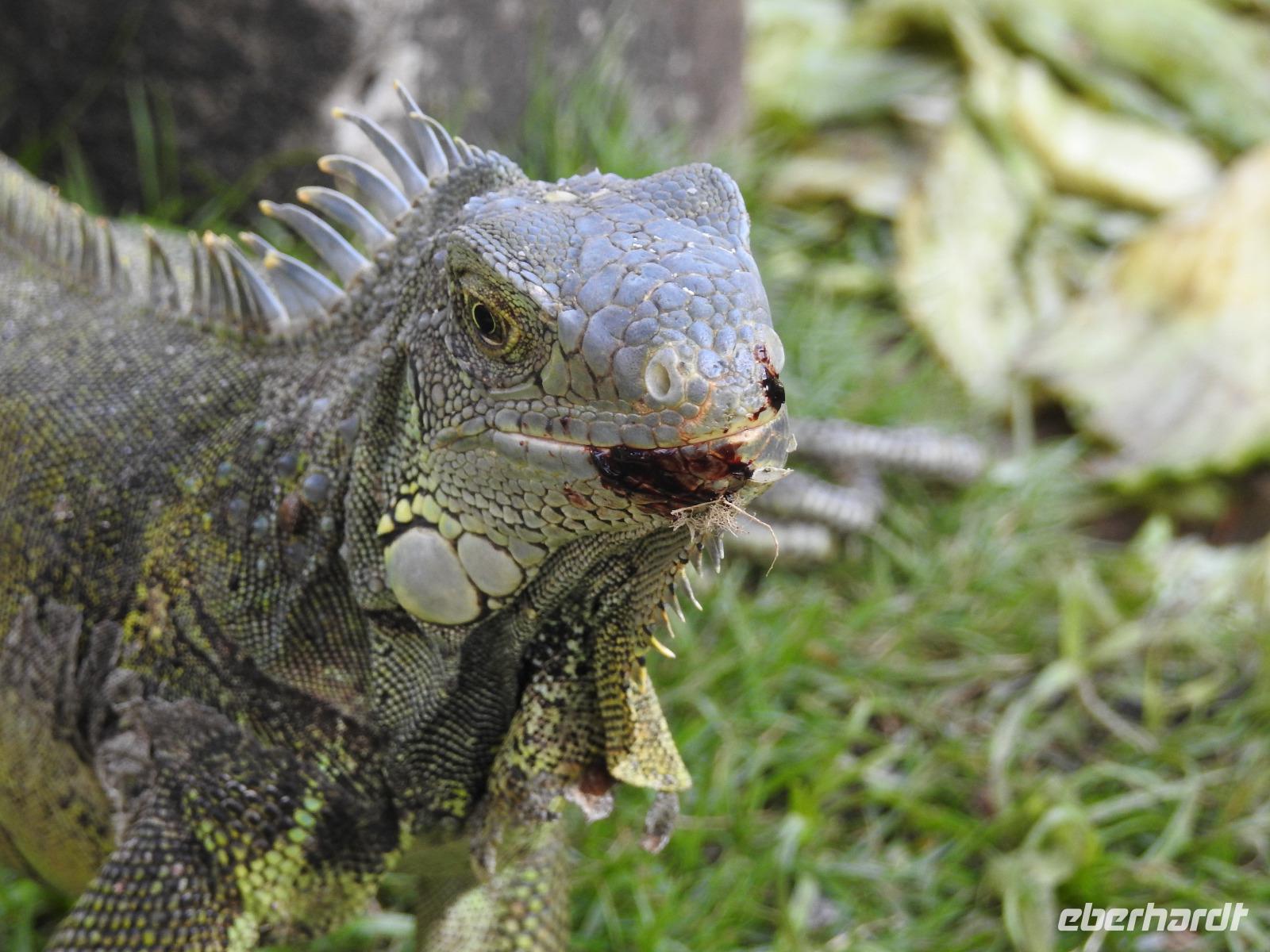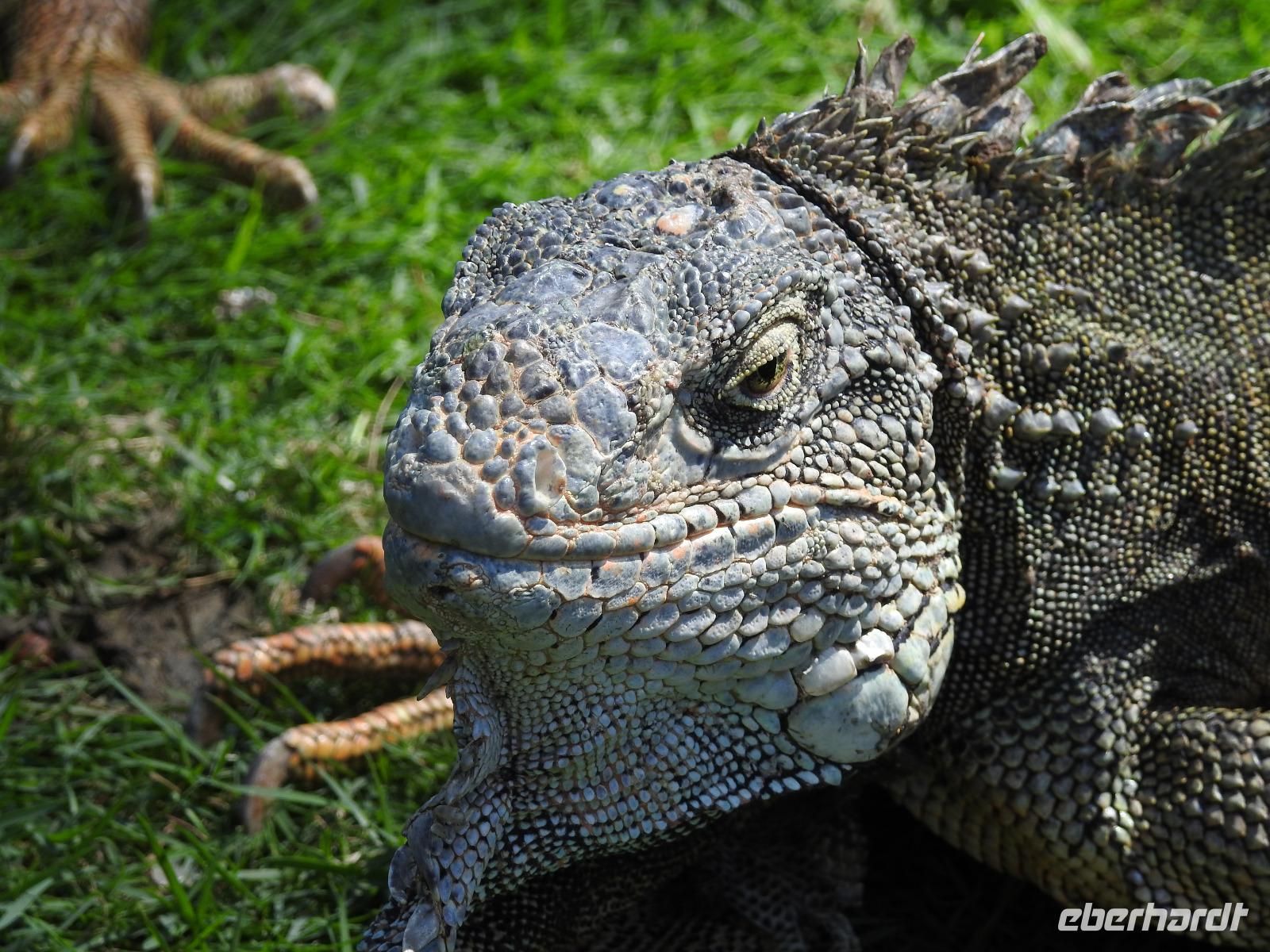 Unser Ausflug führt uns zunächst in einen Stadtpark, in dem sich 350 Leguane tummeln. Sie aalen sich in der Sonne und kümmern sich nicht um die aufgeregten Touristen, von denen jeder versucht, das schönste Foto zu erhaschen. Zum Abkühlen ziehen wir uns in die Kathedrale Metropolitana de Guayaquil zurück, in der heute eine Taufe stattfindet. Viele Kleinkinder sind in weiße Kleidchen gehüllt und ihren Eltern ist der Stolz anzusehen. Wir besuchen das Geschichtsmuseum, in dem das Interessanteste das kostenlose und schnelle W-LAN ist. Anschließend spazieren wir um das Rathaus herum an der Straße Calle 10 de Agosto und kommen zum Uhrenturm Reloj de la Torre Morsica. Die Uferpromenade Malecon 2000 ist modern gestaltet. Mehrere Aussichtstürme können bestiegen werden und von oben hat man einen schönen Blick auf den Fluss. In einer Rotunde steht das Denkmal für Simon Bolivar und Jose de San Martin. Wir fahren ein Stück mit dem Bus bis zum historischen Altstadtviertel Barrio Las Penas. Von hier aus ist die längste Brücke Ecuadors zu sehen, die Brücke der Nationalen Einheit. Zum Ende des Ausflugs fährt unser Guide Jorge mit uns einmal um die ganze Stadt herum. So bekommen wir einen Eindruck von der wirtschaftlichen Teilung Guayaquils. Auf der einen Seite gibt es abgegrenzte Stadtviertel mit noblen Villen, in die man nur mit spezieller Erlaubnis kommt und auf der anderen Seite und viel größer sind die vielen Elendsviertel zu sehen, wobei hier das glücklichere Leben zu sein scheint.