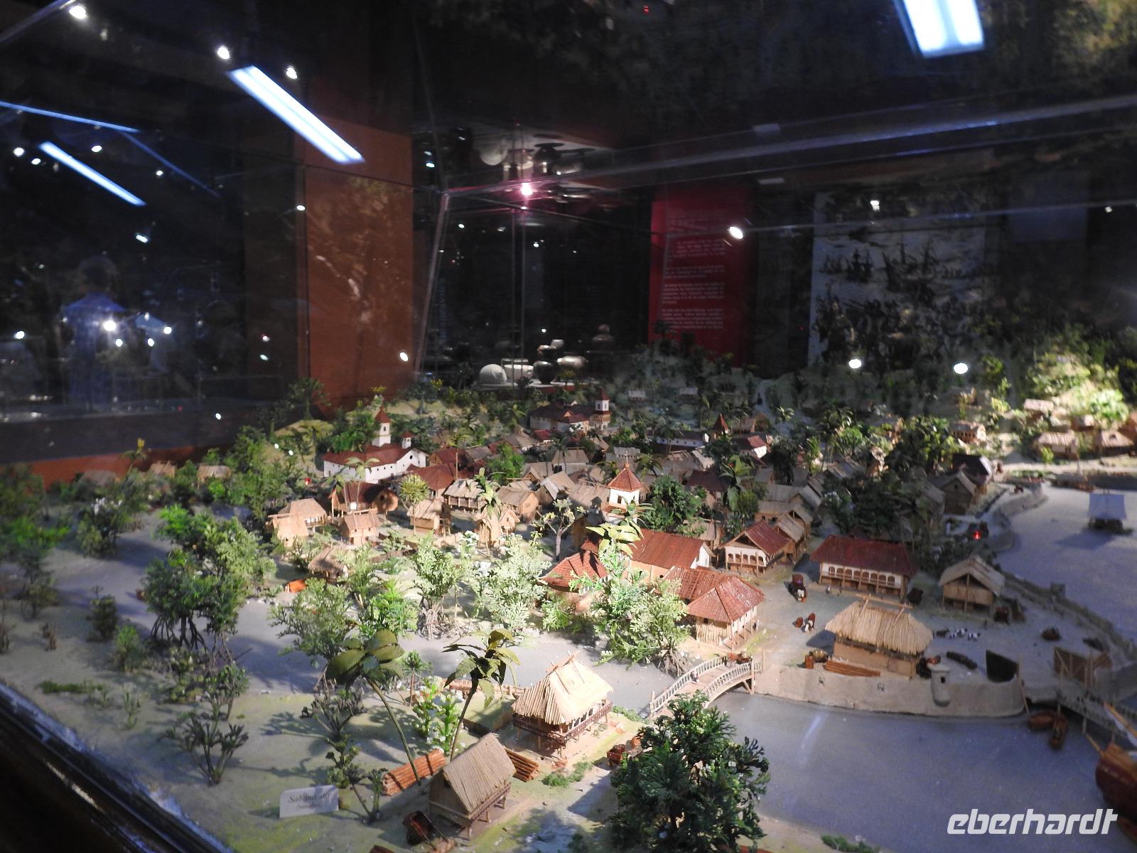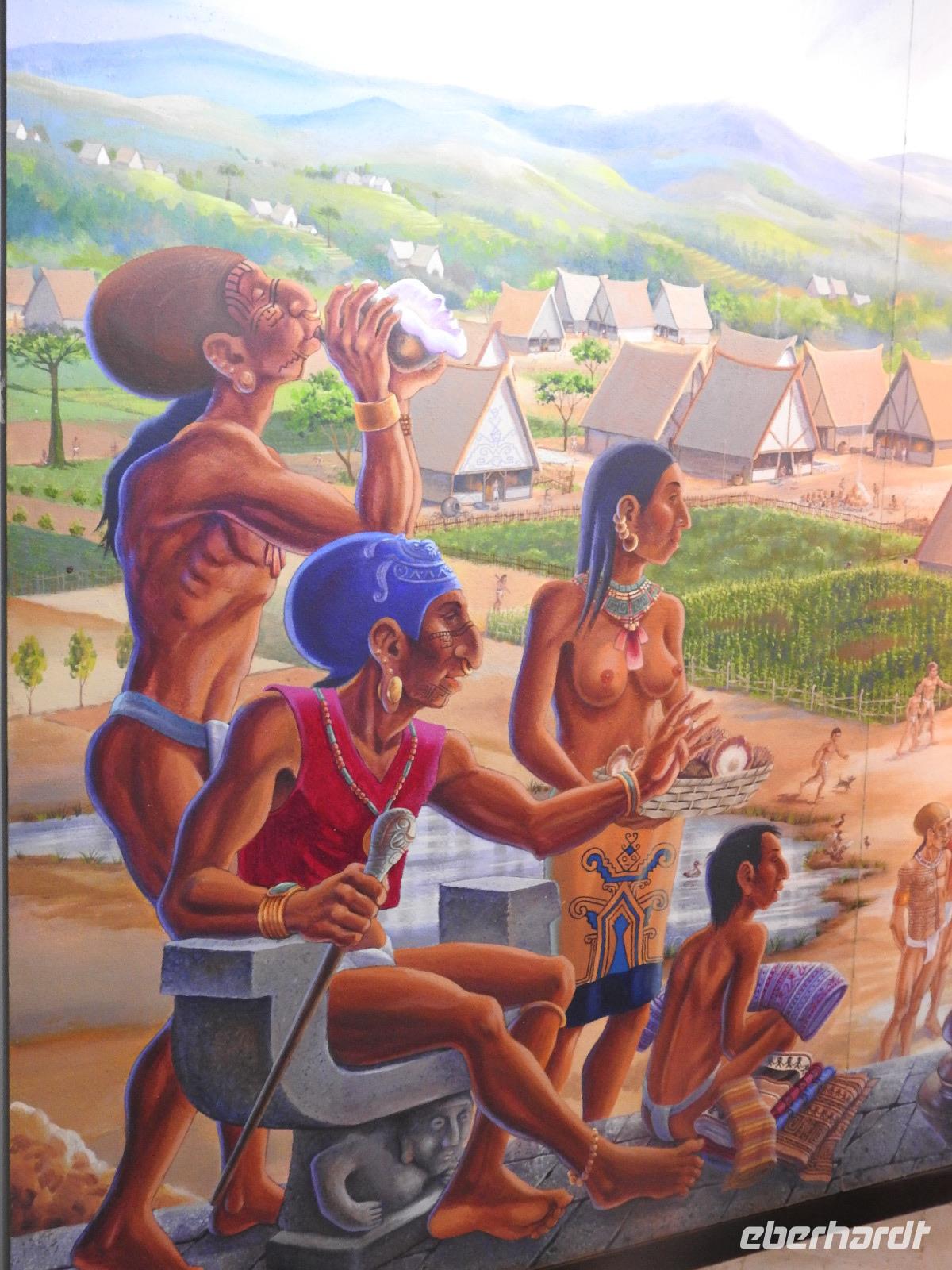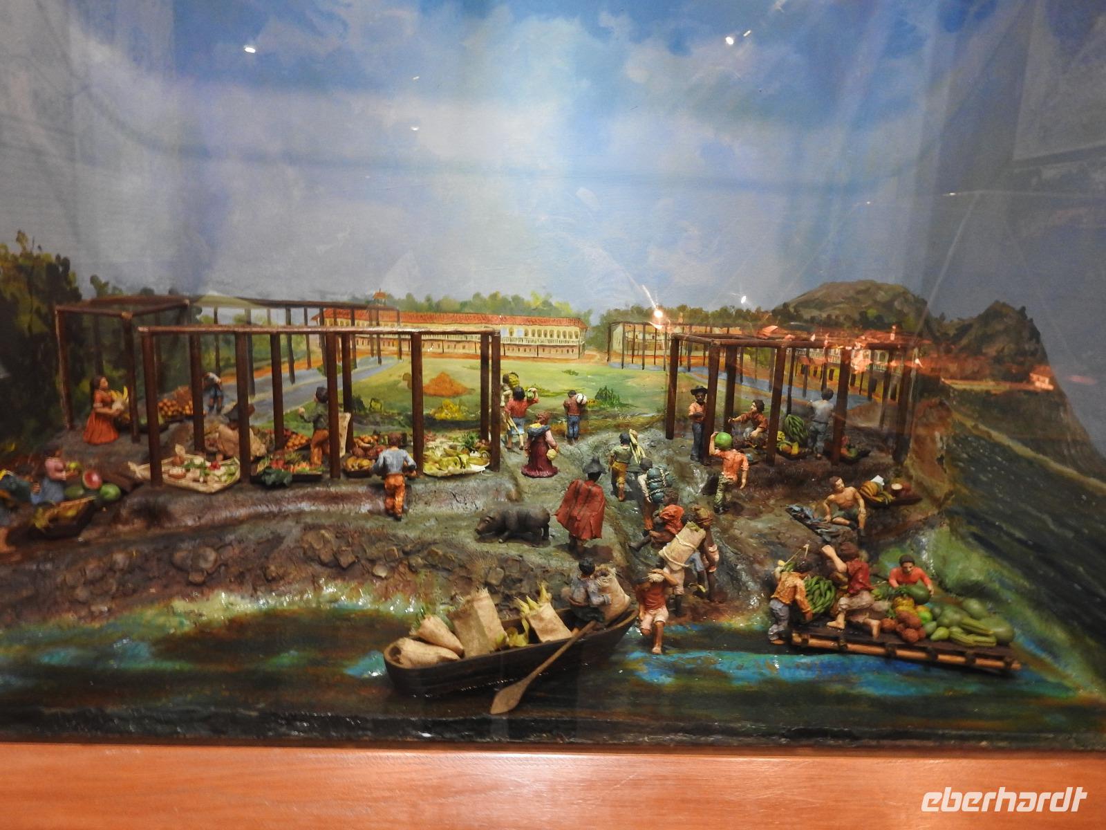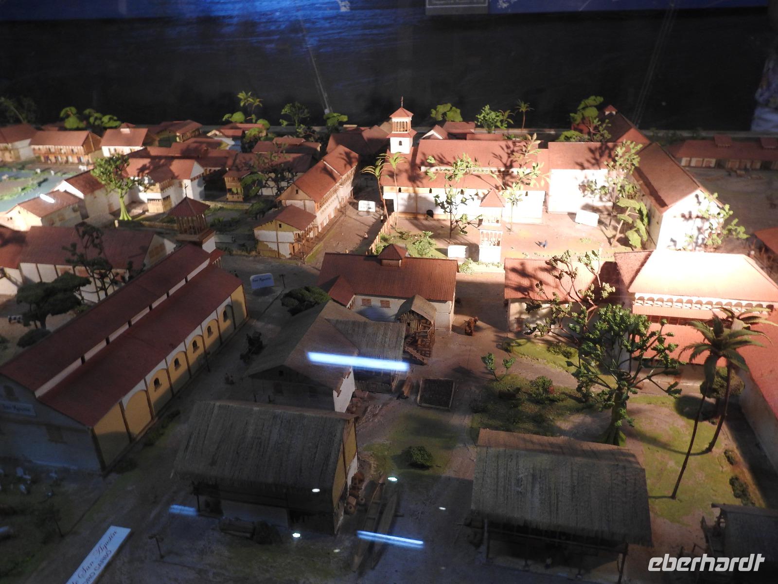 Unseren nächsten Stopp legen wir in La Pila ein. Scheinbar ist das hier ein Zentrum der Tonverarbeitung. So richtig klar wird es eigentlich nicht, warum wir hier halten. Es gibt ein kleines, ganz ganz kleines Museum, eher eine Minigarage, in der Tonfiguren ausgestellt sind. Diese kann man auch käuflich erwerben, aber es sind alles Nachbildungen, auch die im Museum ausgestellten Teile. Seltsam. Ich kaufe zwei Stoffpüppchen im regionalen Kostümchen für meine Enkeltöchter und erfreue damit einen der Händler. Nun besuchen wir eine Elfenbein-Nuss-Fabrik. Die Elfenbein-Nuss ist der Samen einer Palmenart, der so hart wie Stein wird und die Farbe von Elfenbein hat. Früher wurden daraus Knöpfe hergestellt und in alle Welt exportiert. Heute werden Souvenirs für Touristen daraus gemacht.