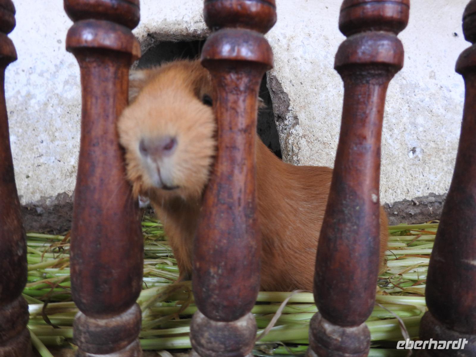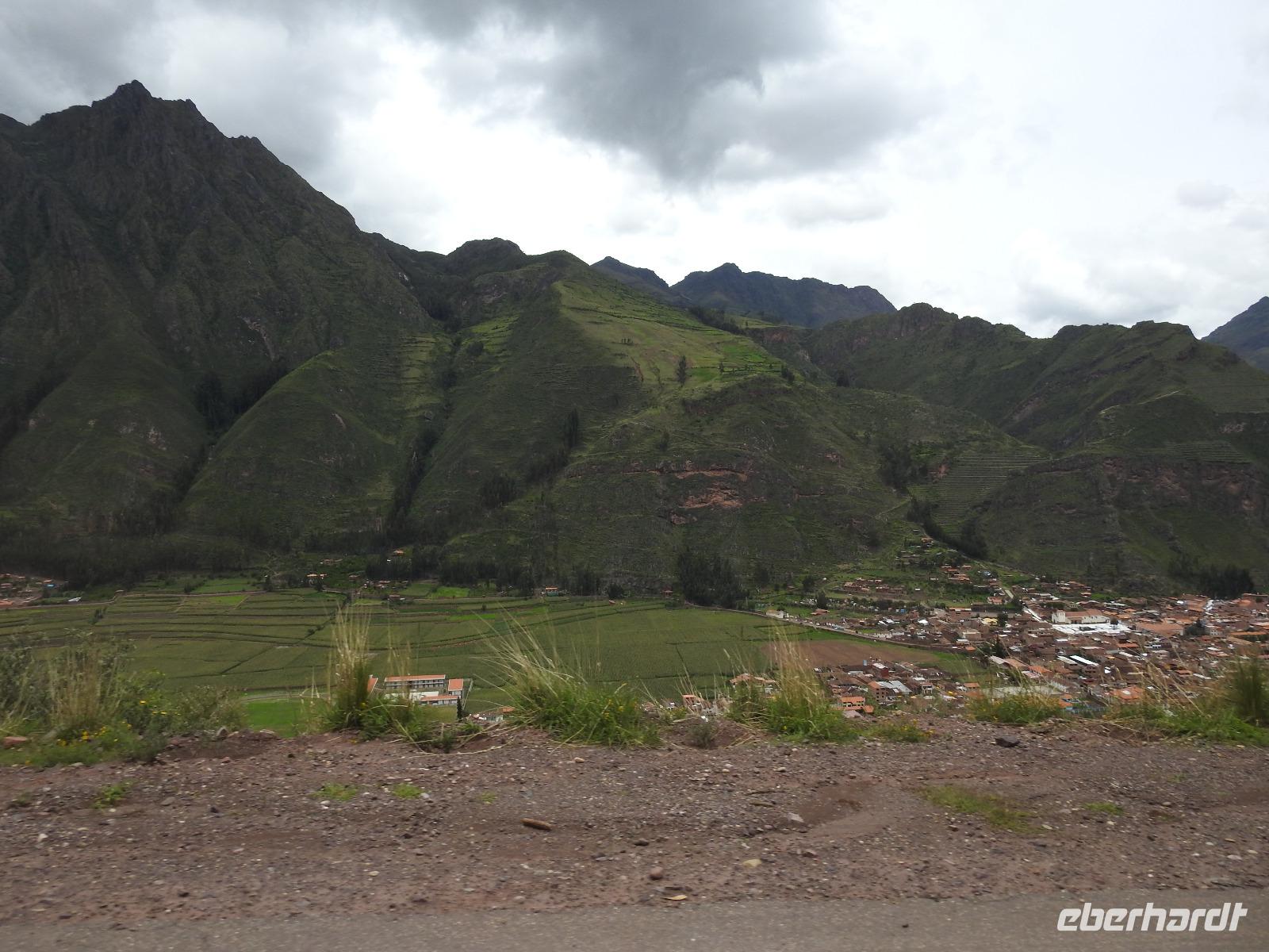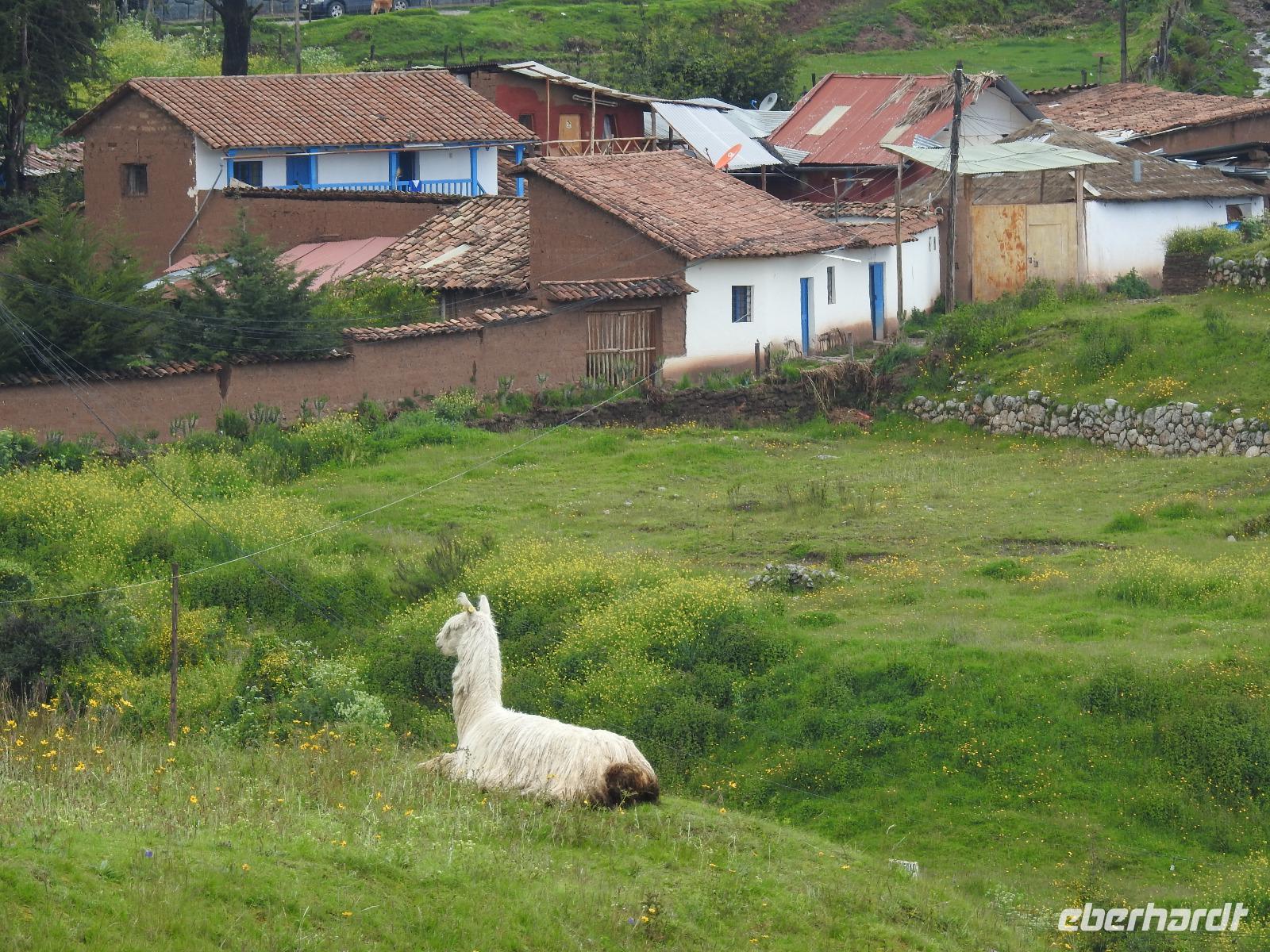 Bereits um 4.15 Uhr meldet sich der Weckdienst, ab Fünf Uhr gibt es Frühstück und 5.40 Uhr geht es los. Wir fahren zum Flughafen in Lima, verabschieden uns vorübergehend von Ursula und fliegen nach Cusco. Der Flug ist kürzer als die Wartezeit, wir sind nur eine Stunde unterwegs, allerdings rutscht mir kurzzeitig das Herz in die Hosen, als wir eigentlich schon landen und der Kapitän nochmal durchstartet. Die Stewardess sagt zwar, es war aus Sicherheitsgründen und alles normal, aber das würden die wohl immer sagen. Nun ja, nichts ist passiert, wir sind glücklich gelandet, Koffer sind alle angekommen und unsere neue Reiseleiterin Yovanna ist auch da. Ein bisschen blümerant ist mir wohl und ich höre, Euch geht es nicht besser. Das ist die Höhe, schließlich sind wir plötzlich 3400 Meter hoch. Die Hände zittern, das Herz flattert und mancher fühlt sich etwas benommen. Das legt sich ja wohl hoffentlich noch. Wir fahren jetzt ins Heilige Tal und Yovanna berichtet uns von dem Leben hier. In Pisaq besuchen wir einen Bäcker und versorgen uns mit leckeren Empanadas (4 SOL das Stück), kleine mit Käse oder Fleisch gefüllte Teigtaschen. Anschließend erklärt uns Yovanna den Unterschied zwischen Baby-Alpaca- und Royal-Alpaca-Wolle. Wir spazieren über den Markt, den wir fast für uns allein haben und erstehen bereits das eine oder andere Souvenir. Weiter geht es durch das Heilige Tal bis zur Brauerei Cerveceria del Valle Sagrado, eine kleine regionale Brauerei, die von jungen Männern mit viel Enthusiasmus und großem ökologischem Ansatz geführt wird. Wir erhalten einen Überblick, wie hier das Bier gebraut wird und können dann mehrere Sorten kosten. Was schmeckt wohl besser: Bier mit exotischen Früchten oder mit Zartbitter-Schokolade-Kaffee-Geschmack? Zum Schluss darf sich jeder noch ein Glas Bier mit der Sorte bestellen, die ihm am besten geschmeckt hat und wir sitzen gemütlich beisammen. Aus irgendeinem Grund ist die Bestellung unseres Imbisses nicht bis zur Brauerei durchgedrungen und so kehren wir anschließend noch in einem Restaurant ein und bekommen die Möglichkeit, die peruanische Spezialität MEERSCHWEINCHEN und Alpaca am Spieß zu kosten. Jetzt ist es Zeit, ins Hotel zu fahren. Wir schlafen heute in einem ehemaligen Kloster, einer wunderschönen Anlage, die wir aber morgen früh beizeiten wieder verlassen werden.