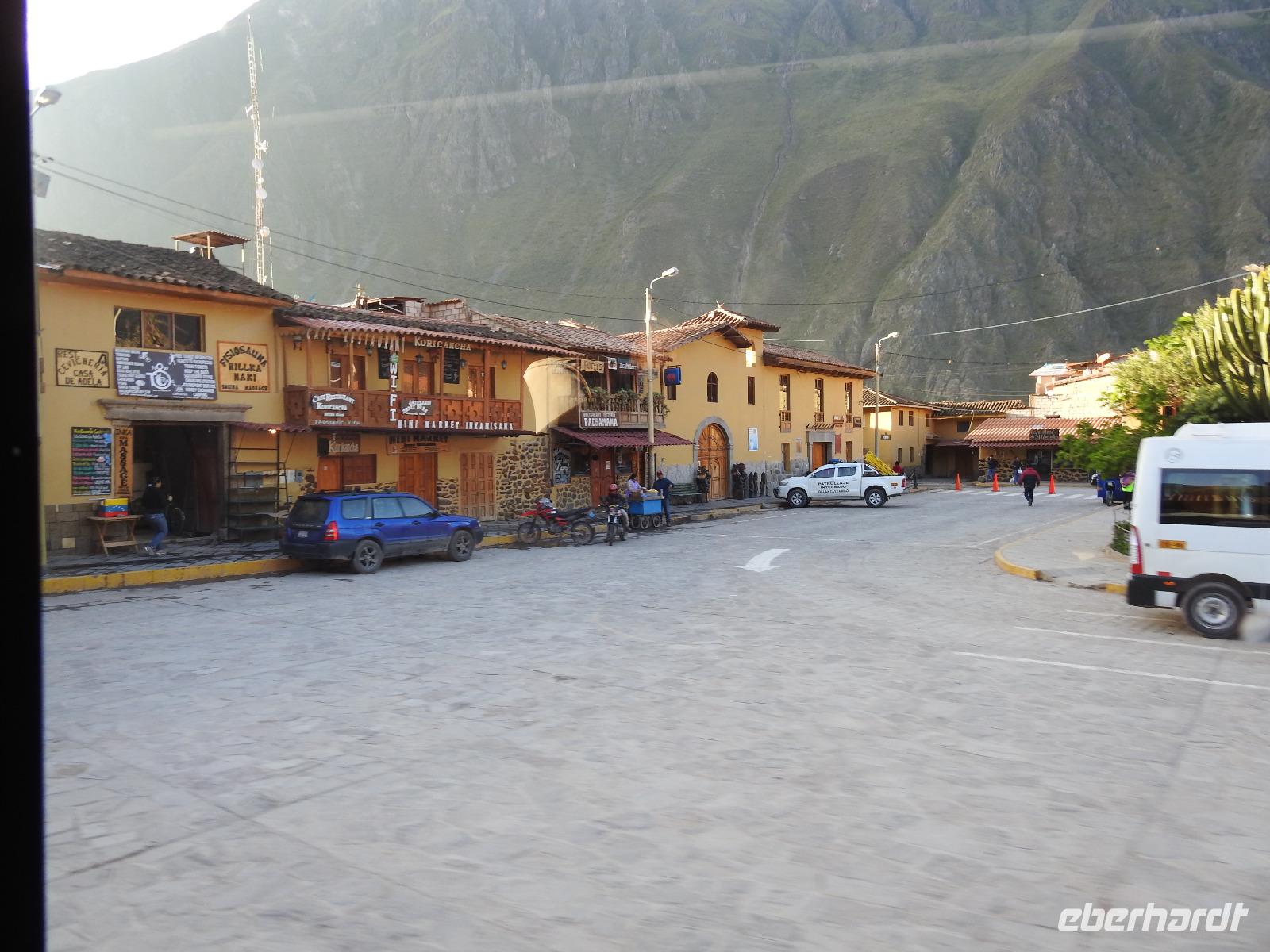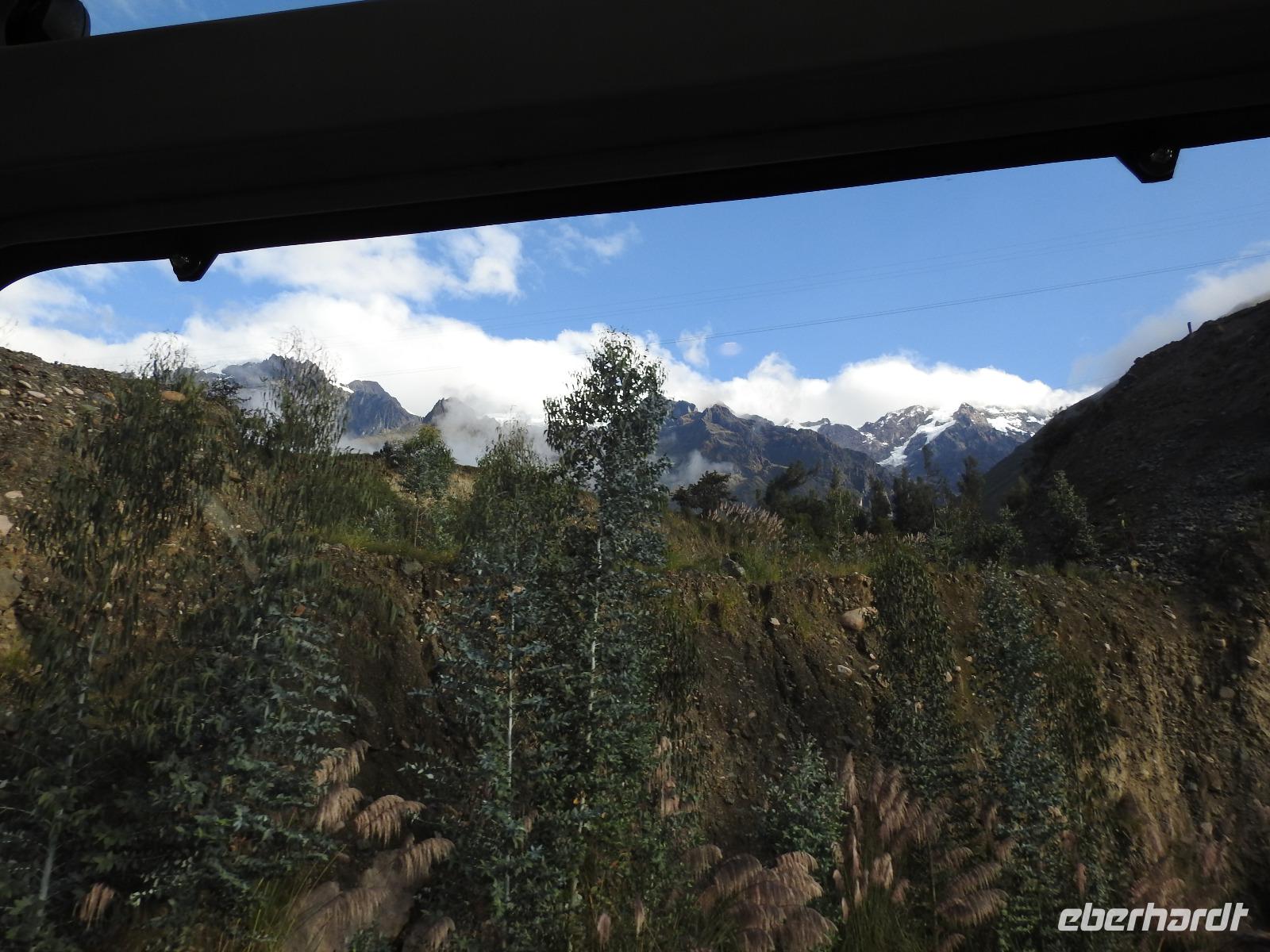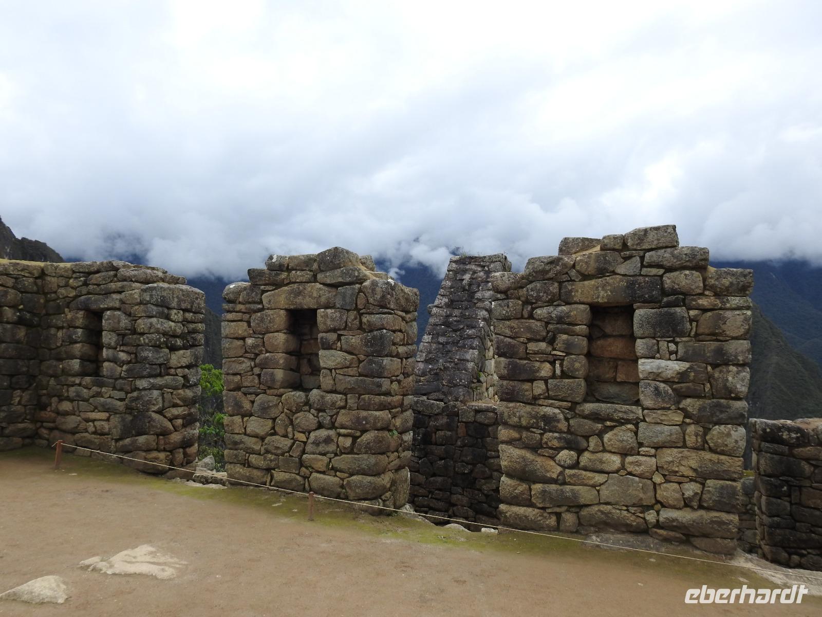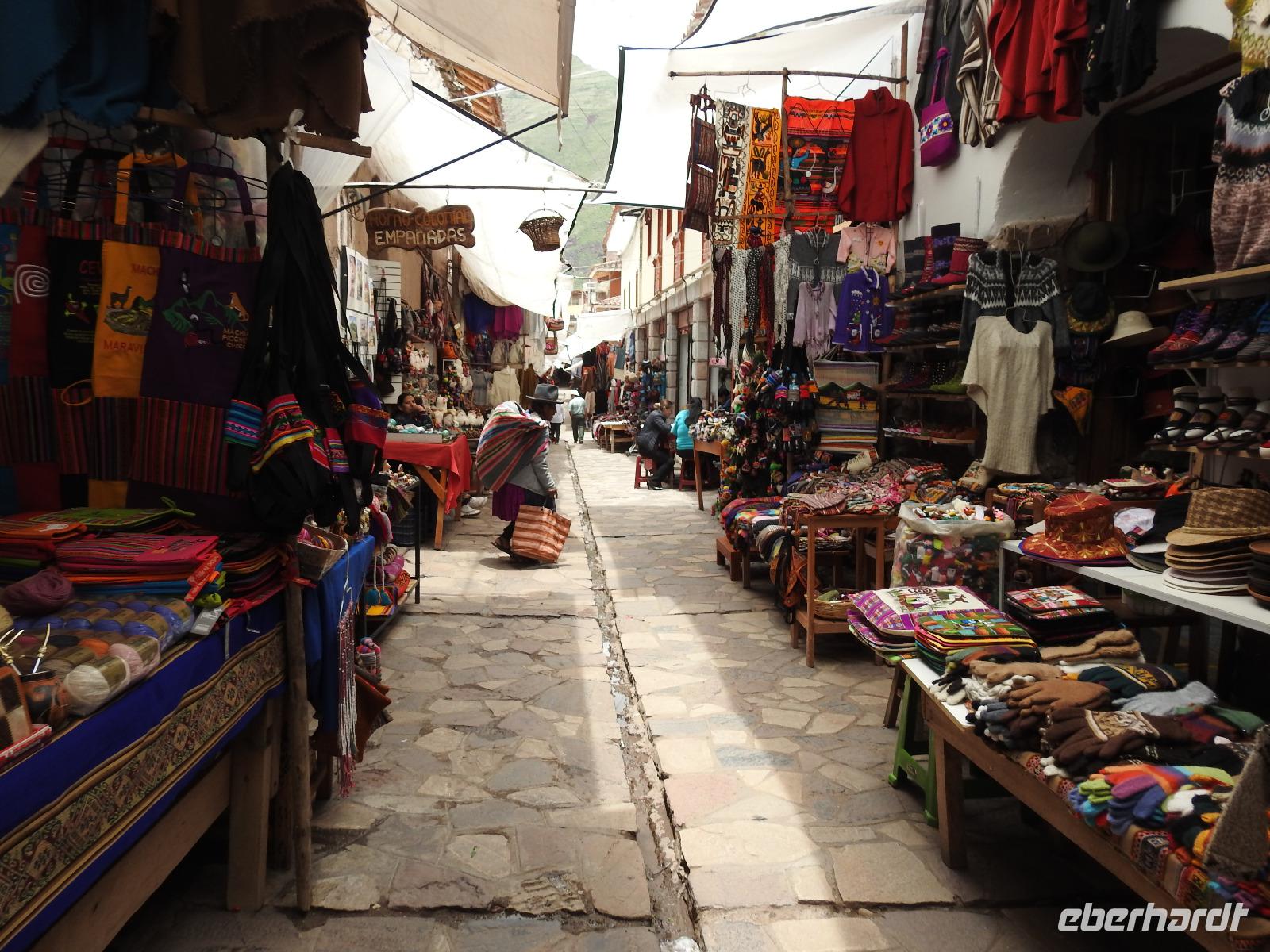 Wieder geht es zeitig los. Bereits ab 4.30 Uhr heißt es - frühstücken. Unser Gepäck wird von fleißigen Helfern des Hotels von den Zimmern abgeholt und in die Lobby gebracht. Anschließend wird es in einem Gepäckraum des Hotels verstaut. Wir fahren mit mehr oder weniger leichtem Gepäck zum Bahnhof. Immerhin müssen Sonnencreme, Insektenschutz, Regenschutz, Wasser und Fotoausrüstung mindestens dabei sein. Und den Pass dürfen wir heute nicht vergessen, egal, was wir tun, es wird immer der Pass kontrolliert. Mit dem Bus fahren wir nach Ollantaytambo, wo wir in den Zug der Peru Rail umsteigen. Der Weg zum Bahnhof führt an bunten Marktständen vorbei, aber uns bleibt keine Zeit zum Schlendern. Allein der Händler mit den Wanderstöcken kommt mit uns ins Geschäft. Im Zug beziehen wir unser Abteil 1. Klasse, das mit großen Fenstern und mit Panoramafenstern ausgestattet ist. Unterwegs gibt es einen Imbiss, bestehend aus Kaffee oder Mangosaft und einem Stück Kuchen. Der Zug fährt durch das heilige Urubamba Tal mit seiner spektakulären Landschaft. Gegen halb neun kommen wir in Aguas Calientes (Dorf Machu Picchu) an. Wieder müssen wir uns durch endlos erscheinende Markstände schlängeln, bis wir zum Busbahnhof kommen. Von hier aus geht es vierhundert Meter weiter in die Höhe auf einer Serpentinenstraße entlang. Wir sind nicht allein. Außer uns wollen noch weitere gefühlte tausend Touristen nach Machu Pichu. Yovanna berichtet uns, dass täglich nur 4000 Besucher zugelassen werden. 2000 morgens und 2000 nachmittags. Trotzdem entspannt sich die Lage in Machu Picchu deutlich. Die Anlage ist so groß, dass genug Platz für alle ist.