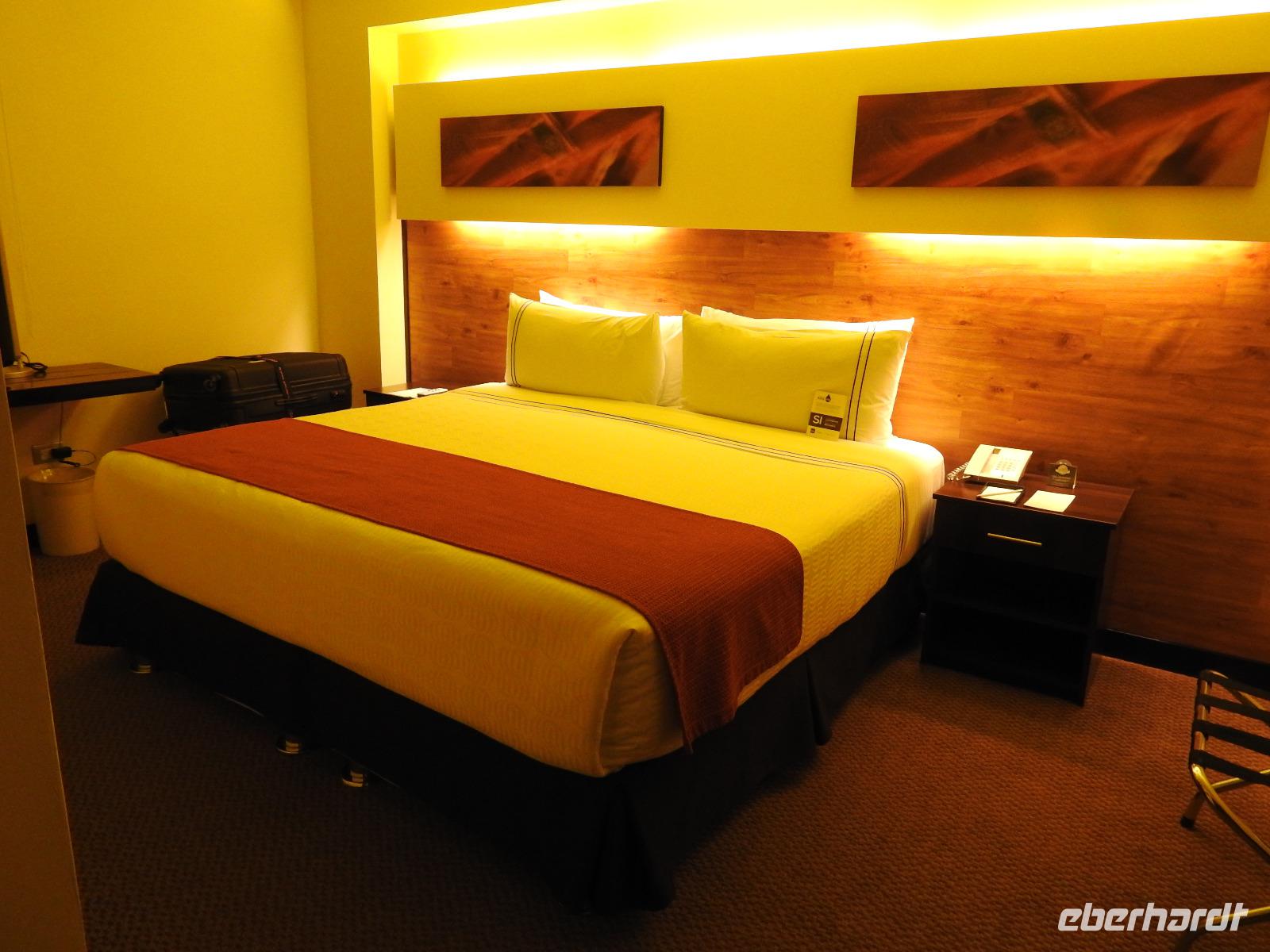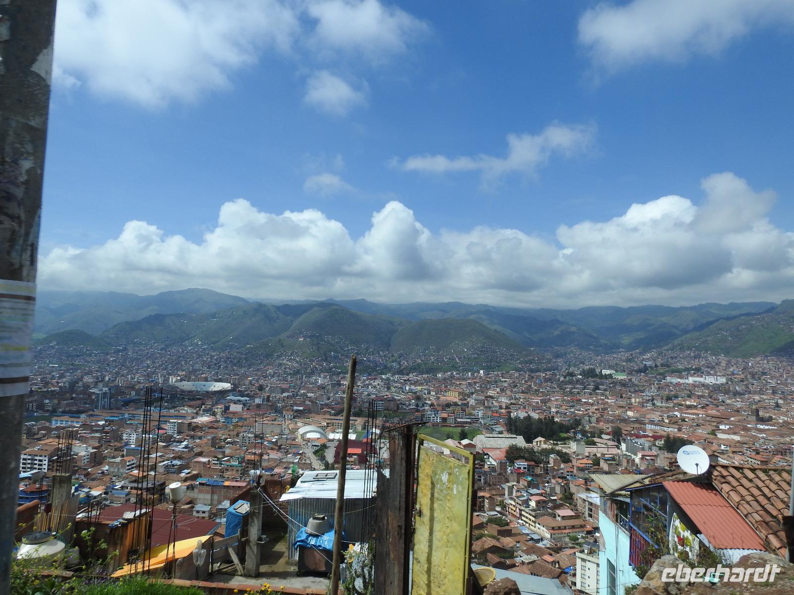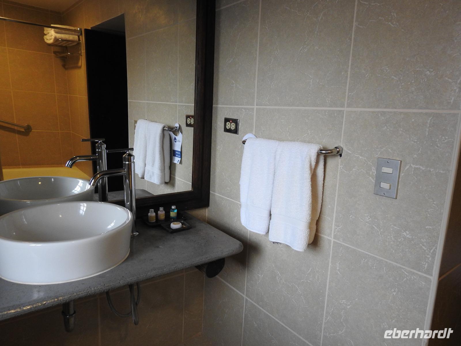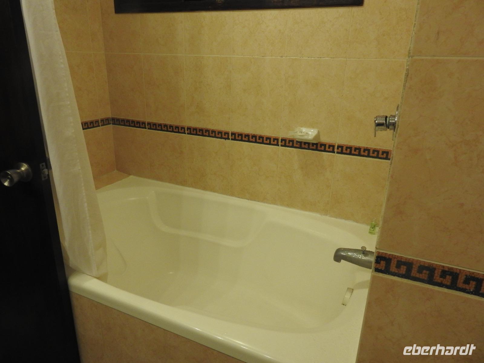 Es ist 4.30 Uhr als ich ausgeschlafen habe. Also kann ich in Ruhe duschen, einen Kaffee trinken und meine Sachen sortieren. Zu Letzterem war ich gestern Abend bzw. Nacht nicht mehr in der Lage. Das frühe Aufstehen (um 2.00 Uhr) und der lange Flug von Amsterdam forderten ihren Tribut. Ich bin todmüde ins Bett gefallen, nicht mal das Zimmer habe ich fotografiert, was ich sonst immer mache. Nun, was ist zu dem Zimmer zu sagen? Es ist ein schickes Doppelzimmer im 4-Sterne-Stil. Es gibt einen Schrank, einen Schreibtisch, einen (für heutige Verhältnisse eher kleinen) Flachbildfernseher und eine Minibar. Die Klimaanlage ist mit einer Fernbedienung ausgerüstet, so dass man vom Bett aus entscheiden kann, ob es einem zu warm ist oder zu kalt. Kaffee und Tee stehen kostenlos zur Verfügung, Wasserkocher und Kaffeebecher sind vorhanden. Im Bad stehen zwei Wasserflaschen, eine kostet 8 SOL, was in etwa 2,30 € sind. Apropos Bad, auch hier ist alles in Ordnung. Die Wände sind hell gefliest, Handtücher wie immer - Vorlagetuch für die Wanne, kleine Handtücher und große Badetücher. Der Föhn ist ausnahmsweise auch mal modern und nicht so eine kleine Funzel wie in manch anderem Hotel. Es gibt nach Zitrone duftendes Shampoo, Bodymilch und Seife. Also, alles gut für den Beginn einer abenteuerlichen Reise.