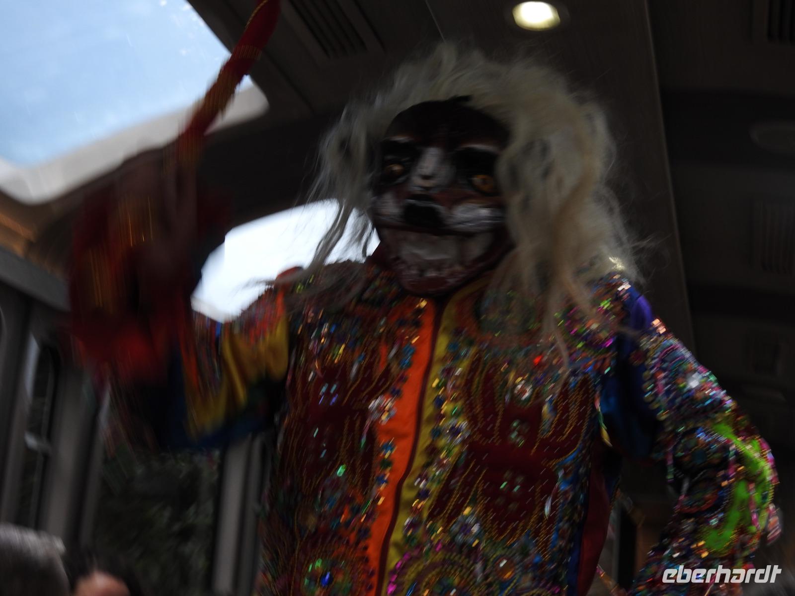 Mit Yovanna spazieren wir fast zwei Stunden durch die weitläufige Anlage und lauschen ihren Erzählungen über die Geschichte der geheimnisvollen Stadt. Nicht alle von uns sind gut zu Fuß und deshalb gilt hier noch einmal mein Dank an alle Gäste, die geduldig warteten und immer mit helfender Hand zur Stelle waren. Am Ende landen wir erschöpft aber glücklich im Restaurant am Ausgang von Machu Picchu. Hier können wir uns vom reichhaltigen Buffet bedienen. Anschließend fahren wir in kleinen Grüppchen zurück ins Dorf zum großen Markt und warten auf den Zug zurück nach Ollantayambo. Auf der Rückfahrt gibt es ein Baguette und Unterhaltung vom Zugpersonal. Es wird getanzt und bei einer Modenschau werden Kleidungsstücke aus Alpaca-Wolle vorgeführt, die anschließend natürlich käuflich erworben werden können. Aber so vergeht die Zeit im Nu. Unser Gepäck wurde bereits im Hotel abgeholt und wir fahren mit dem Bus zurück nach Cusco. Nach ca. zwei Stunden, die schon für das eine oder andere Schläfchen genutzt werden, treffen wir in Cusco ein. Hier erwartet uns eine Überraschung der örtlichen Agentur, wir sind zu einem Pisco Sour eingeladen. Nun aber ist es wirklich Zeit fürs Bett. Gute Nacht Ihr Lieben.