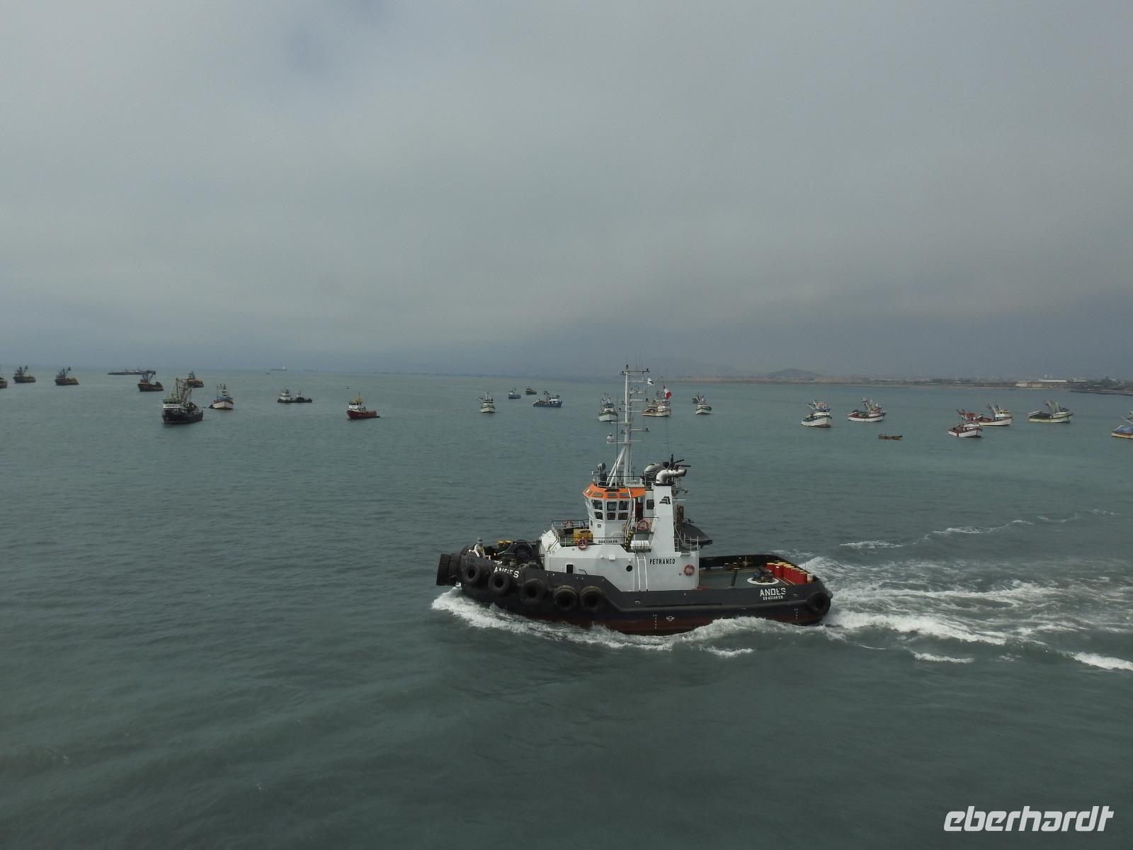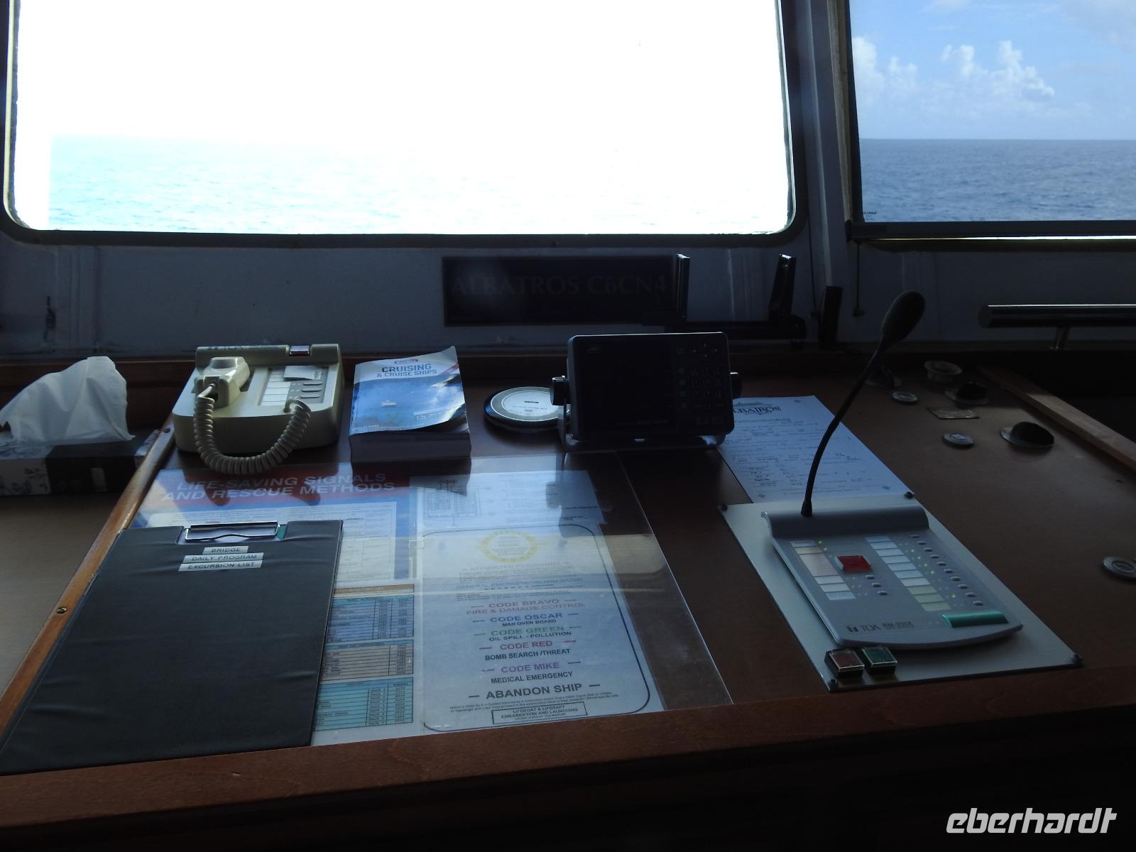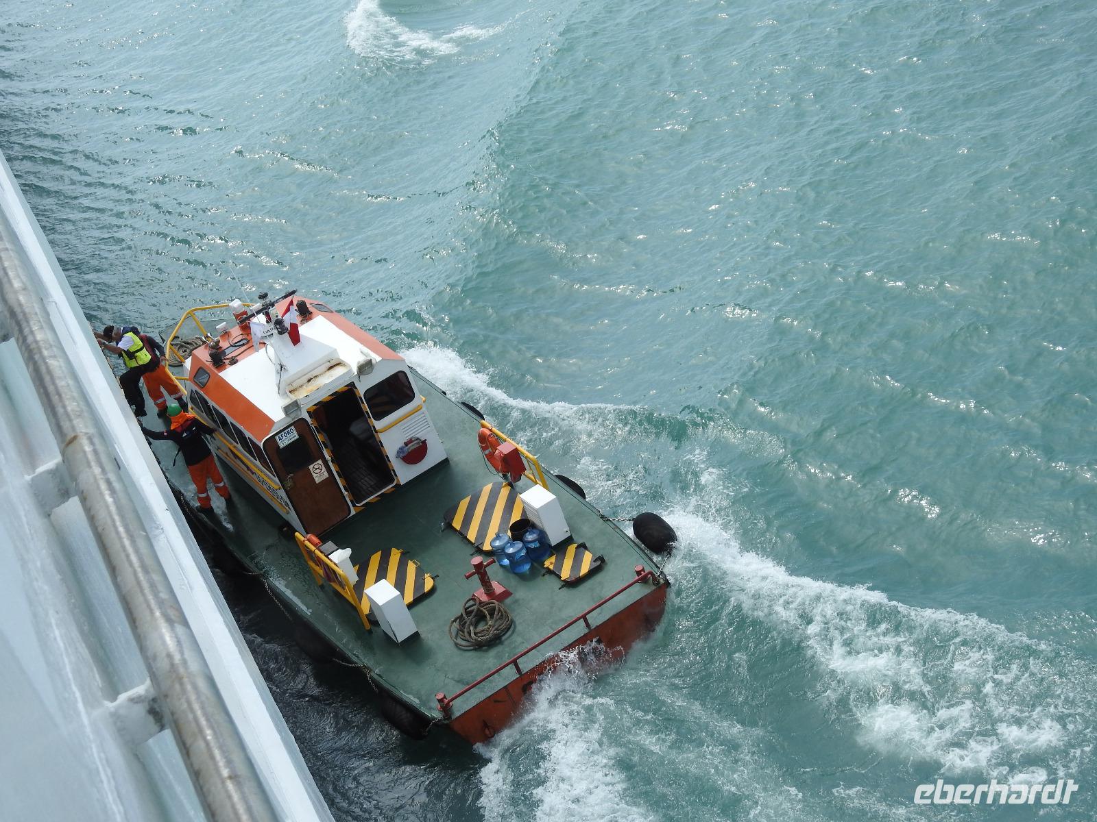 Heute können wir uns etwas ausruhen und die Erlebnisse der letzten Tage sacken lassen. Den Morgen genießen wir am reichhaltigen Frühstücksbuffet, anschließend kann jeder auf eigene Faust und nach Gutdünken das Schiff erkunden. Mittags wird an Deck die PERUANISCHE REISPFANNE serviert und um 14 Uhr werden alle zur Rettungsübung gebeten. Siebenmal kurz und einmal lang, dieser Ton fordert uns auf, mitsamt der Schwimmweste an unseren Musterstationen zu erscheinen. Dort erfolgen eine Anwesenheitskontrolle und die Sicherheitsbelehrung. Wir legen unsere Schwimmwesten an und gehen im Gänsemarsch, die rechte Hand auf der Schulter des Vordermannes, zu unserem Rettungsboot. Hier gibt es weitere Belehrungen bevor wir wieder in unsere Kabinen entlassen werden. Schnell die Schwimmweste verstauen und zurück an Deck, denn der Motor ist schon an und wir verlassen den Hafen Callao und damit Peru. Am Abend begrüßt Kapitän Elmar Mühlebach alle Passagiere, die es wünschen, mit einem Handschlag. Das dauert eine Weile, denn über einhundert Gäste wollen diesen Augenblick nicht versäumen. Mit Sekt und Häppchen verwöhnt, vergeht die Wartezeit aber schnell. Nun stellen der Kapitän seine Mannschaft und der Kreuzfahrtdirektor seine Mitarbeiter vor. Nach dem Gala-Abendessen findet in der Atlantik-Lounge die erste Show statt. Unter dem Motto SEI HIER GAST stellen sich die Künstler vor, die an den nächsten Abenden auftreten werden. So klingt unser erster Tag an Bord der MS Albatros aus. Oder wir gehen noch zum Mitternachtsbuffet. Es gibt pikante Bohnensuppe.