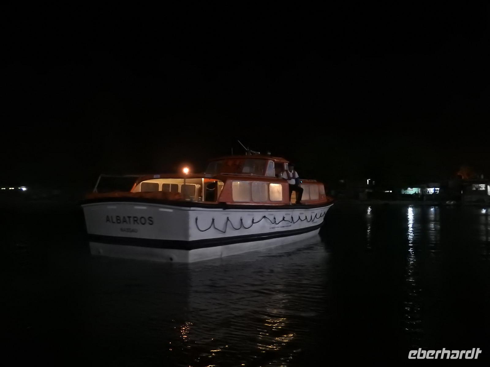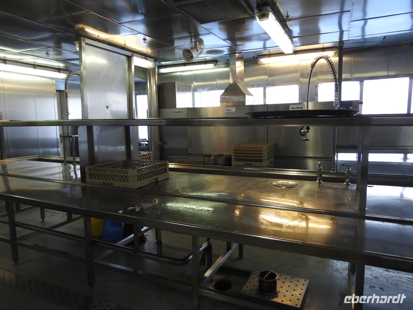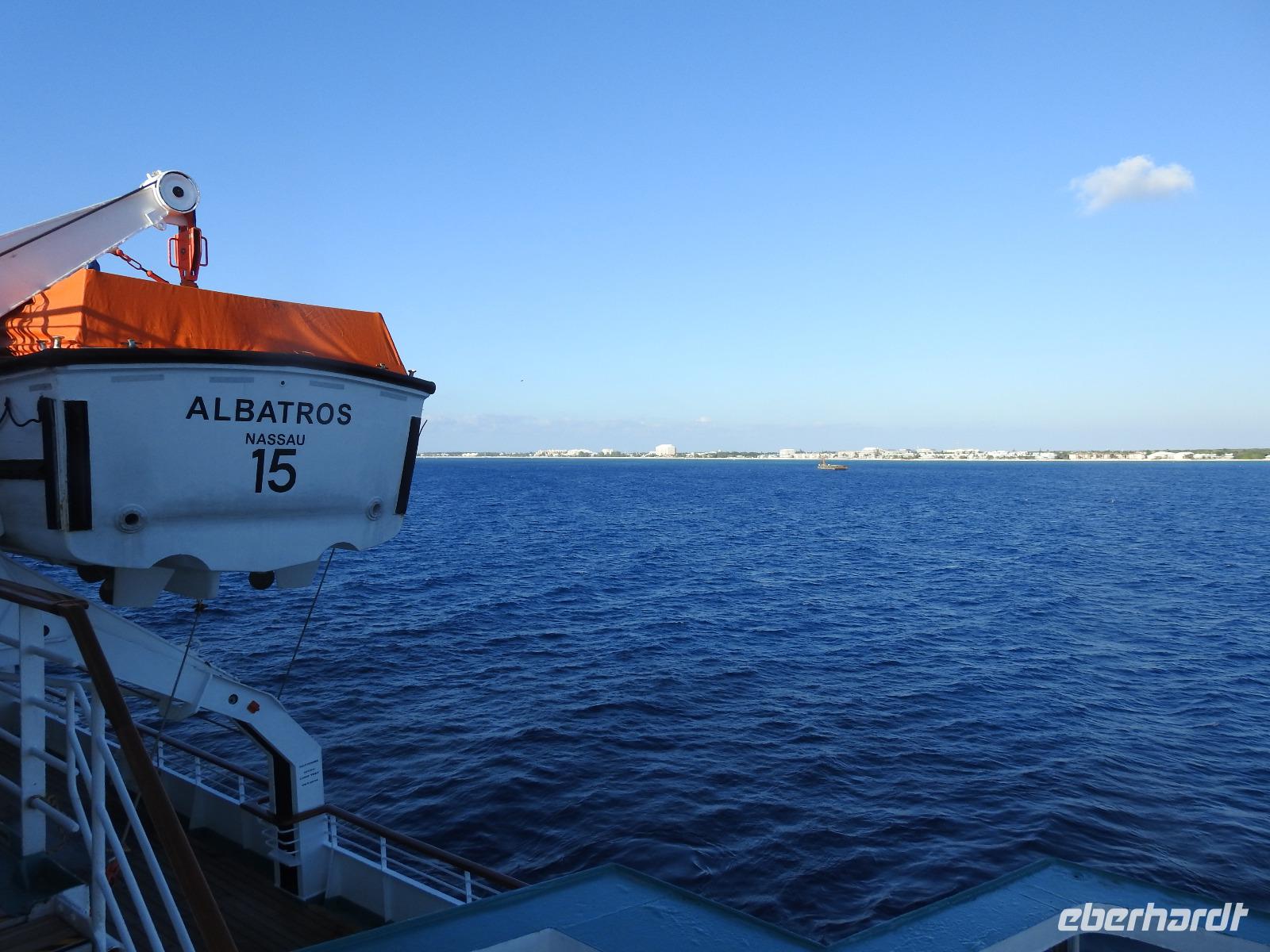 Heute ist Freizeit angesagt, kein Gruppenausflug. Dennoch haben wir uns als Eberhardt-Gruppe zusammengetan und fahren gemeinsam mit dem Tenderboot an Land. Mit einem Großraum-Taxi fahren wir für 4 $ + 1 $ Trinkgeld pro Person zum Royal Beach, einen Abschnitt des Seven Mile Beach. Diesen hat uns der freundliche Taxifahrer als Alternative zum Public Beach (öffentlicher Strand) empfohlen. Eigentlich müsste man hier 2 $ Eintritt bezahlen, aber es ist niemand hier, um abzukassieren und in Angesicht der Schönheit des Strandes, des türkisblauen Meeres und der einladenden Atmosphäre, beschließen wir, an diesem Strand zu bleiben. Nach kurzer Verdauung der Preise für Liegen (12 $) und Sonnenschirme (15 $), lassen wir uns an einem Mäuerchen im Schatten unter Palmen nieder und machen es uns gemütlich. Wir baden im Meer und lassen uns von den kleinen Wellen durchschaukeln. Nach zwei Stunden holt uns zuverlässig der Taxifahrer ab und wir fahren zurück aufs Schiff zum Mittagessen. Nachmittags lädt der Hafen von George Town zum Bummeln und Shoppen ein. Es gibt reichlich Souvenire, Klamotten und vor allem überall freies W-LAN. Um 16.30 Uhr fährt das letzte Tenderboot zum Schiff zurück. Wie immer werden wir mit einem Getränk und Desinfektionsmittel begrüßt. Um 18.45 Uhr haben wir den nächsten Termin. Der Chefkoch aus Österreich stellt seine Mannschaft vor. Das heißt, nur einen Teil davon, denn insgesamt arbeiten in der Küche 300 fleißige Mitarbeiter aus sieben Nationen. Hauptsächlich Philippinos, Malaien, Indonesier, aber auch ein Engländer. Nach der allabendlichen Show gibt es am Mitternachts Buffet Currywurst.