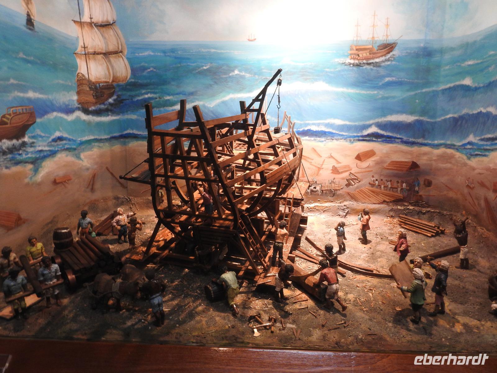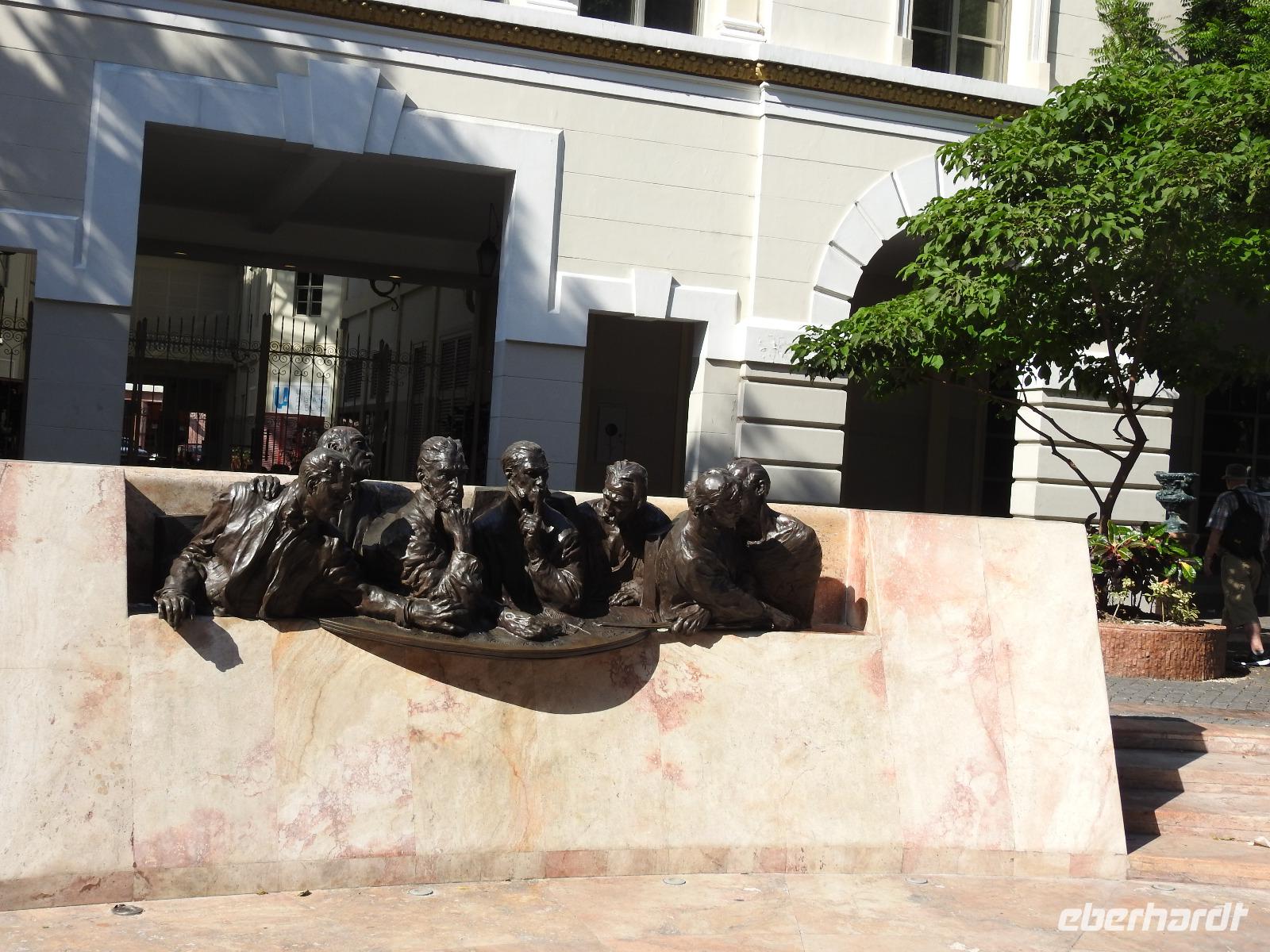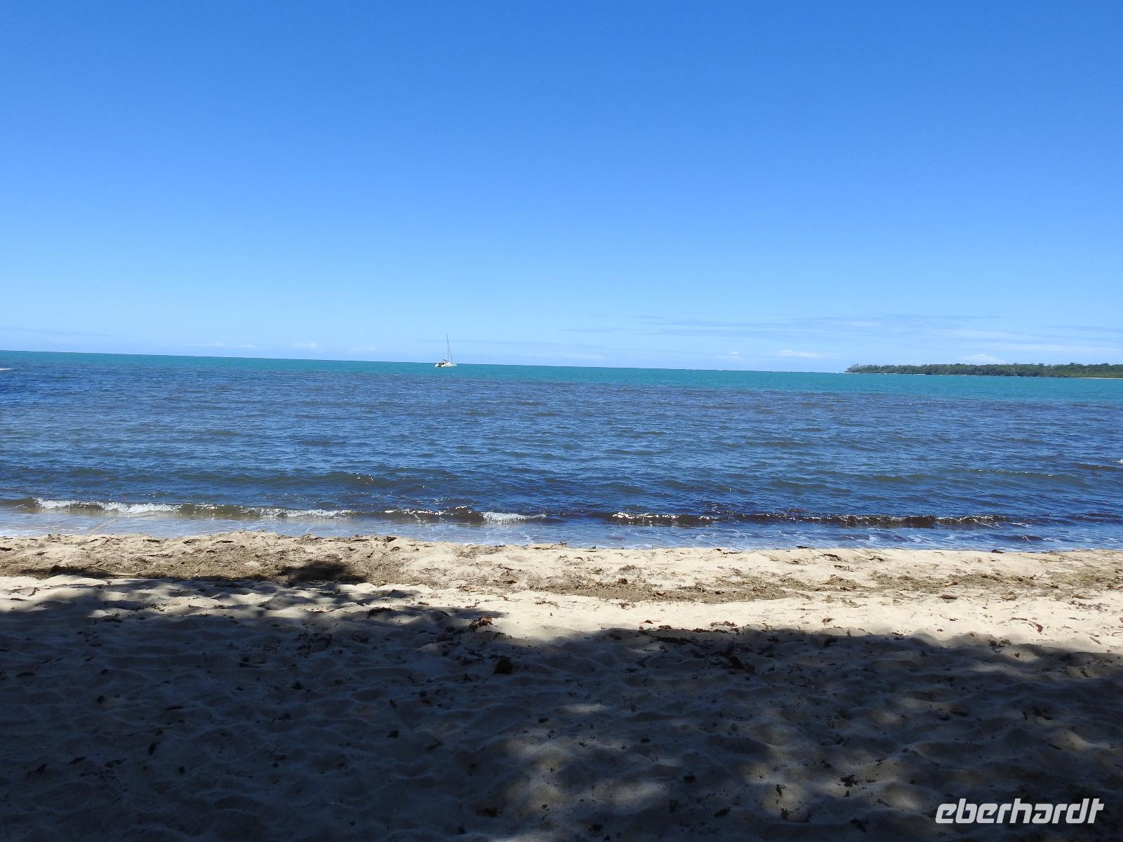 Heute ist Freizeit angesagt, kein Gruppenausflug. Dennoch haben wir uns als Eberhardt-Gruppe zusammengetan und fahren gemeinsam mit dem Tenderboot an Land. Mit einem Großraum-Taxi fahren wir für 4 $ + 1 $ Trinkgeld pro Person zum Royal Beach, einen Abschnitt des Seven Mile Beach. Diesen hat uns der freundliche Taxifahrer als Alternative zum Public Beach (öffentlicher Strand) empfohlen. Eigentlich müsste man hier 2 $ Eintritt bezahlen, aber es ist niemand hier, um abzukassieren und in Angesicht der Schönheit des Strandes, des türkisblauen Meeres und der einladenden Atmosphäre, beschließen wir, an diesem Strand zu bleiben. Nach kurzer Verdauung der Preise für Liegen (12 $) und Sonnenschirme (15 $), lassen wir uns an einem Mäuerchen im Schatten unter Palmen nieder und machen es uns gemütlich. Wir baden im Meer und lassen uns von den kleinen Wellen durchschaukeln. Nach zwei Stunden holt uns zuverlässig der Taxifahrer ab und wir fahren zurück aufs Schiff zum Mittagessen. Nachmittags lädt der Hafen von George Town zum Bummeln und Shoppen ein. Es gibt reichlich Souvenire, Klamotten und vor allem überall freies W-LAN. Um 16.30 Uhr fährt das letzte Tenderboot zum Schiff zurück. Wie immer werden wir mit einem Getränk und Desinfektionsmittel begrüßt. Um 18.45 Uhr haben wir den nächsten Termin. Der Chefkoch aus Österreich stellt seine Mannschaft vor. Das heißt, nur einen Teil davon, denn insgesamt arbeiten in der Küche 300 fleißige Mitarbeiter aus sieben Nationen. Hauptsächlich Philippinos, Malaien, Indonesier, aber auch ein Engländer. Nach der allabendlichen Show gibt es am Mitternachts Buffet Currywurst.