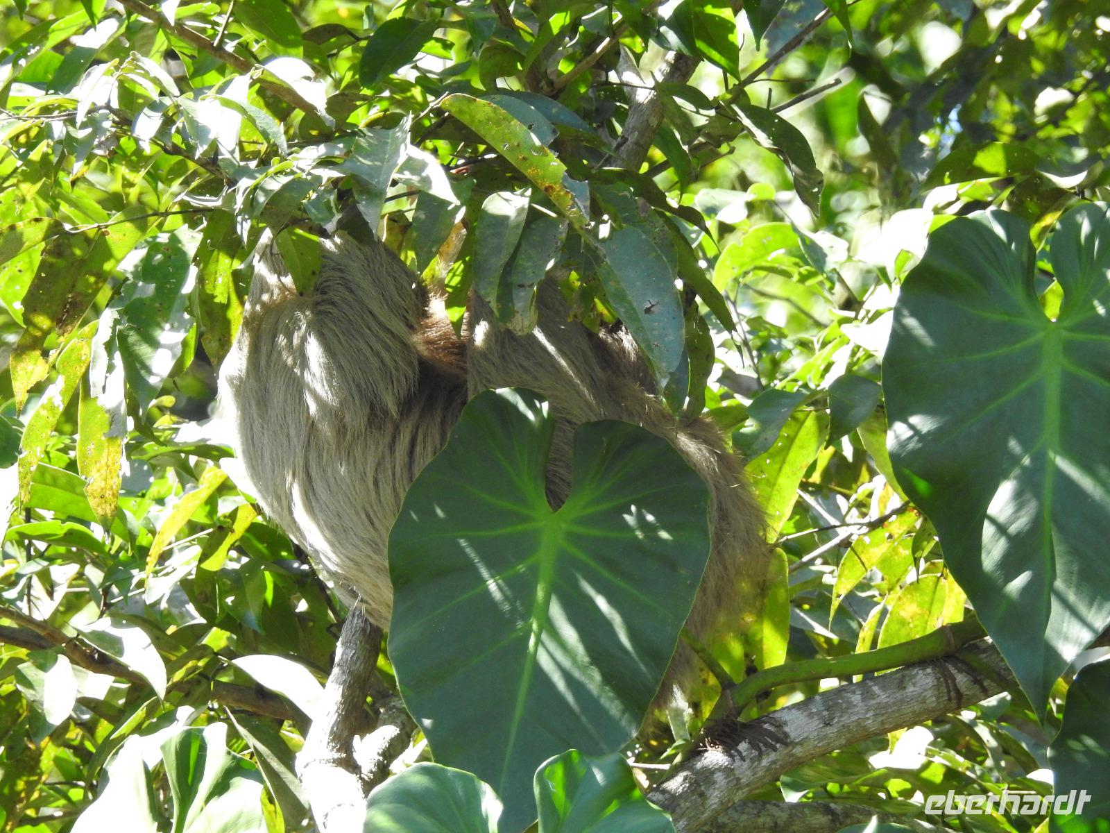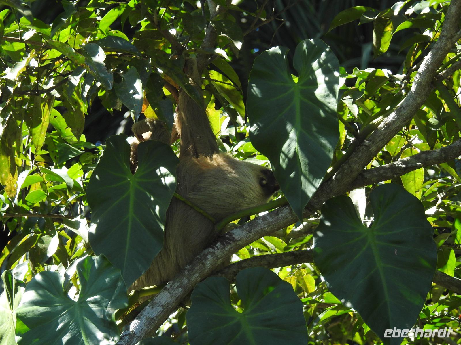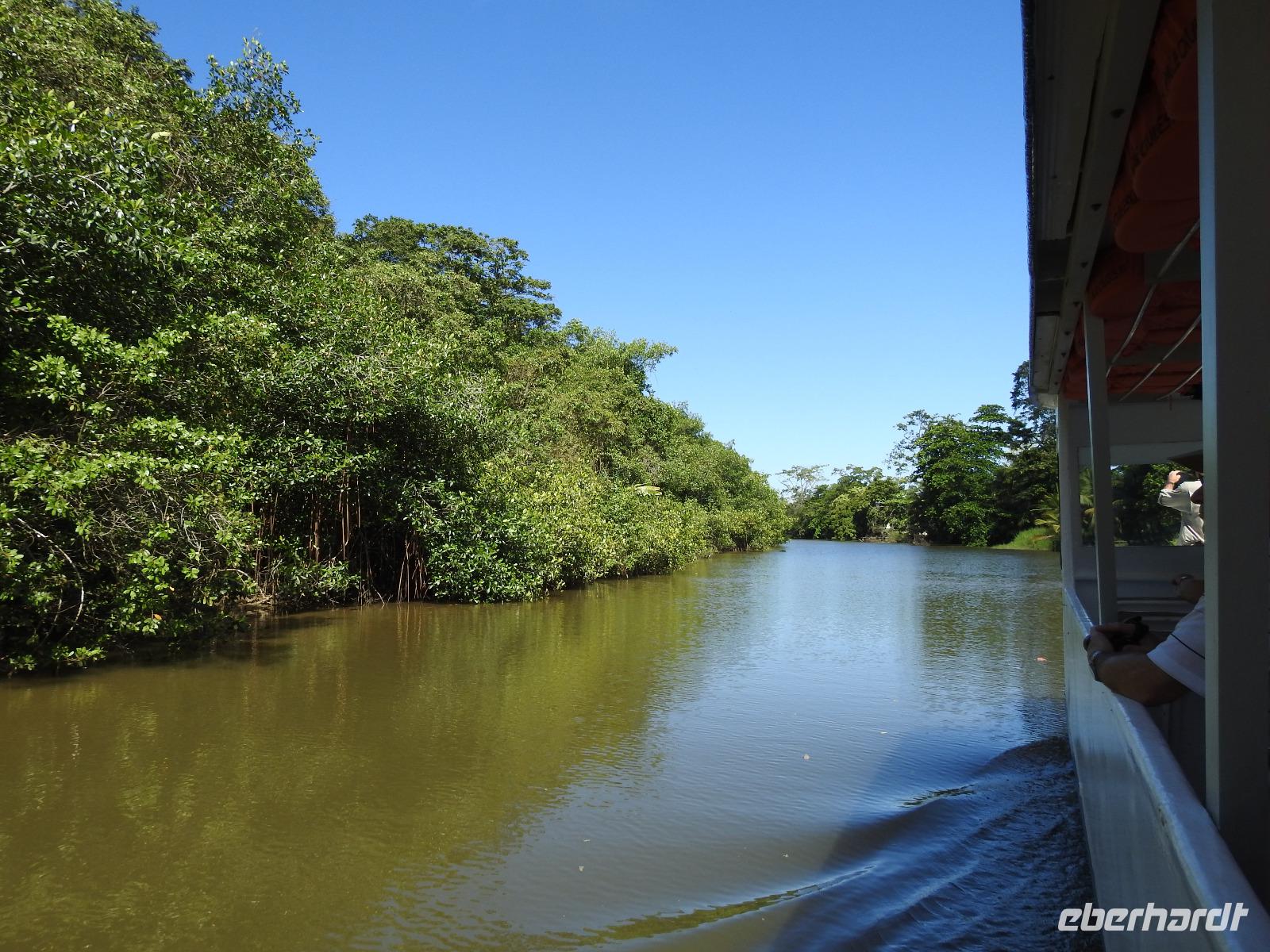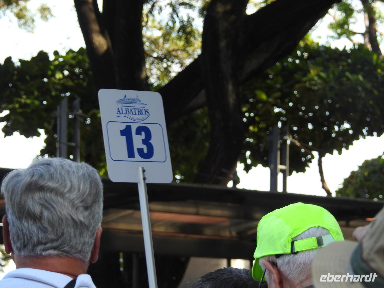 Während des Frühstücks kommt unser Schiff in Costa Rica an. Heute Nacht wurden die Uhren eine Stunde zurückgestellt, das heißt, wir konnten eine Stunde länger schlafen. Wir befinden uns jetzt im größten Hafen von Costa Rica, in dem Kaffee, Bananen und Ananas verladen und nach Europa geschickt werden. Als Christoph Columbus 1502 hier ankam, traf er auf reich mit Gold geschmückte Einwohner und gab dem Platz einen Namen - Reiche Küste - Costa Rica. Heute unternehmen wir als Eberhardt-Gruppe einen Privatausflug. Anstatt wir uns mit anderen Passagieren um einen Platz drängeln müssen, haben wir unser eigenes Boot bei der Fahrt durch die Tortuguero-Kanäle und der Jagd auf das beste Tierfoto. Marco ist unser örtlicher Guide, der uns heute begleitet und der weiß, wo sich die Faultiere, Brüllaffen und Jesus-Christus-Echsen verstecken. Wir sehen auch Schmuckreiher, Blaureiher und einen seltenen Eisvogel. Wir begegnen einer Kolonie Aasgeier, die es sich zu einem ausgiebigen Mahl auf einem Kuhkadaver bequem gemacht haben. Nach der Bootstour fahren wir zum Cahuita Nationalpark. Während der einstündigen Fahrt berichte uns Marco alles über das Leben in Costa Rica. Der Nationalpark Cahuita ist der zweitälteste und einer der beliebtesten Parks des Landes. Bekannt ist er vor allem für seine schönen Sandstrände, die üppige Vegetation und die Mangrovensümpfe. Und für seine tierischen Bewohner. Noch einmal begegnen uns Faultiere, Brüllaffen und Waschbären. Zum Mittag gibt es ein typisch kreolisches Mahl mit Reis und Bohnen und Fisch oder Hühnchen. Am späten Nachmittag treffen wir wieder am Hafen ein. Zum Abendessen wird auf dem Lido-Deck gegrillt, man kann sich aber auch klassisch im Restaurant bedienen lassen. In der Atlantik-Lounge gibt es Musik aus Oper, Operette und Musicals und nach 22 Uhr eine Flower Power Party in Harrys Bar. Wer danach noch hungrig ist, kann beim Mitternachtssnack Hackbällchen mit Soße verputzen.