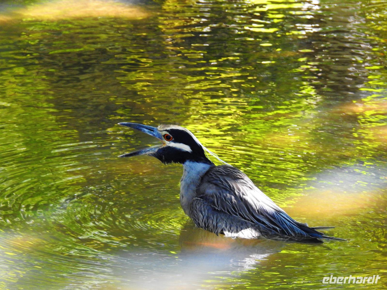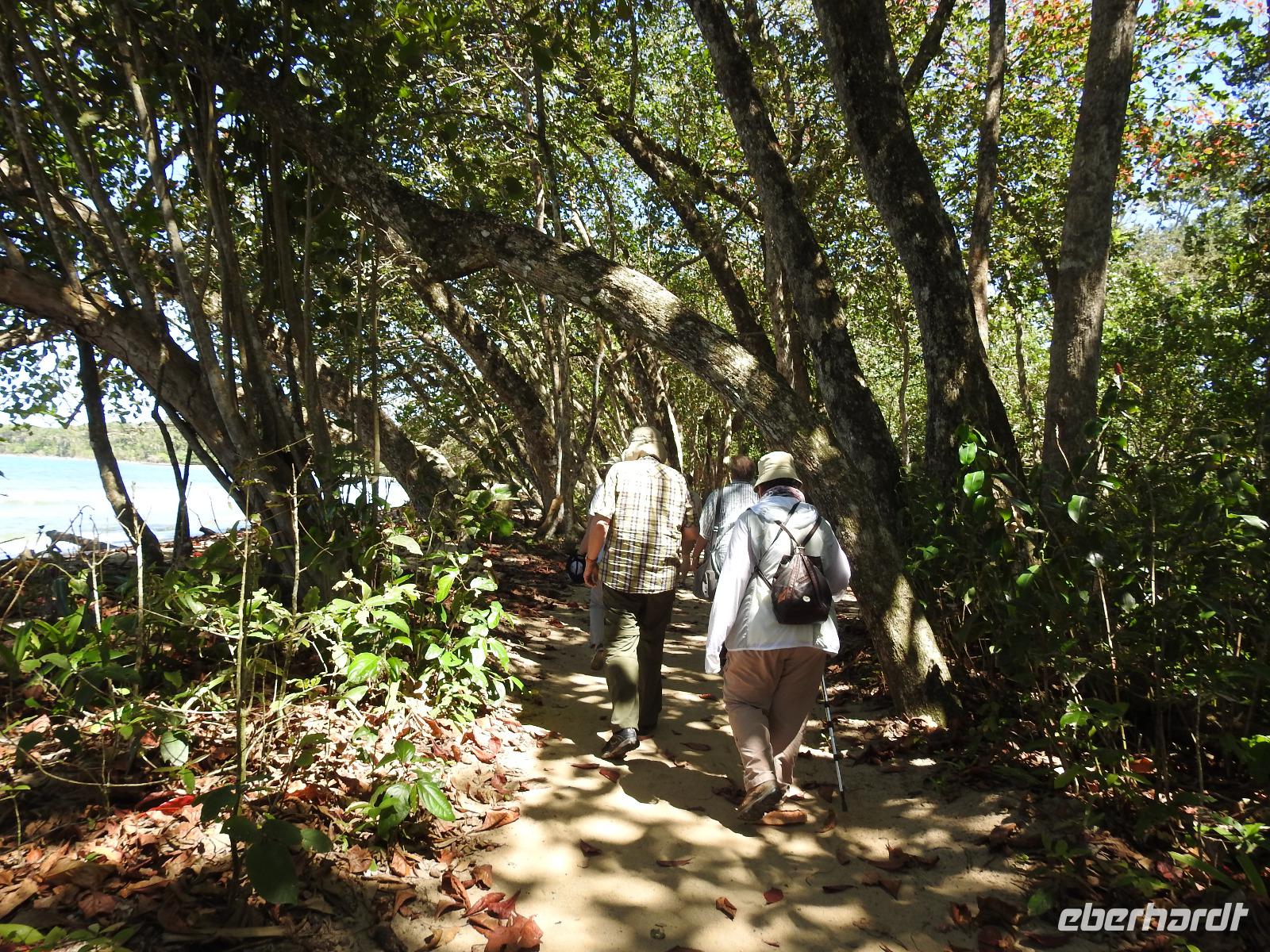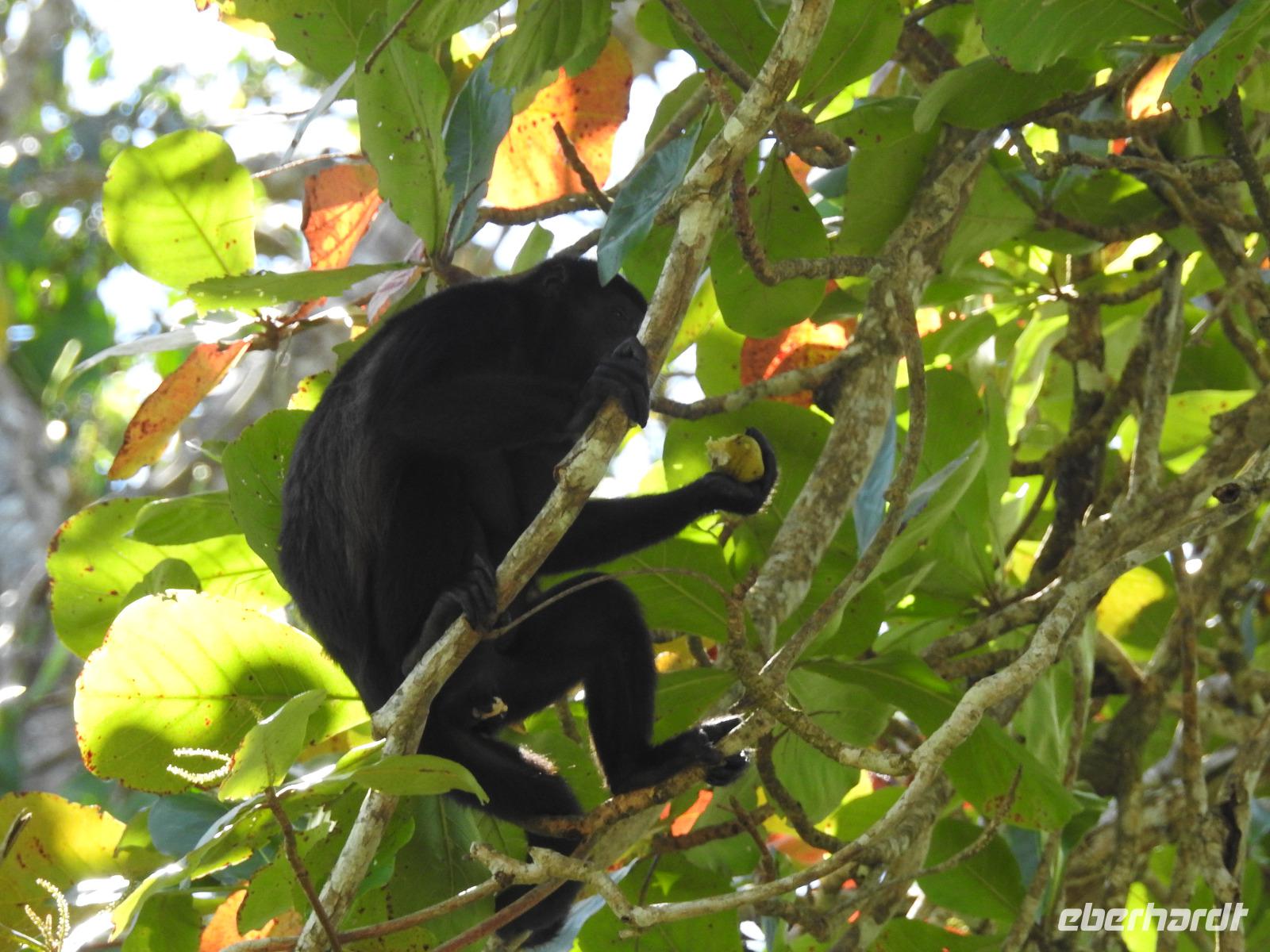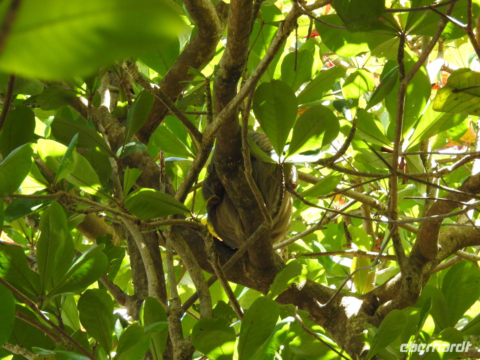 Während des Frühstücks kommt unser Schiff in Costa Rica an. Heute Nacht wurden die Uhren eine Stunde zurückgestellt, das heißt, wir konnten eine Stunde länger schlafen. Wir befinden uns jetzt im größten Hafen von Costa Rica, in dem Kaffee, Bananen und Ananas verladen und nach Europa geschickt werden. Als Christoph Columbus 1502 hier ankam, traf er auf reich mit Gold geschmückte Einwohner und gab dem Platz einen Namen - Reiche Küste - Costa Rica. Heute unternehmen wir als Eberhardt-Gruppe einen Privatausflug. Anstatt wir uns mit anderen Passagieren um einen Platz drängeln müssen, haben wir unser eigenes Boot bei der Fahrt durch die Tortuguero-Kanäle und der Jagd auf das beste Tierfoto. Marco ist unser örtlicher Guide, der uns heute begleitet und der weiß, wo sich die Faultiere, Brüllaffen und Jesus-Christus-Echsen verstecken. Wir sehen auch Schmuckreiher, Blaureiher und einen seltenen Eisvogel. Wir begegnen einer Kolonie Aasgeier, die es sich zu einem ausgiebigen Mahl auf einem Kuhkadaver bequem gemacht haben. Nach der Bootstour fahren wir zum Cahuita Nationalpark. Während der einstündigen Fahrt berichte uns Marco alles über das Leben in Costa Rica. Der Nationalpark Cahuita ist der zweitälteste und einer der beliebtesten Parks des Landes. Bekannt ist er vor allem für seine schönen Sandstrände, die üppige Vegetation und die Mangrovensümpfe. Und für seine tierischen Bewohner. Noch einmal begegnen uns Faultiere, Brüllaffen und Waschbären. Zum Mittag gibt es ein typisch kreolisches Mahl mit Reis und Bohnen und Fisch oder Hühnchen. Am späten Nachmittag treffen wir wieder am Hafen ein. Zum Abendessen wird auf dem Lido-Deck gegrillt, man kann sich aber auch klassisch im Restaurant bedienen lassen. In der Atlantik-Lounge gibt es Musik aus Oper, Operette und Musicals und nach 22 Uhr eine Flower Power Party in Harrys Bar. Wer danach noch hungrig ist, kann beim Mitternachtssnack Hackbällchen mit Soße verputzen.