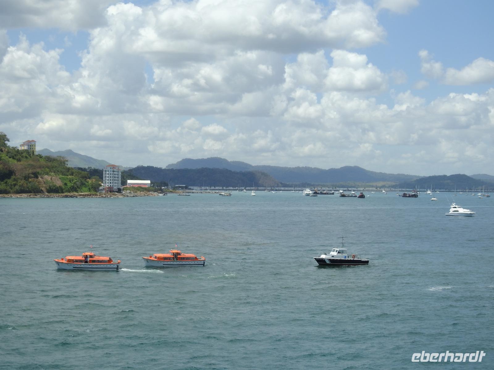 Von Manta bis Fort Amador haben wir 598 Seemeilen zurückgelegt. Ab mittags werden verschiedene Ausflüge angeboten. So kann man zu den Embera Indianern fahren oder sich die Miraflores-Schleuse anschauen. An letztgenanntem Ausflug nehmen die Meisten unserer Gruppe teil. Wir treffen uns in der Atlantik Lounge auf Deck 6, wo die Buskärtchen ausgegeben werden. Dann folgen wir unserer Reiseleitung vom Schiff bis zum Rettungsboot, das heute zum Tendern benutzt wird. Wir setzen über und am Hafen wartet ein bequemer Reisebus auf die neugierigen Ausflügler. Nach etwa einer halben Stunde treffen wir an der Miraflores-Schleuse ein. Wir besuchen ein Museum, in dem die Geschichte des Panama-Kanals dokumentiert wird. Auf der 4. Etage gibt es eine Aussichtsplattform, von der man beobachten kann, wie die Schiffe in die Schleuse einfahren und auch wieder hinaus. Anschließend fahren wir durch ein Stadtviertel, das früher nur den Amerikanern vorbehalten war. Unsere örtliche Reiseleiterin berichtet über das Schicksal der Amerikaner, die hier gearbeitet und gelebt haben. Besonders tragisch hat es dabei die in Panama geborenen amerikanischen Kinder erwischt, die nach der Übergabe des Panama-Kanals an die Panamesen mit ihren Eltern nach Amerika zurückkehren mussten, aber auch dort keine richtigen Wurzeln schlagen konnten.