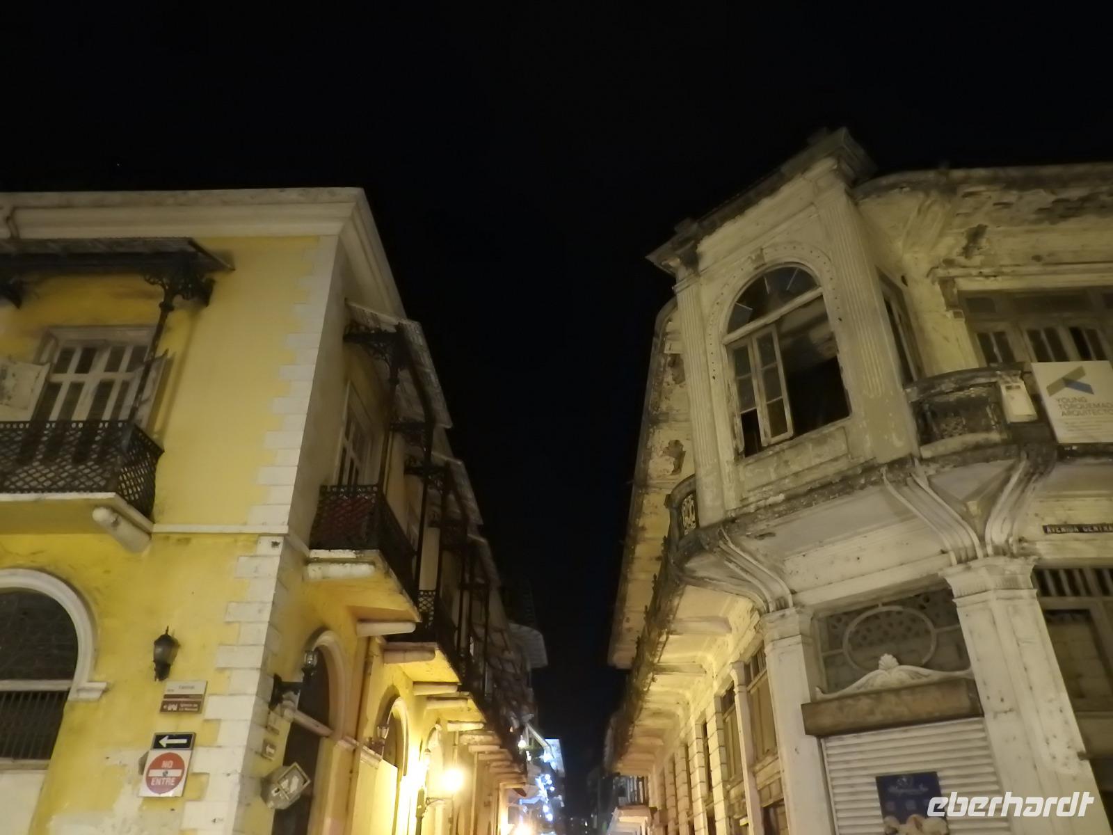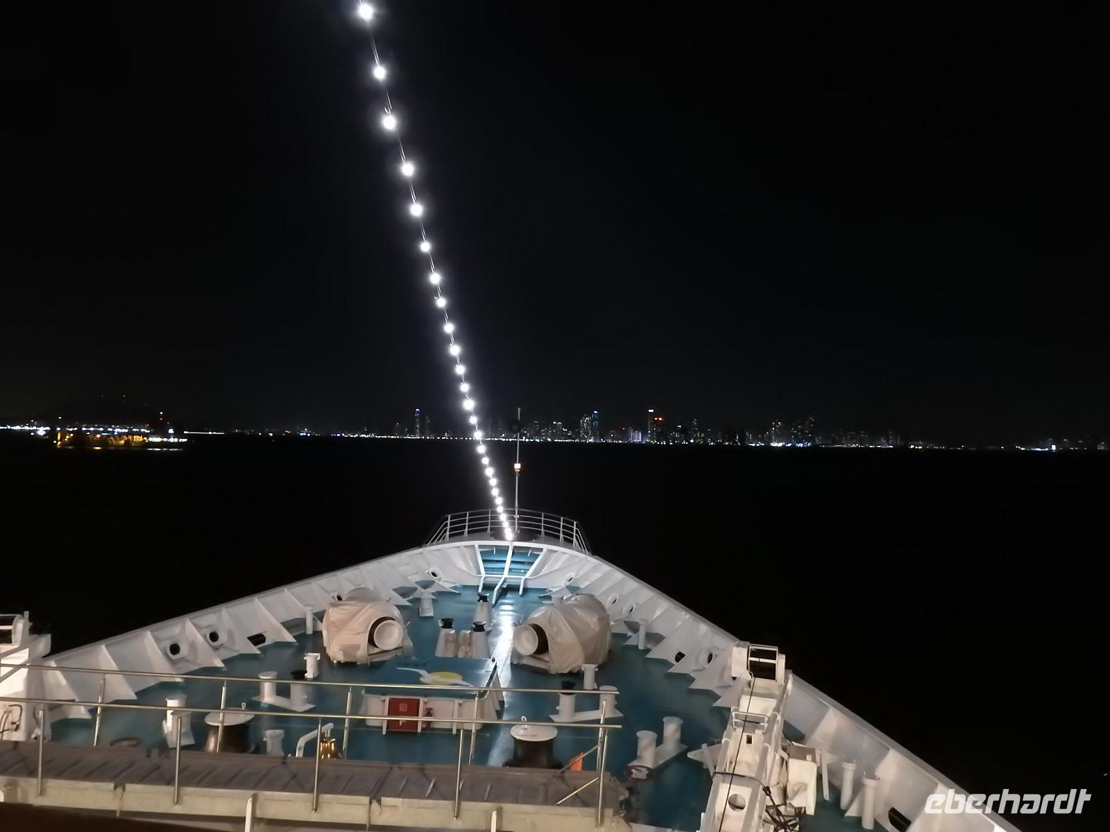 Am Abend erwartet uns das illuminierte Panama. Wir fahren in das koloniale Viertel und erfahren, warum der Kanal in Panama und nicht in Nicaragua gebaut wurde, wie man es zeitweise vorhatte. Ein vierhundert Jahre alter Torbogen einer Kirche galt als Argument für die Sicherheit in Panama. Keine Erdbeben, keine Vulkane würden den Betrieb des Kanals jemals stören. Mehr als drei Stunden fahren und spazieren wir durch die Stadt. Immer wieder erklingt ein freundliches Welcome in Panama an unser Ohr. Die Touristenpolizei ist präsent und passt auf uns auf. An keiner Stelle fühlen wir uns unsicher oder bedroht.