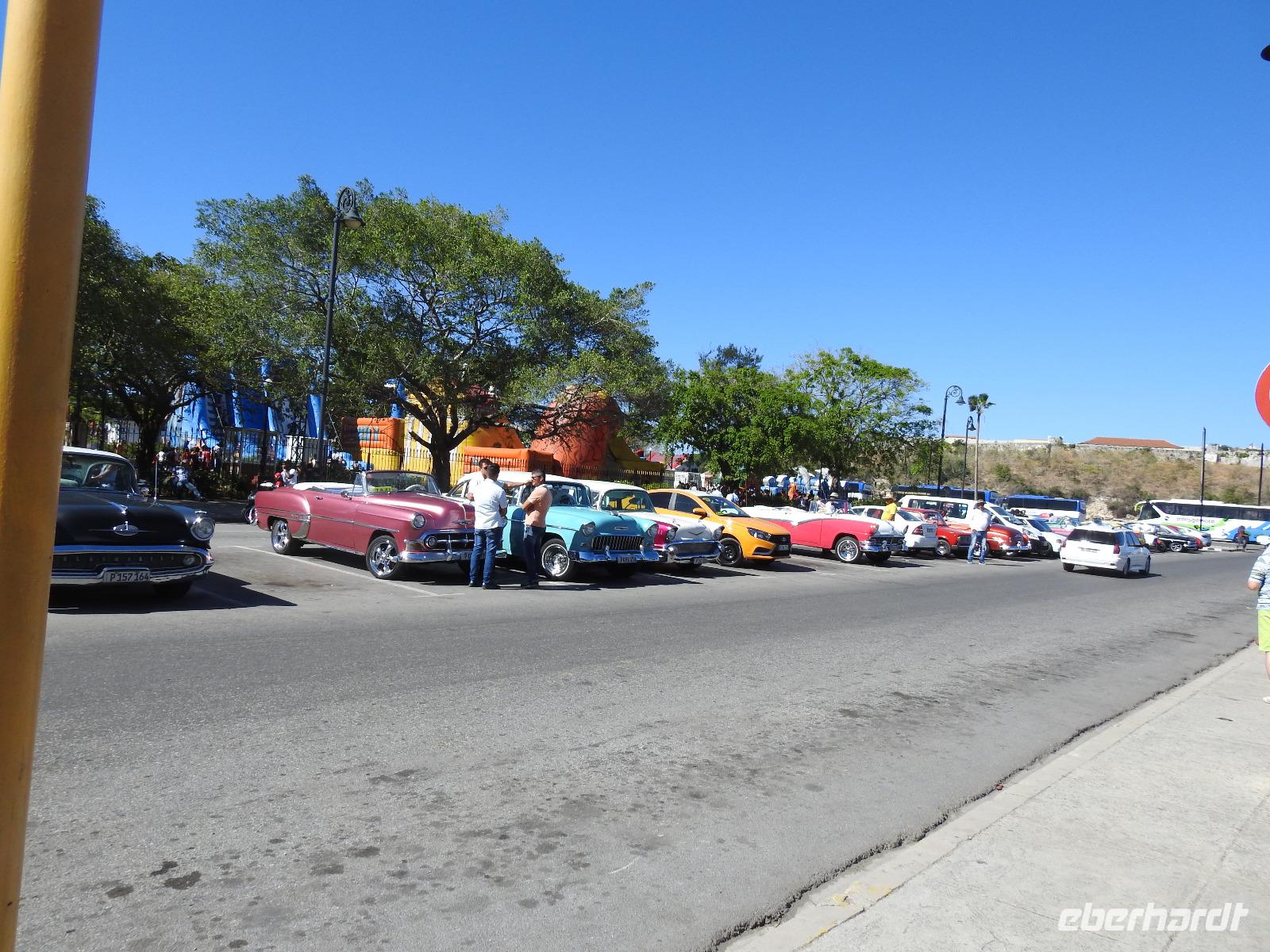 Bereits um 7.50 Uhr treffen wir uns heute in der Atlantik-Show-Lounge für den Ausflug nach Havanna. Dreieinhalb Stunden Fahrt liegen vor uns. Zum Glück ist der Reisebus bequem und nicht überfüllt. Reiseleiterin Jenny und eine örtliche Reiseleiterin begleiten uns. Die freundliche Kubanerin schafft es, die dreieinhalb Stunden fasst ununterbrochen zu erzählen, so dass es uns nicht langweilig wird. Nach ca. zwei Stunden halten wir an einem Rastplatz zum Blumengießen, wie sie es nennt. Neu für uns ist, dass man in Kuba den Abschnitt vom Toilettenpapier, so man welches benötigt, bezahlen muss. In Havanna trennen wir uns von den Mitreisenden aus dem Schiff, denn wir haben wieder unser eigenes Programm. Unser kubanischer Reiseleiter heißt Marco und begleitet uns durch die Stadt. Er ist ein Profi und schafft es, uns in kurzer Zeit, viel sehen zu lassen und trotzdem immer ein bisschen Zeit für eigenes Schauen und Fotografieren zu haben. Zum Mittagessen kehren wir in ein Restaurant mit Meerblick ein. Unsere Männer, die mit dem Rücken zum Meer sitzen, genießen die Aussicht auf die andere Seite, wo eine dicke Frau kleine Schlüpfer auf die Wäscheleine hängt bzw. abnimmt. So haben alle ihren Spaß. Am Nachmittag erwarten uns fünf kubanische Oldtimer, in denen wir es uns bequem machen können und durch Havanna sausen. Im Hotel Nacional, in dem schon viele berühmte Persönlichkeiten waren, kehren wir zu einem Cocktail ein, bevor wir die Fahrt mit den Oldtimern fortsetzen. Nun müssen wir aber zurück zum Schiff und nach nochmals dreieinhalb Stunden mit kurzer Pause, sind wir wieder in Cienfuegos. Wir nehmen heute das Abendessen im Restaurant Pelikan ein, stellen aber fest, dass uns unsere Kellner und unsere Atmosphäre im Restaurant Möwe, wo wir unseren festen Tisch haben, besser gefallen. Nun, es ist nur für diesen einen Abend, weil wir so spät zum Schiff zurückgekommen sind. Herr Baumann und Frau Meyer erfreuen das Publikum in der Atlantik-Lounge mit Zauberkunststückchen und zum Mitternachtsbuffet gibt es gebackenen Camembert.
