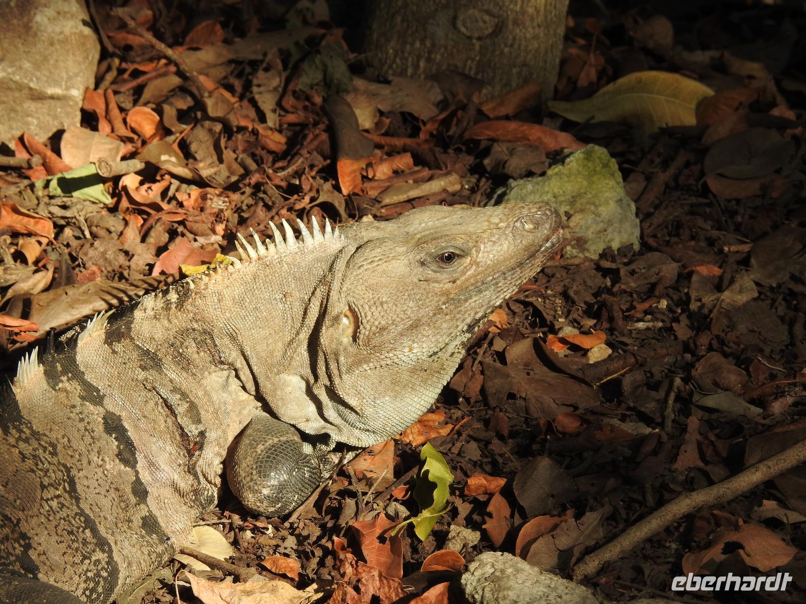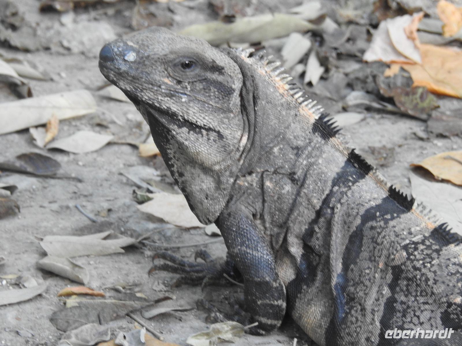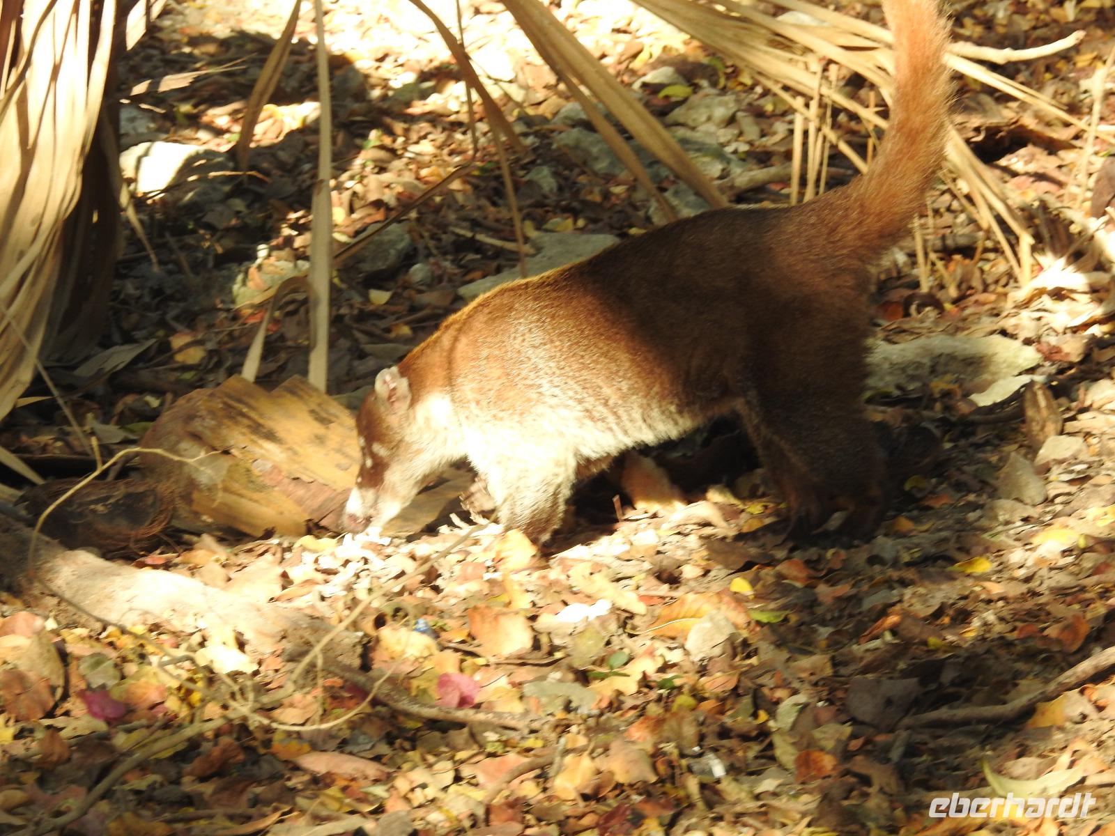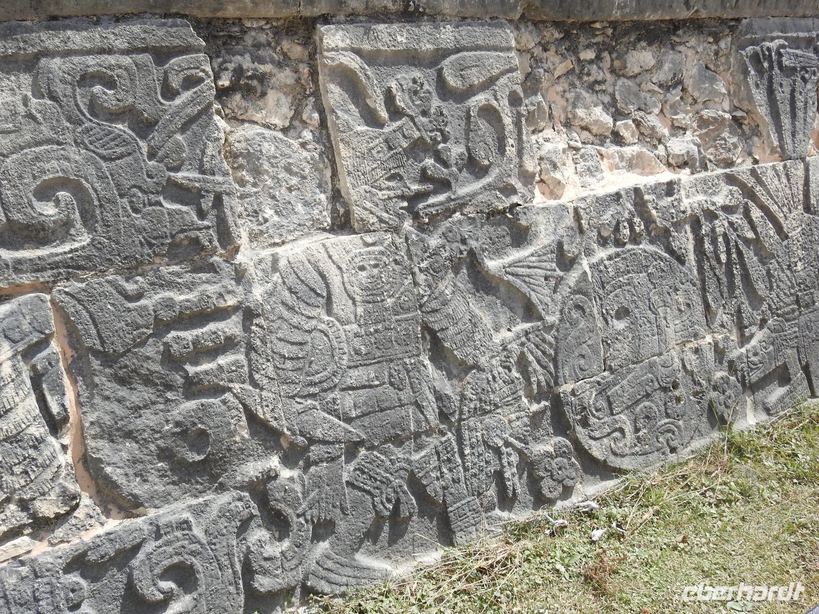 Die Koffer haben wir nachts vor die Tür gestellt und nun sind sie, wie von Geisterhand, verschwunden. Uns erwartet zum Abschied ein Sektfrühstück. Um 9 Uhr verlassen wir die MS Albatros. Doch das ist nicht so einfach. Zunächst müssen wir, wie schon so oft geübt, die Atlantik Lounge aufsuchen. Dort pilgern wir in langer Schlange an den mexikanischen Behörden vorbei. Stempel hier, Stempel da. Papier abgeben, Papier bekommen. Kein Mensch sieht mehr durch. Da hilft nur: alles aufheben, nichts wegwerfen und den Behörden vertrauen. Auf Deck 3 befindet sich der Ausgang und die Gangway. Ca. 200 Meter weiter stehen Mitarbeiter vom Schiff und weisen uns den Weg zu den Koffern. Es ist brütend heiß. Und immer noch ein Stück bis zum Bus. Dieser ist verdunkelt und innen ist es angenehm kühl. Diego, unser Reiseleiter gibt uns ein paar Informationen zu Mexiko, dann lehnen wir uns zurück, schließen die Augen und erreichen nach zwei Stunden Chichen Itza. Inzwischen ist es Mittag und der Planet brennt. Die Sonne ist unbarmherzig. Dafür ist der Himmel strahlend blau. Vorbei an vielen bunten Ständen mit verkaufswütigen Händlern spazieren wir entlang des Säulenwaldes Richtung große Pyramide. Die Säulen sind so symmetrisch angeordnet, dass man, wenn man vor einer Säule steht, die anderen dahinter nicht sehen kann. Die Pyramide des Kukulkan ist immer noch der Hauptanziehungspunkt dieser archäologischen Stätte. Seit etwa dreizehn Jahren ist es aber verboten, hinauf zu klettern. Nun, bei dieser Hitze wäre das sowieso nicht ratsam. Wir kommen zur Schädelwand, die daran erinnert, dass es zu Mayazeiten üblich war, die Schädel von besiegten Feinden oder von Menschenopfern in großen Reihen zu stapeln. Am Ballspielplatz fragen wir uns, wie es wohl möglich war, nur mit Schulter, Brust und Hüfte einen schweren Kautschukball durch die in der Höhe angebrachten Steinringe zu schießen. Nun, nicht jeder scheint das Spiel überlebt zu haben, wie an einem Relief zu erkennen ist. Hier hält ein erfolgreicher Krieger den Kopf seines Gegners in der Hand, während aus dessen nunmehr kopflosen Körper das Blut sprudelt. Man kann nicht sagen, dass die Mayas zart miteinander umgegangen sind. Wir müssen uns jetzt beeilen, das Mittagessen wartet. Nach einem eher hektischen Imbiss mit Selbstbedienung, fahren wir weiter nach Tulum. Auch für diese Strecke benötigen wir noch einmal zwei Stunden. Als wir ankommen, muss die Uhr eine Stunde vorgestellt werden und wir sind zu spät, die Anlage ist geschlossen. Doch gegen Aufpreis kommen wir doch noch hinein. Diego schafft es sogar, die Toilettenfrau zu überreden, uns noch die ebenfalls bereits geschlossenen WCs benutzen zu lassen. Wir spazieren im Licht der langsam untergehenden Sonne durch Tulum. Der Vorteil des späten Besuchs ist, dass wir fast allein hier sind. Wir treffen einen Nasenbär und viele Echsen die es sich auf den warmen Steinen gemütlich gemacht haben und aussehen, als wären sie die Wächter von Tulum. Tulum ist die einzige Mayastätte, die am Meer gefunden wurde und soll die Funktion eines Hafens gehabt haben. Die Aussicht auf das Meer und den weißen Sandstrand sind fantastisch. Am Tempel des herabstürzenden Gottes kann man sich darüber Gedanken machen, ob hier nun der Bienengott dargestellt ist oder aber ein Außerirdischer, wie es Eric van Dänicken einmal behauptet hat. Wir fahren jetzt in unser Strandhotel, in dem wir die letzte Nacht dieser Reise verbringen.