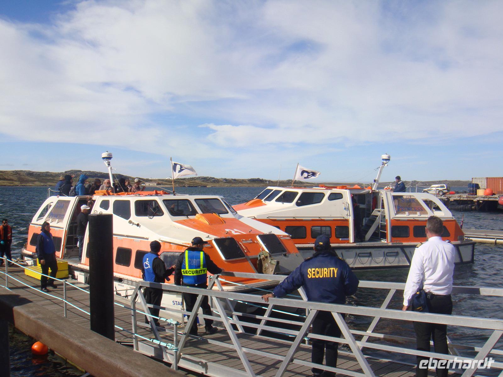 Gegen 06:30 Uhr erreichen wir die Nord-Ost Küste der Falkland Inseln. Per Tender werden in ca. 20 Minuten an Land gebracht. Das Wetter ist heute auf unserer Seite und somit erkunden wir den ca. 2300 Einwohner zählenden Ort Stanley. Entlang der Hauptstraße statten wir der „Christ Church Kathedrale" einen Besuch ab. Sie ist die südlichste anglikanische Kathedrale der Welt.Viele malerische kleine Häuser, Farmen und das Regierungsgebäude, das 1845 gebaut wurde lagen auf unserem Weg. Das Befreiungsdenkmal, erinnert an die im Falkland-Krieg von 1982 gefallenen britischen Soldaten und Zivilisten, sowie das Schlachtdenkmal, welches dem Krieg zwischen britischen und deutschen Kampfflotten im Jahr 1914 seinen Tribut zollt, gehören ebenso zu den Wahrzeichen von Stanley. Bevor der letzte Tender das Schiff wieder erreicht sind wir längst an Bord. Nach so einem sonnigen Tag und viel frischer Luft. Genießen wir unser Abendessen.
