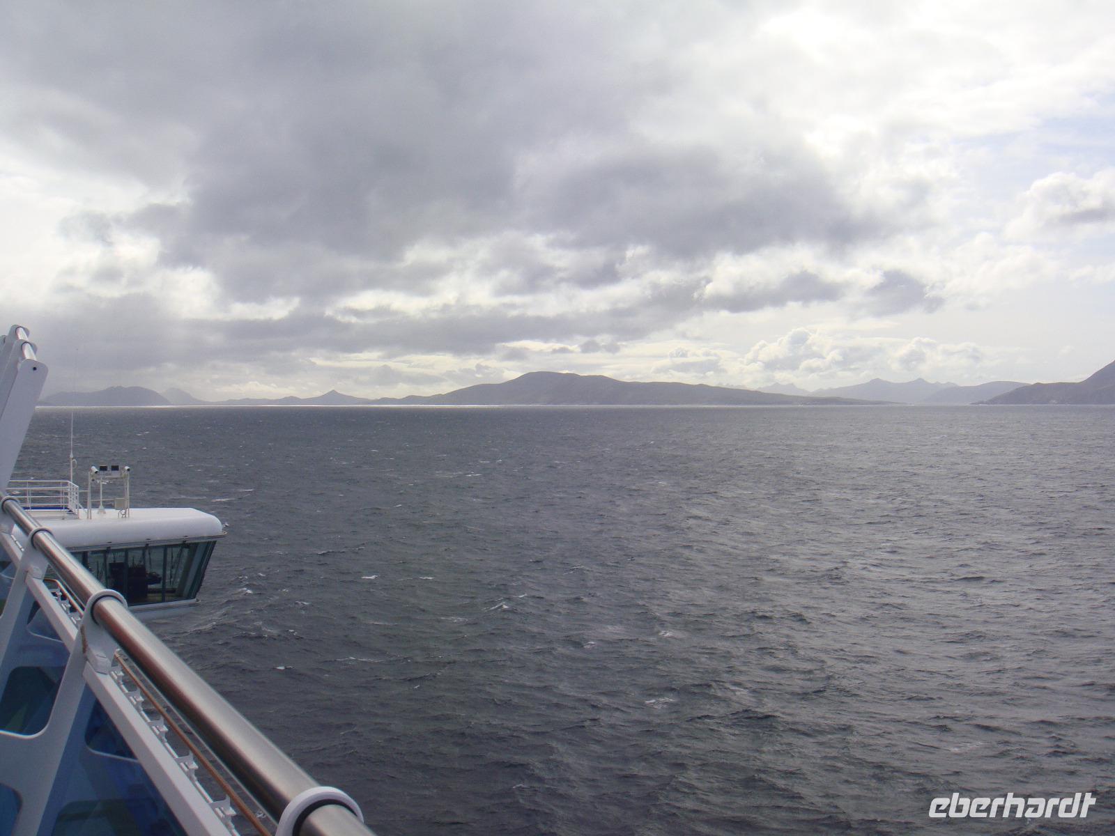Heute nähern wir uns dem Kap Hoorn. Irgendwie schon aufregend. Das Wetter wird immer rauer. Der Wind bläst heftig. Wir gehen den Tag ganz gemütlich an. Wir verweilen bei einigen der vielen Freizeitangeboten der „Star Princess". Endlich ist es soweit. Um ca. 17:00 Uhr umfährt das Schiff die Isla Hornos mit seinem Leuchtturm, der auf der höchsten Erhebung der Insel steht.