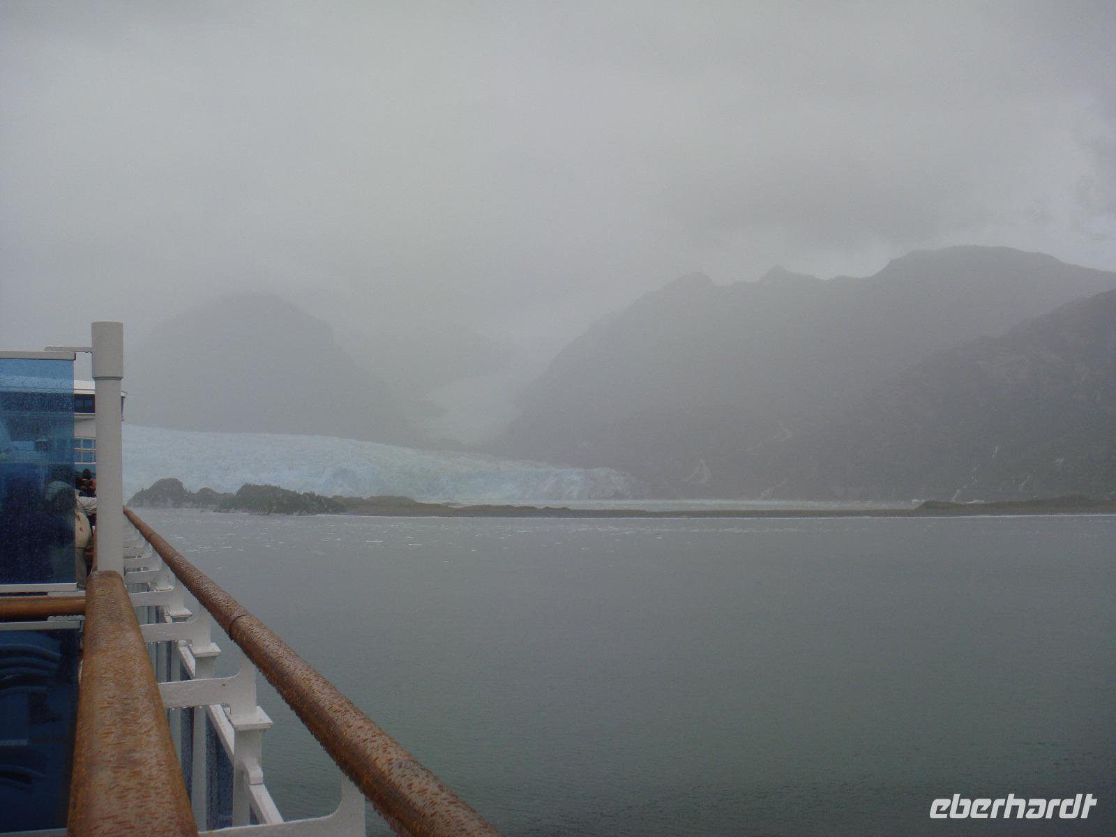 Heute begleitet uns wieder ein graues, nasses Wetter. Aber wir freuen uns über einen ruhigen Tag. Wir sind auf den Amalia Gletscher sehr gespannt und genießen bis dahin das Bordleben. Zwischen 16:00 - 17:00 Uhr erreichen wir dieses Naturereignis und unser Kapitän dreht das Schiff mehrmals im Kreis, so ist es möglich den Gletscher von beiden Seiten zu sehen. Schade nur, dass es etwas bedeckt ist. Aber wir machen das Beste daraus und sind froh ihn gesehen zu haben