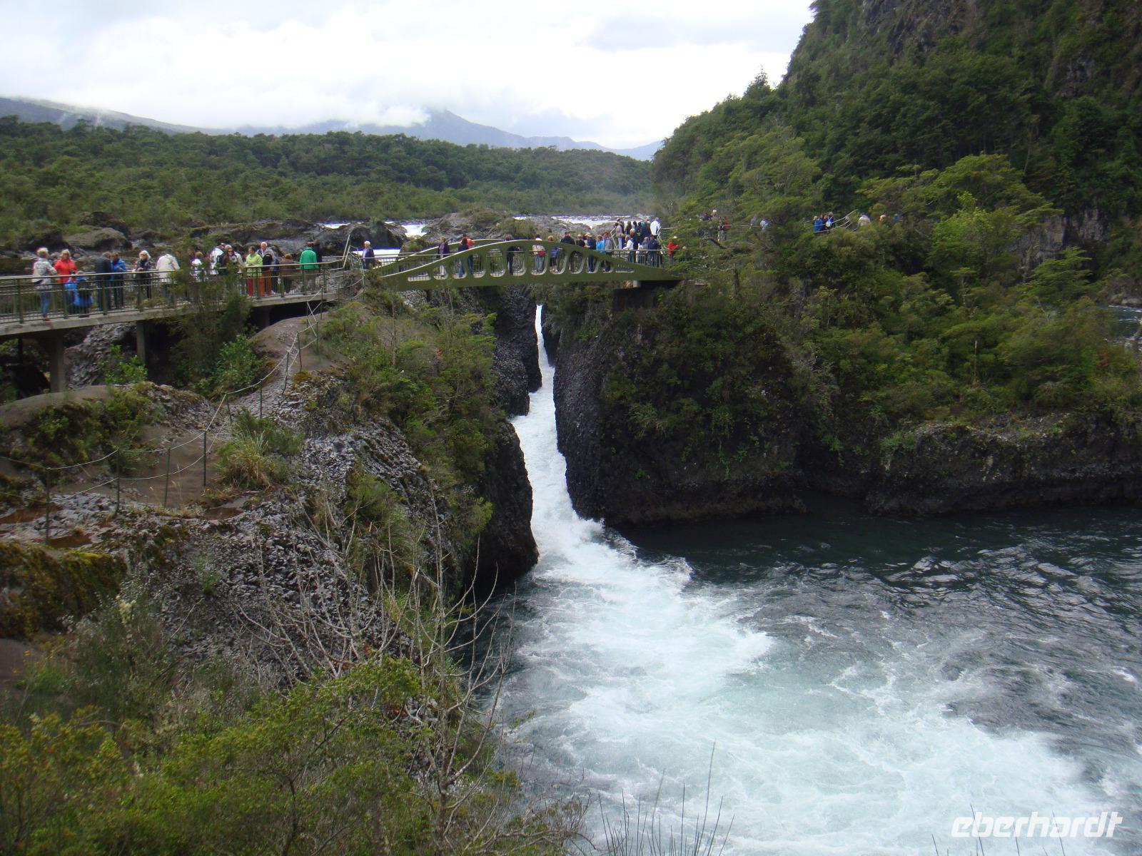 Auch heute heißt es wieder per Tender zum Ufer. Roberto wartete schon auf uns, da wir später als geplant geankert haben. Zunächst fahren wir zu den Stromschnellen „Petrohue" und schauen ob sich der Vulkan Osorno komplett zeigen wird. Roberto erzählte uns, wie viele hier von der Lachsindustrie leben, denn Chile ist nach Norwegen das zweitgrößte Land in Sachen Lachszucht. Wir fahren durch die Fachwerkhäuser und die schmalen Straßen von Puerto Montt raus und nahmen die Panamericana Strasse, die, wie wir schon wissen, von Alaska kommt. Im schönen Städtchen Puerto Varas, gelegen am Ufer des Llanquihue Sees, erleben wir das Flair des fast schwarzwaldähnlichen Ortes. In der Mittagspause werden wir natürlich mit einem Lachs gestärkt. Anschließen fahren wir nach Frutillar, ein weiteres kleines Dorf, das seine deutsche Geschichte nicht verheimlichen kann. Das Deutsche Kolonial Museum gibt uns einen Einblick in das Leben der ersten Siedler. Wir nutzen die kurze Zeit, um in der Wunderschönen Gartenanlage etwas zu spazieren. Wir müssen zurück und nehmen in Puerto Montt am Pier einen der letzten Tender zurück an Bord. Nach dem Abendessen geht es in das Theater. Die Show bildet einen schönen Tagesabschluss.