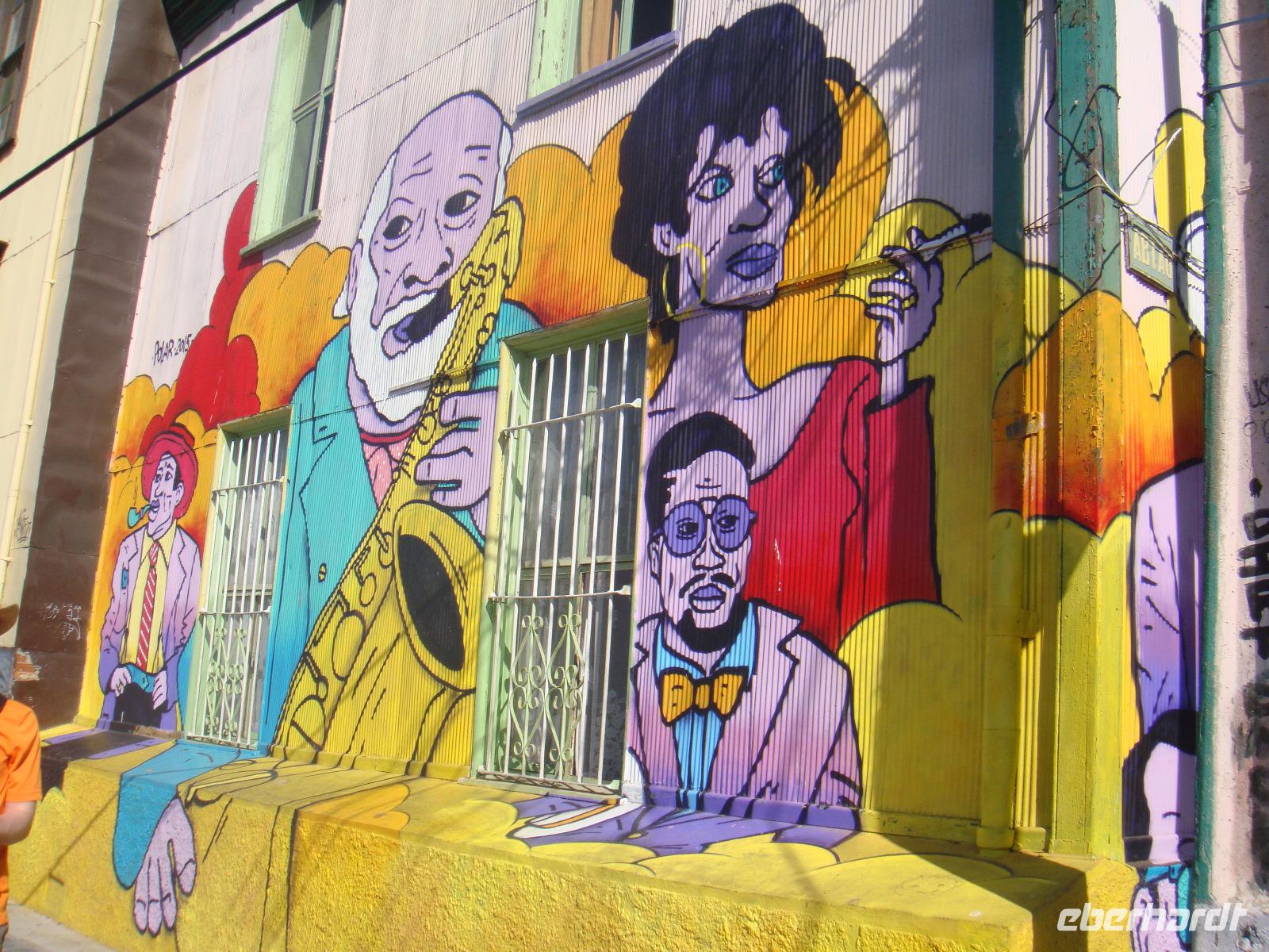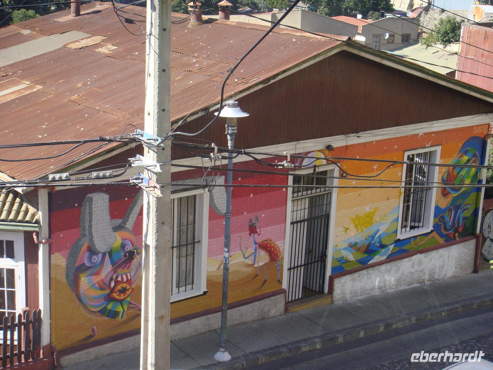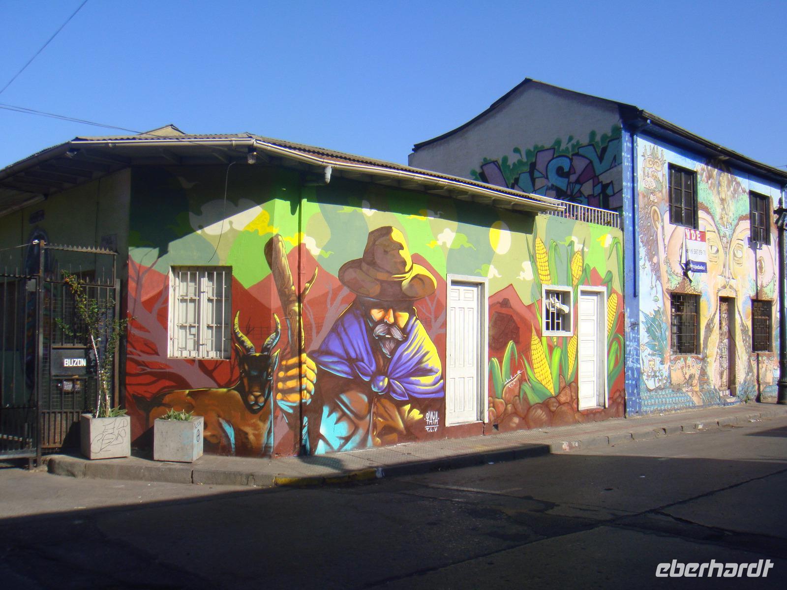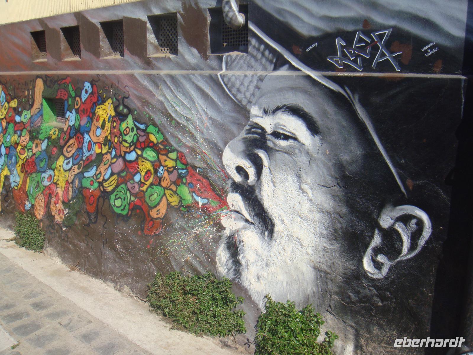Wir fahren zum San Cristóbal. Bevor wir diesen mit der Standseilbahn erklimmen können, unternehmen wir noch einen Spaziergang durch das Künstlerviertel Bellavista en Santiago.
