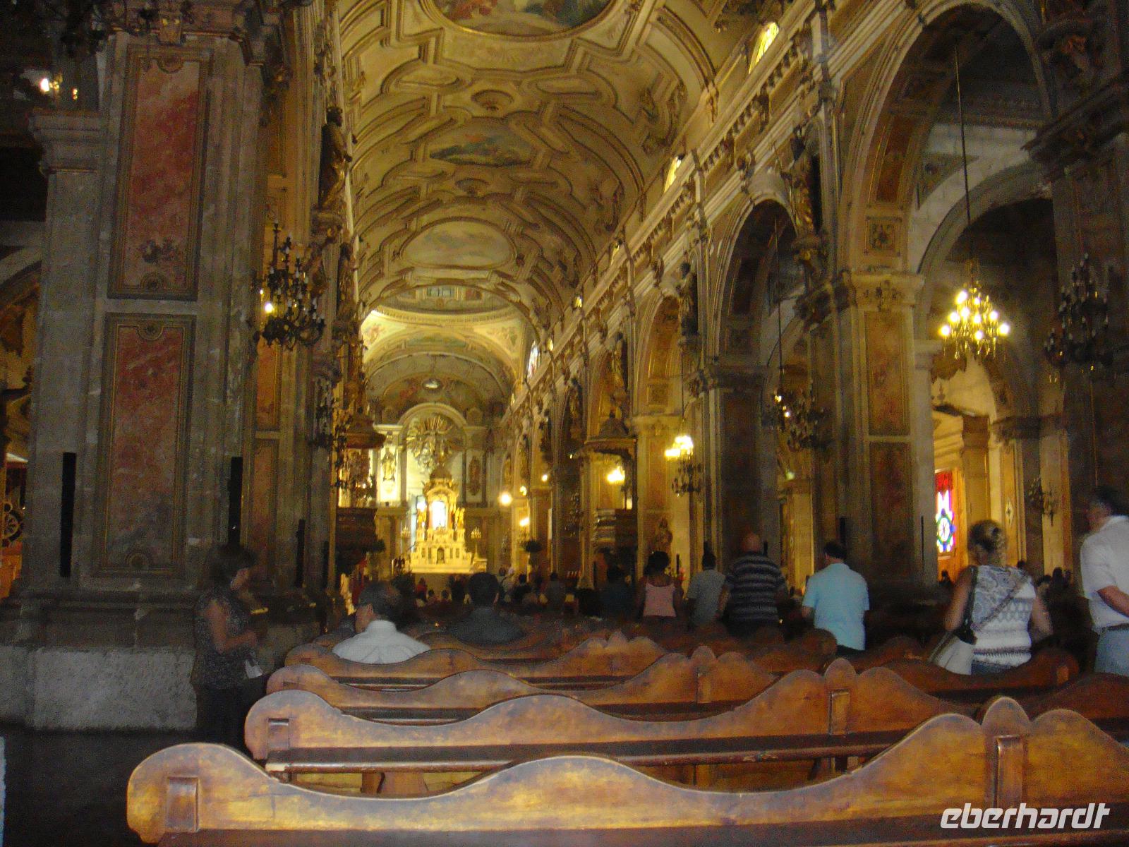 Am Morgen landen wir in Rio de Janeiro. Die Stadt empfängt uns mit sehr schwül-warmen, Temperaturen von ca. 30 Grad. Auch Carlos unser Reiseleiter empfängt uns sehr herzlich. Nach dem Check In im Hotel „Merlin Copacabana" begeben wir uns auch schon auf Erkundungstour. Während des Spaziergangs durch die Altstadt sehen wir einzigartige Häuserfassaden aus der Konolialzeit, wunderbare Kirchen. So erhalten wir erste Eindrücke über das lebhafte Treiben der Bewohner von Rio de Janeiros. Unsere Mittagspause verbringen wir im Jugendstil-Café, der „Confeitaria Colombo". Eine besondere Adresse in Rio de Janeiro. Bei landestypischen Speisen genießen wir die Atmosphäre und stärken uns für den Nachmittag.