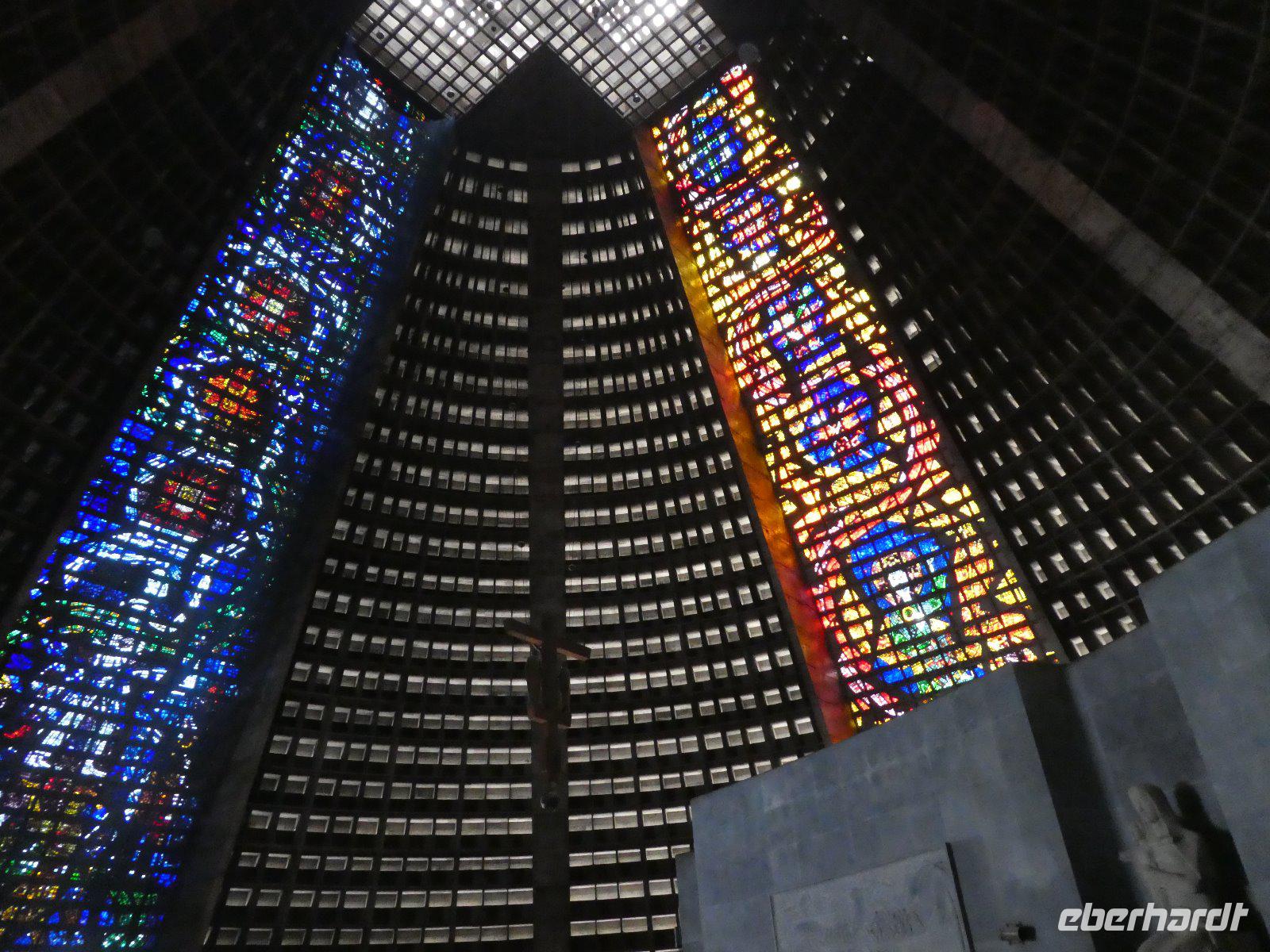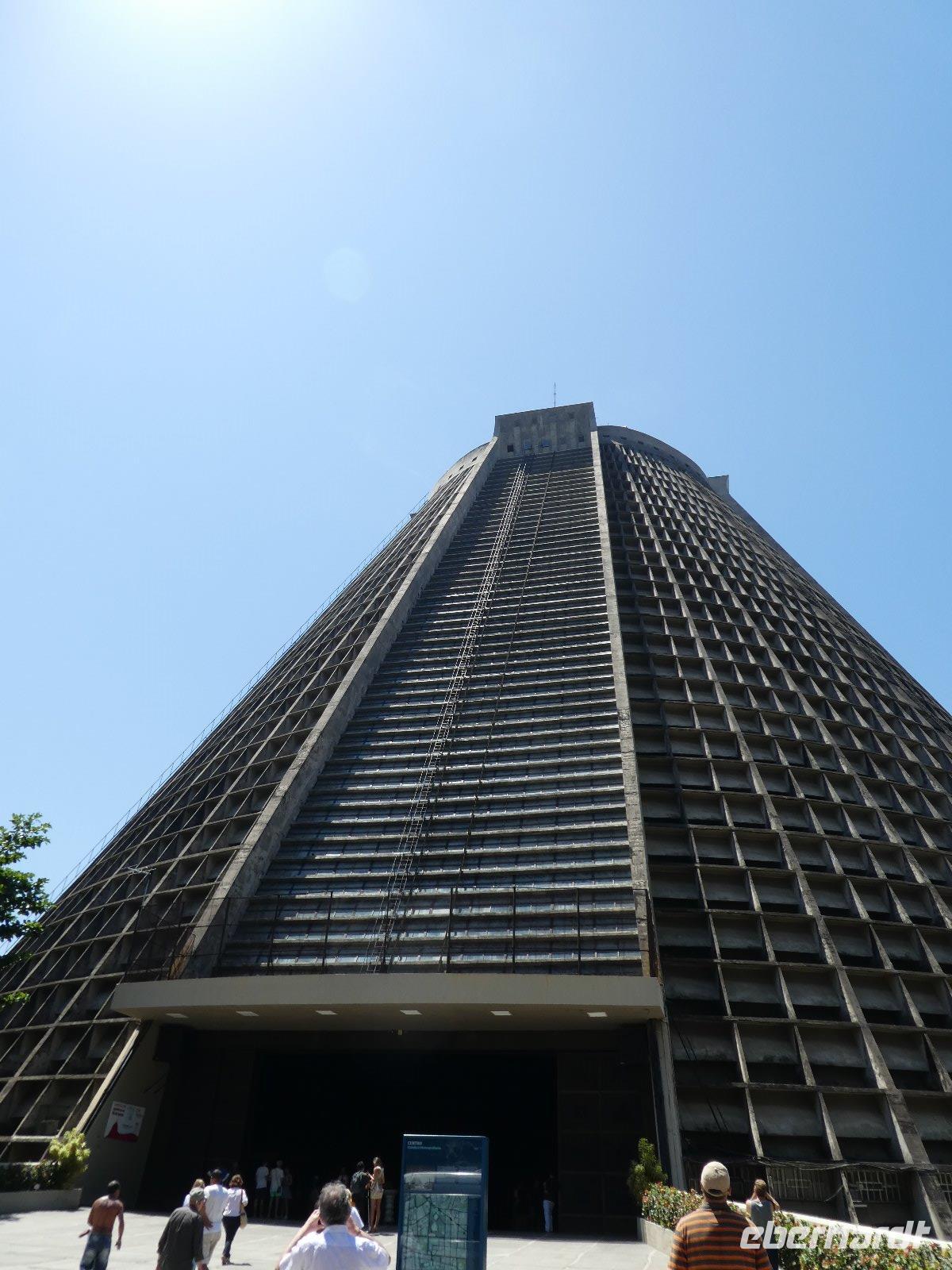Nun schnell an der Rezeption noch etwas Geld getauscht und die Erkundung der Stadt kann beginnen. Unsere Stadtrundfahrt führt uns zunächst zur Kathedrale Sao Sebastian. Wir lassen es uns nicht nehmen, den modernen Kirchenbau auch von innen zu besichtigen. Anschließend passieren wir das Maracana-Stadion (Estadio Mario Filho), fahren vorbei am nicht weniger berühmten Sambodrome, entlang der Av. Presidente Vargas, der Kirche Igreja Candelaria und natürlich dem Hafenviertel Praca Maua welches anlässlich der letzten Olympischen Spiele komplett umgestaltet wurde. So sehen wir auch den Platz der olympischen Flamme bevor wir im Zentrum der Altstadt aussteigen.