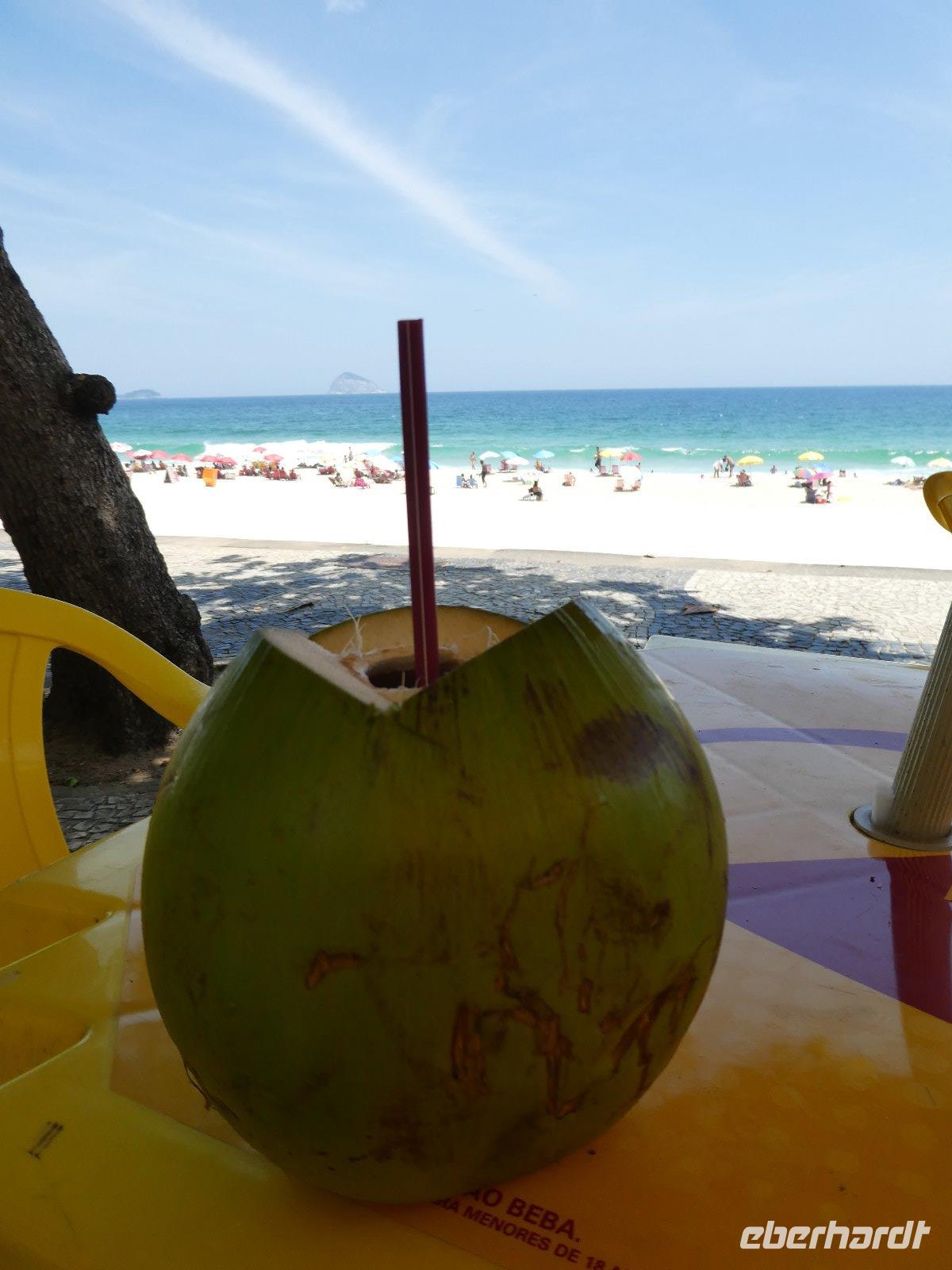 Begeistert vom gerade Erlebten setzen wir unsere Fahrt fort; entlang des Strandboulevard von Leblon und Ipanema sehen wir so weitere berühmte Strände Rios. Auch hier steigen wir aus, genießen den Blick und das herrliche Wetter, erfrischen uns mit dem Wasser frisch geschlagener Kokosnüsse.