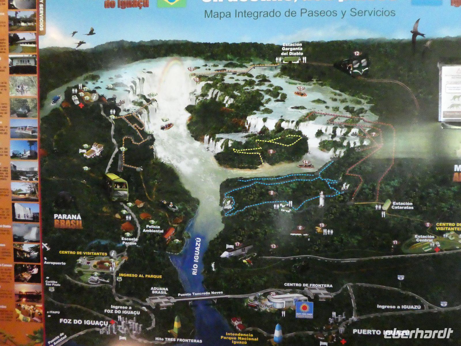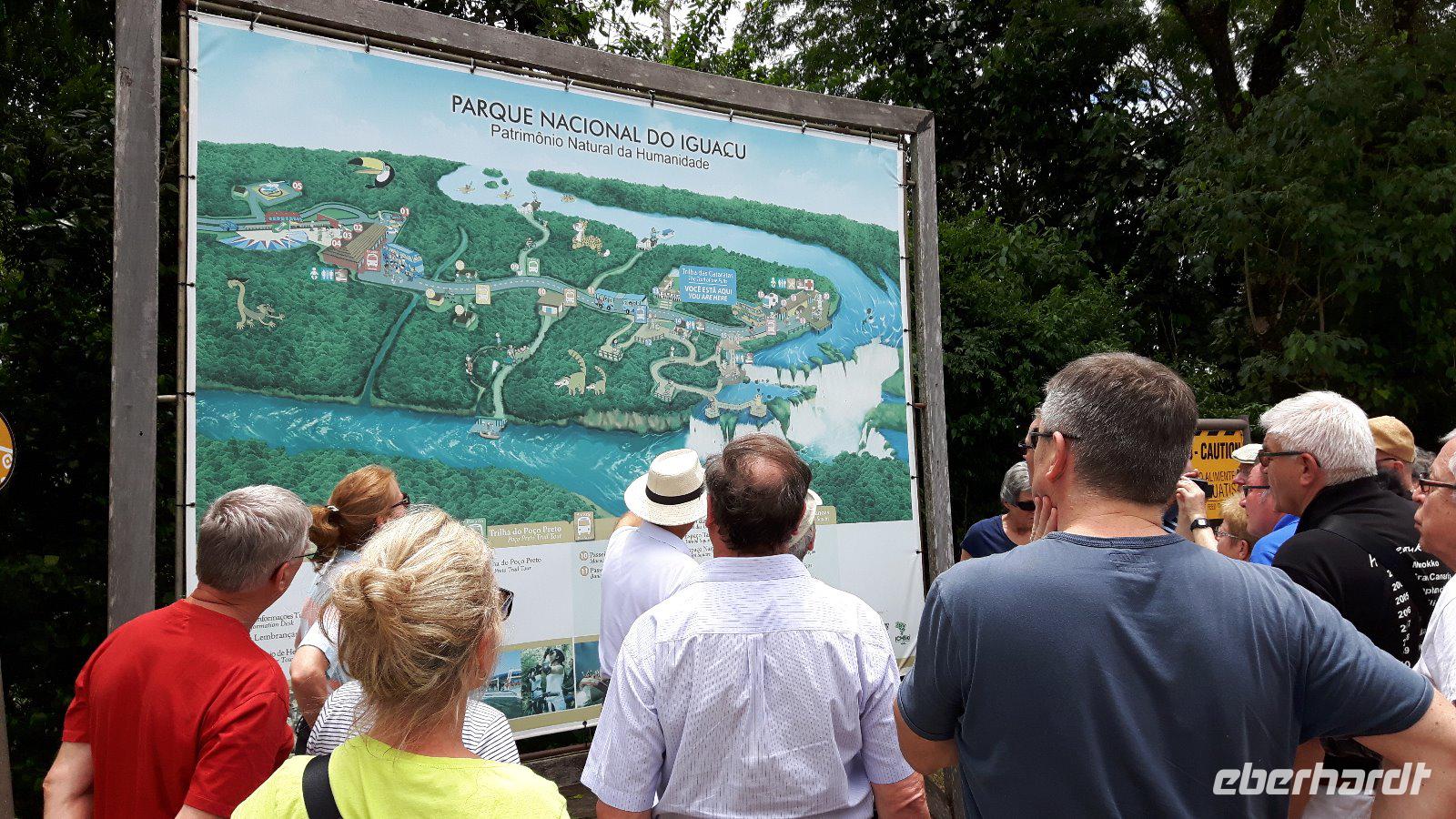 Am Eingang klären große Tafeln am Visitors Center über die angelegten Zugänge zu den Wasserfällen auf.