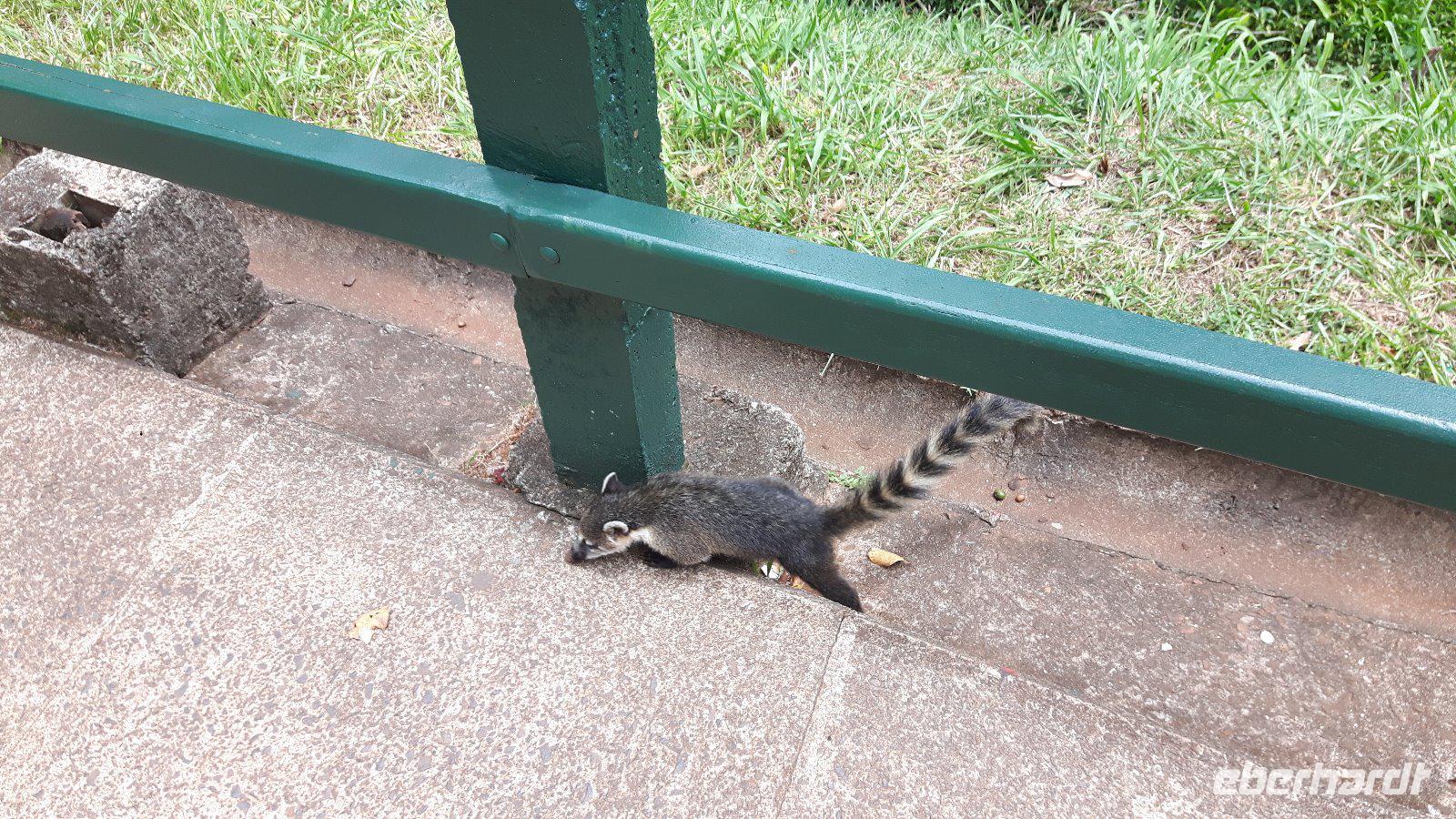 Bei der anschließenden Mittagspause in einem der Parkgaststätten sind als wir unsere Empanadas verspeisen natürlich auch die vorwitzigen Nasenbären wieder zur Stelle.