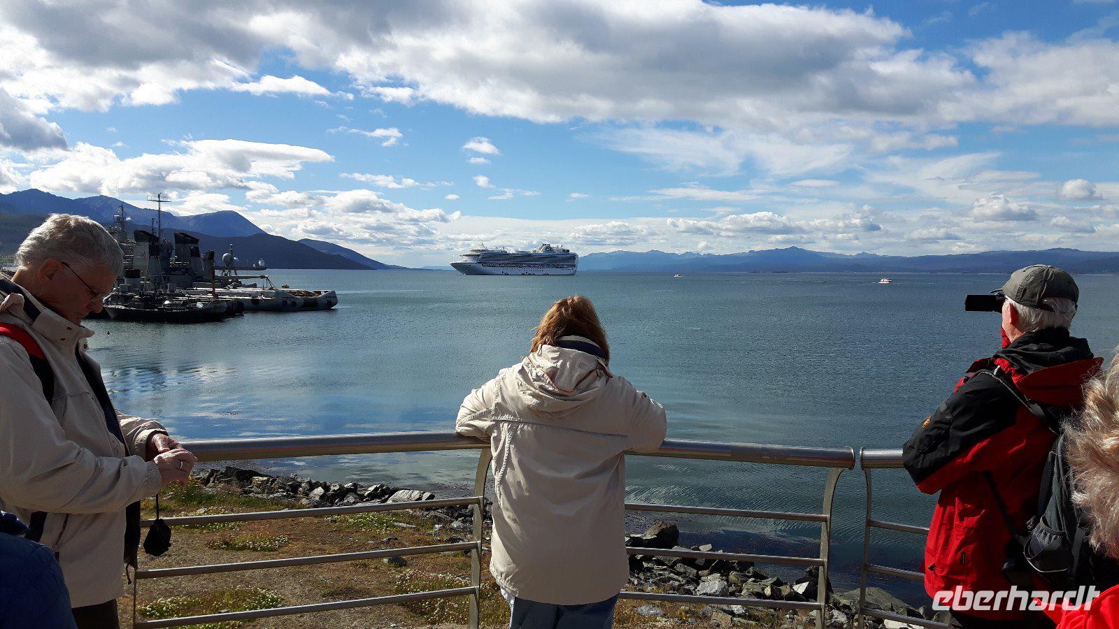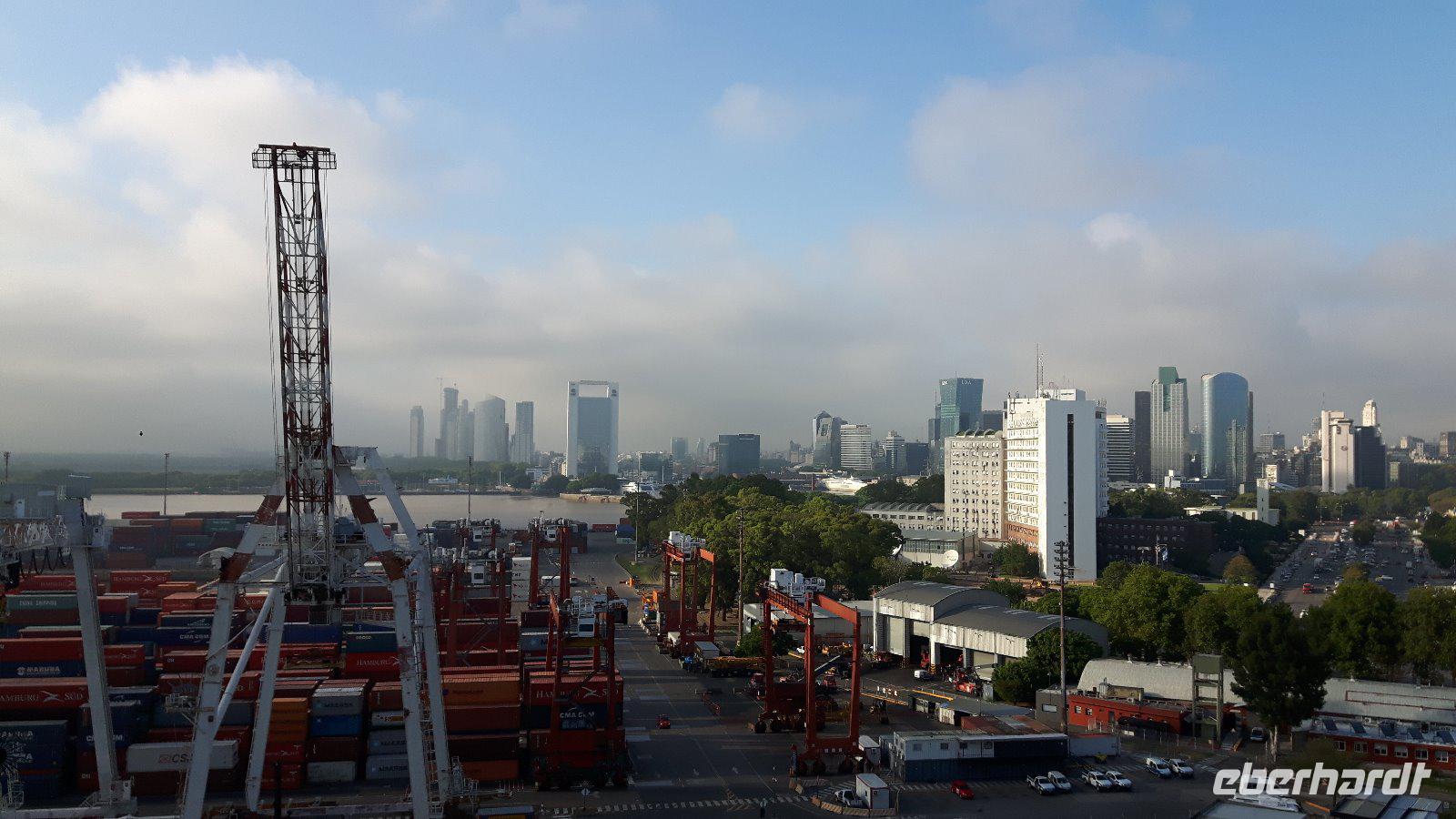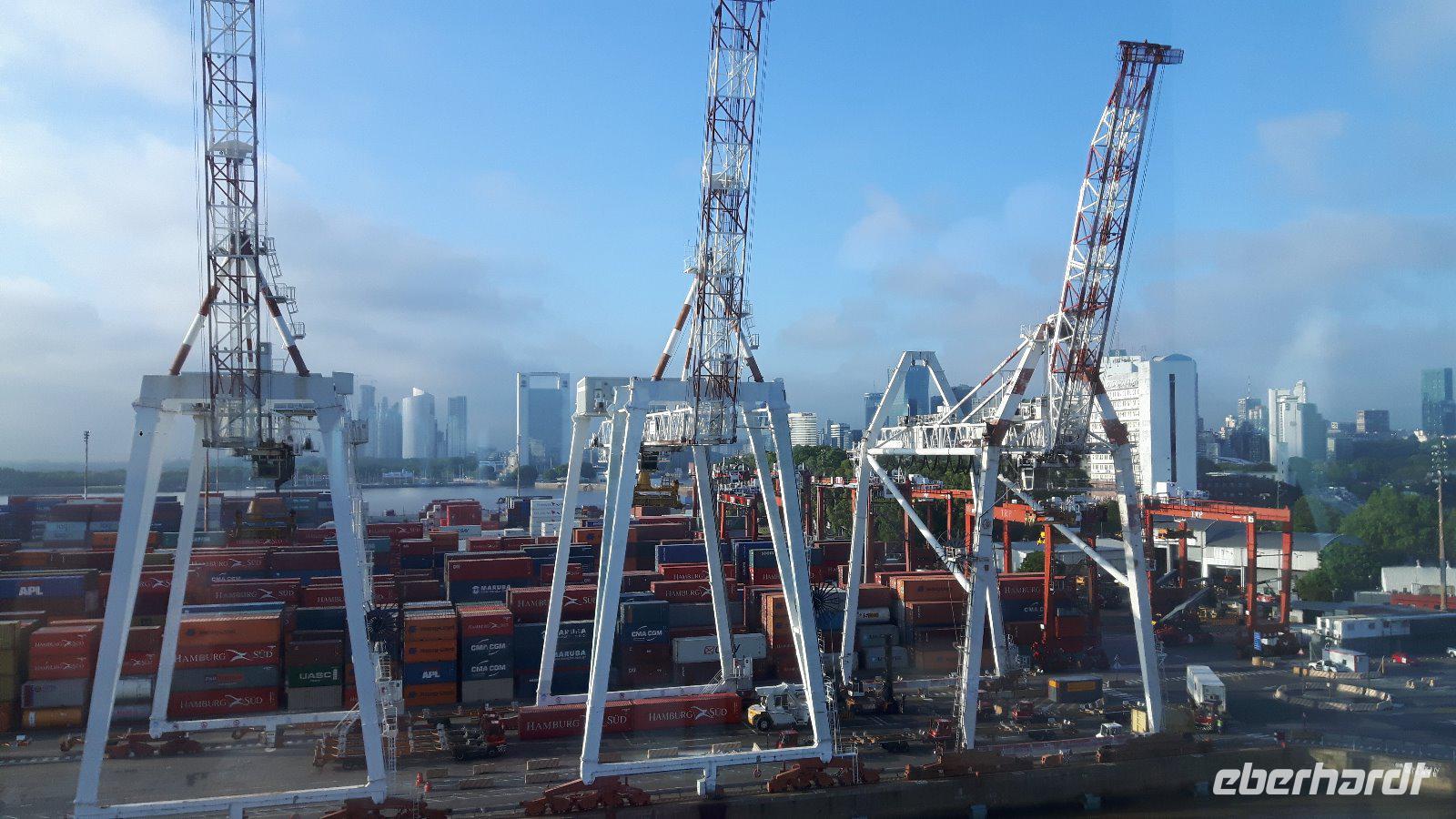 Morgen werden wir mit ihr die argentinische Hauptstadt erleben; für heute begleitet sie uns zum Hafen, wo wir das Kreuzfahrtschiff schon von weitem liegen sehen.
