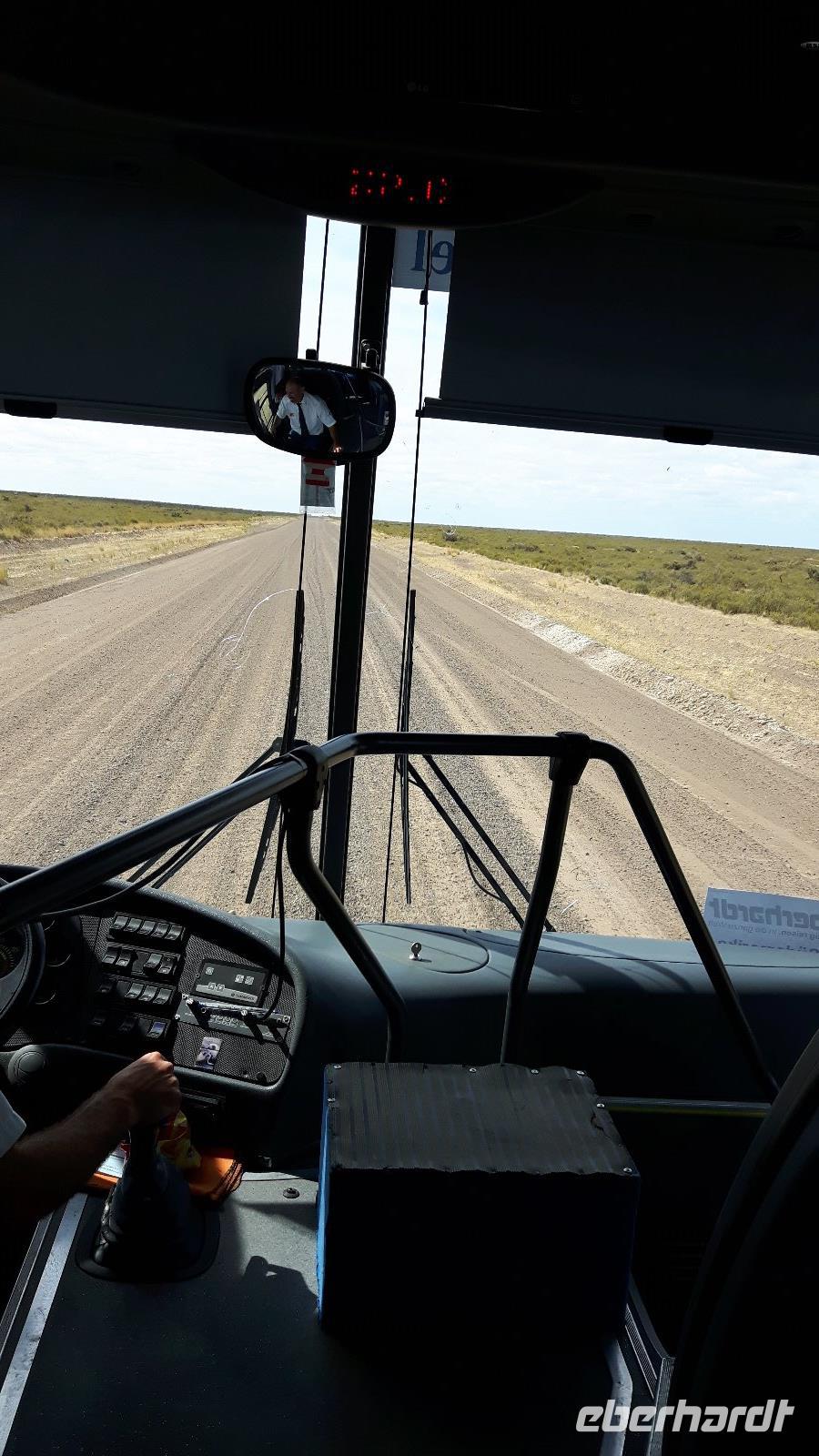 In Punta Arenas funktioniert das Tendern reibungslos. An Land gehen wir an Bord eines Reisebusses.