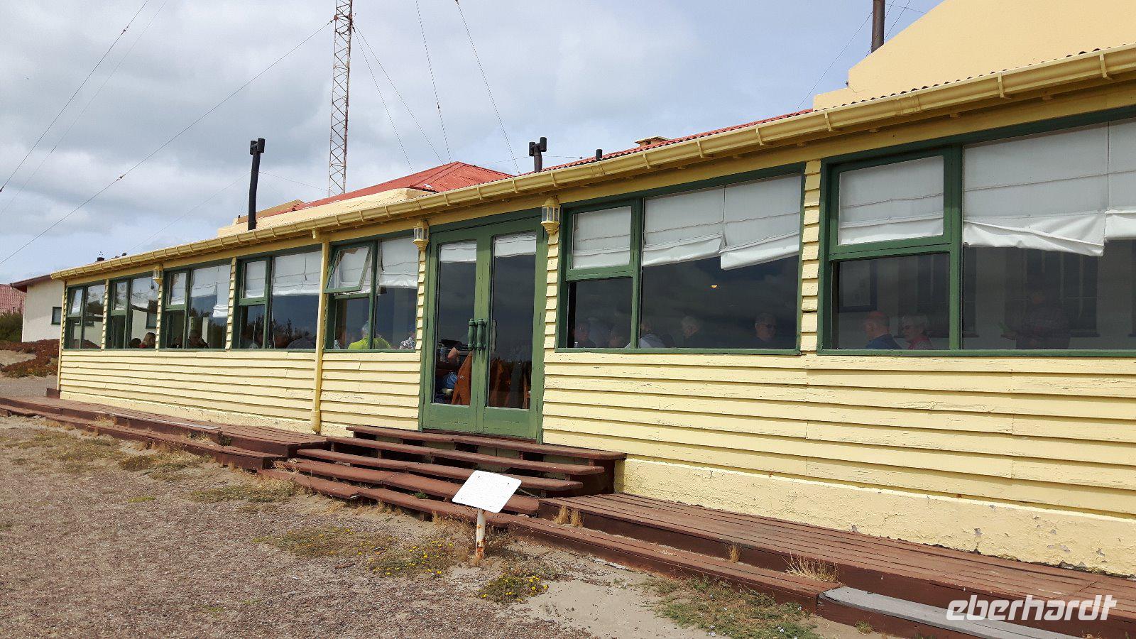 Punta Delgado ist kein Ort sondern ein einsamer Leuchtturm an dessen Fuße sich ein Restaurant befindet. Hier nehmen wir unser Mittag ein; dass das versprochene Lamm zu einem Huhn mutiert ist nehmen wir gelassen. Der Wirt muss jedoch einige Spitzen zu seiner „authentischen" Küche ertragen; haben wir unterwegs auch zahlreiche Schafe gesehen, so keinen Hühnerhof.