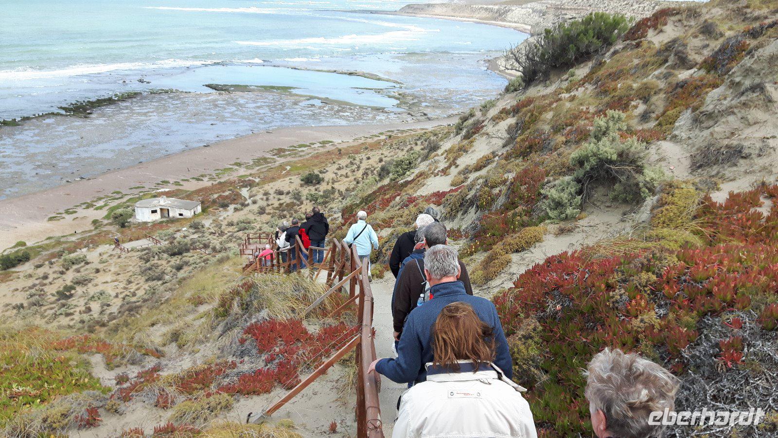 Vom Restaurant verläuft ein Wanderweg die Steilküste hinunter zu einer Seeelefantenkolonie. Marianne erklärt uns die Spezies ausführlich und wir haben ausreichend Muße die imposanten Tiere zu beobachten. Dann geht es über die Halbinsel zurück zum Hafen von Puerto Madryn, wo noch Zeit für einen Stadtbummel bleibt.